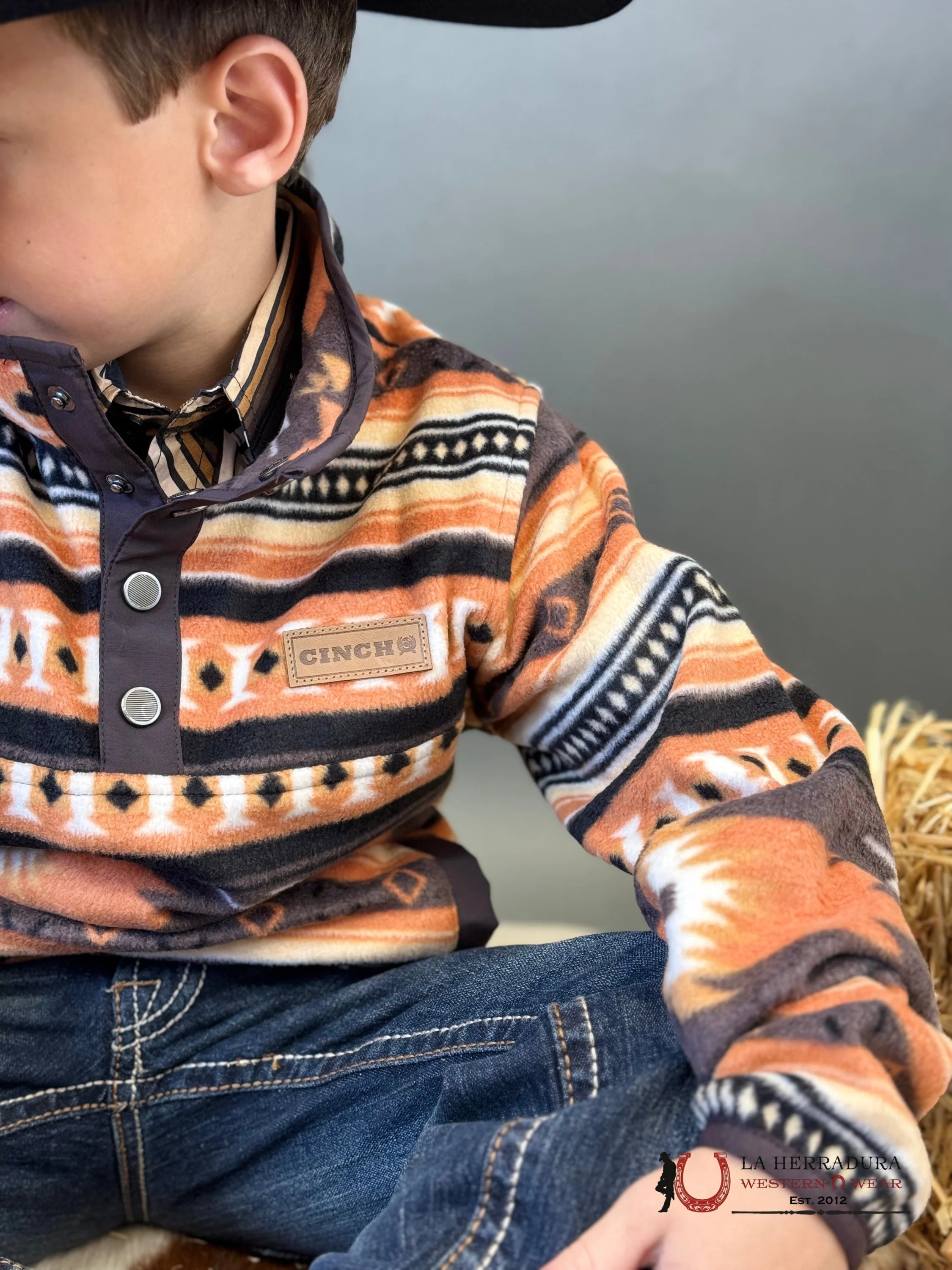 CINCH YOUTH FLEECE ORANGE AZTEC PULL OVER MWK7590015