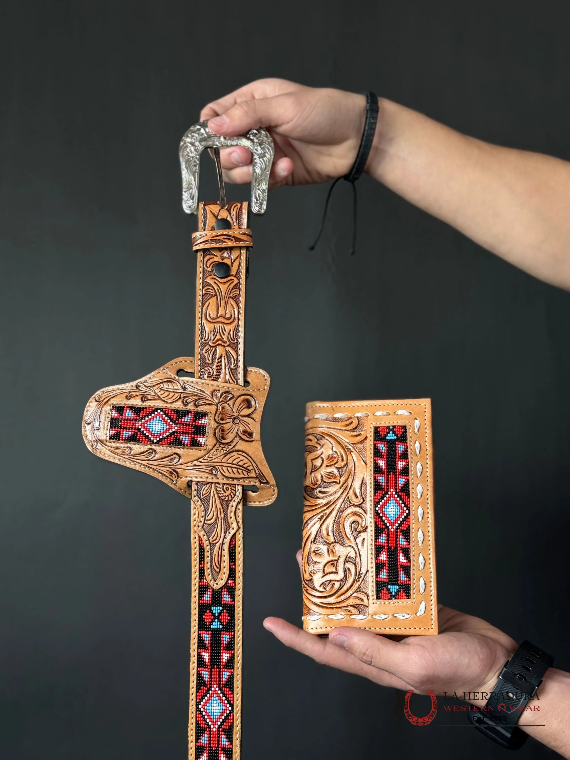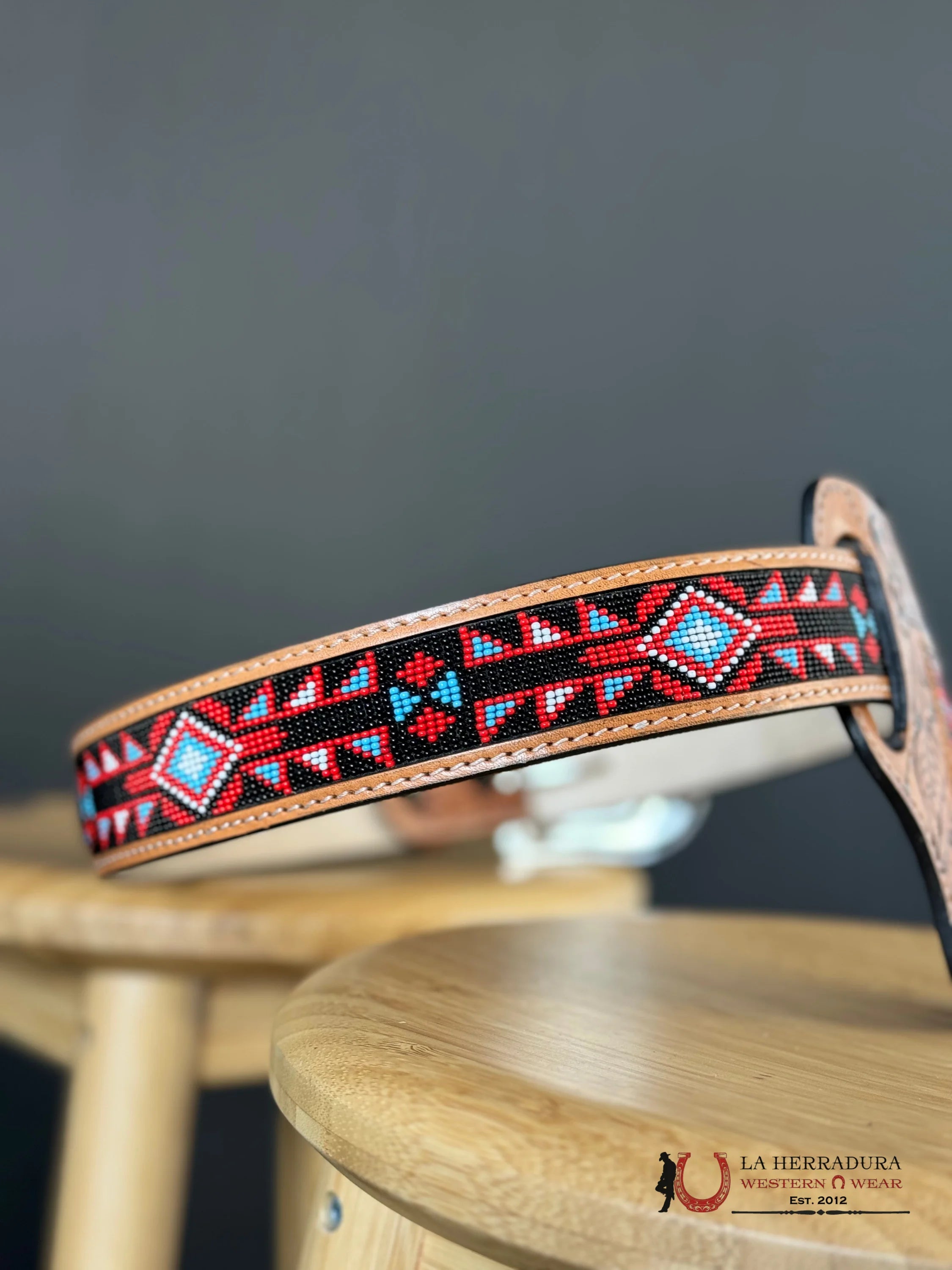 Cinto Azteca Cuero Cincelado Red/Black Blue Only Belt!