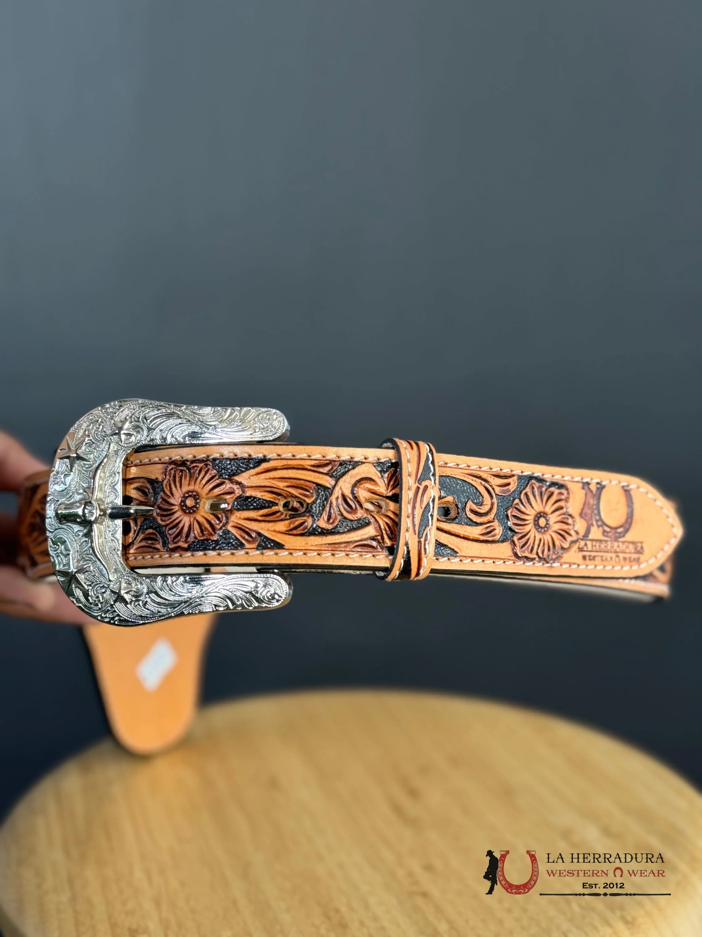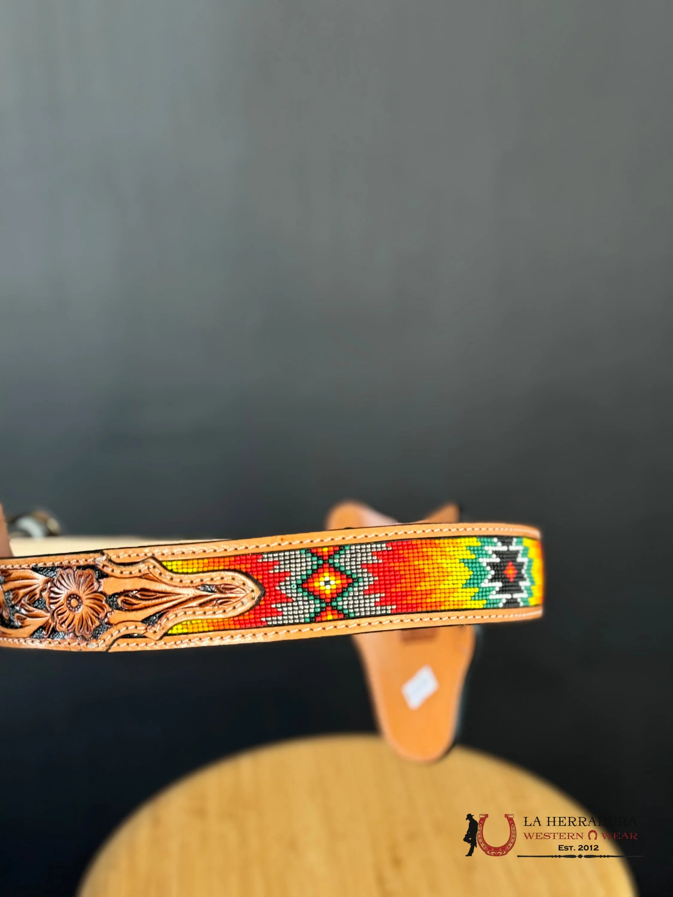 Cinto Azteca Cuero Cincelado Orange/Green Only Belt!