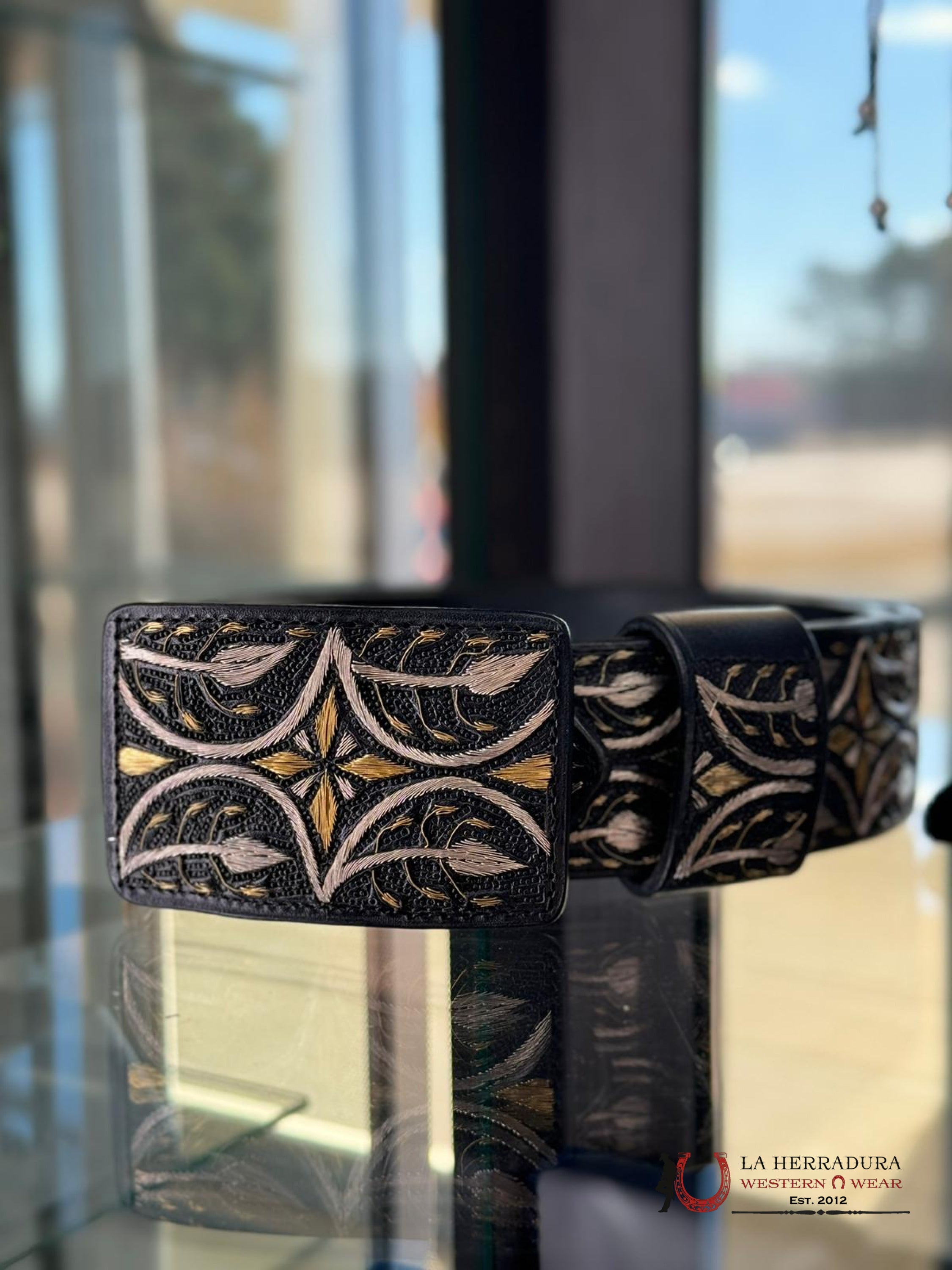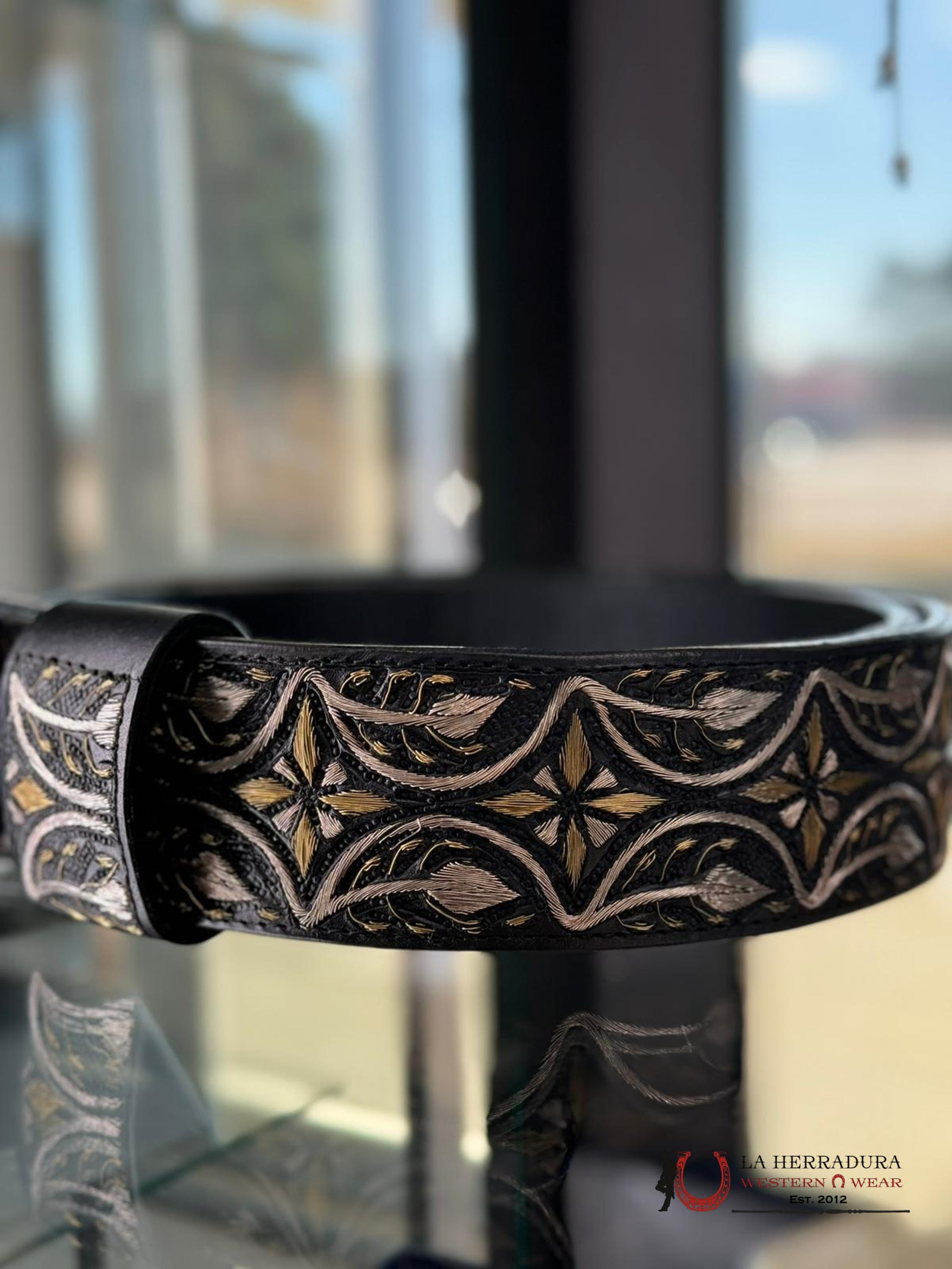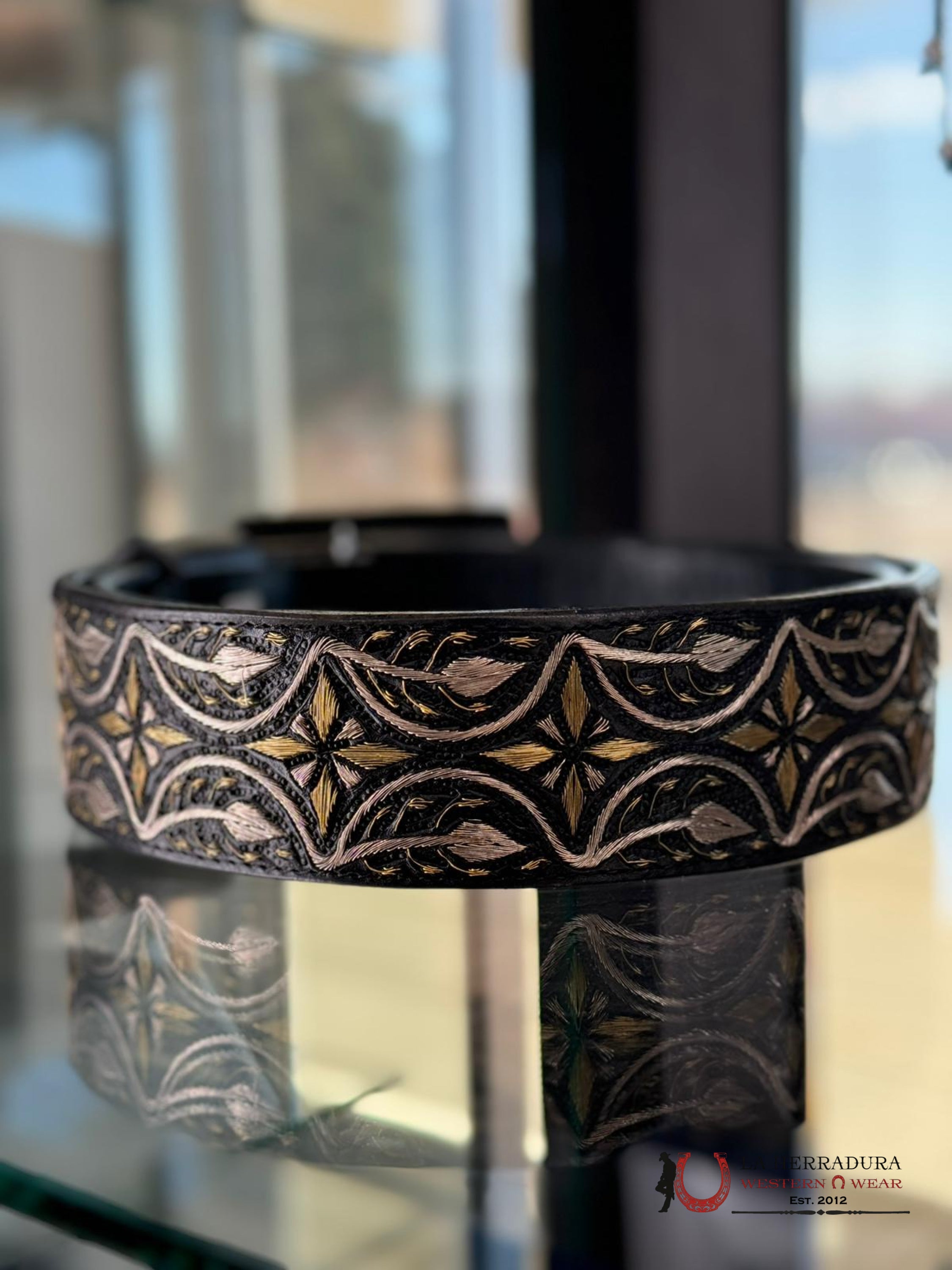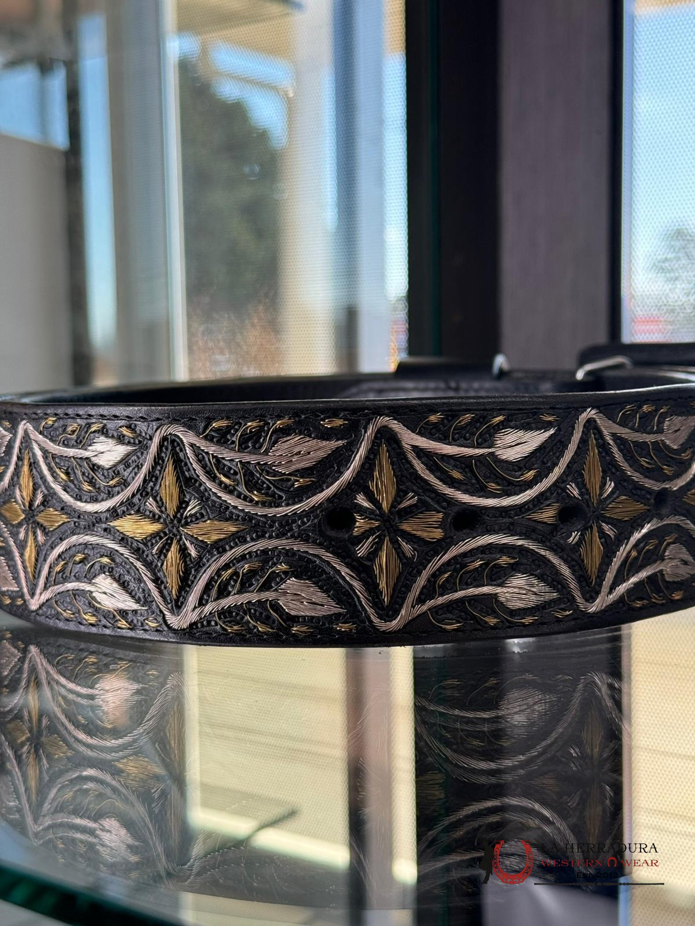 Presentamos nuestro impresionante CINTO DE PLATA RHOMBUS CRYSTAL FRONDOSO DORADO. Hecho a mano con un diseño único, este elegante cinturón es una verdadera importación mexicana y presenta detalles en plata bellamente cosidos.