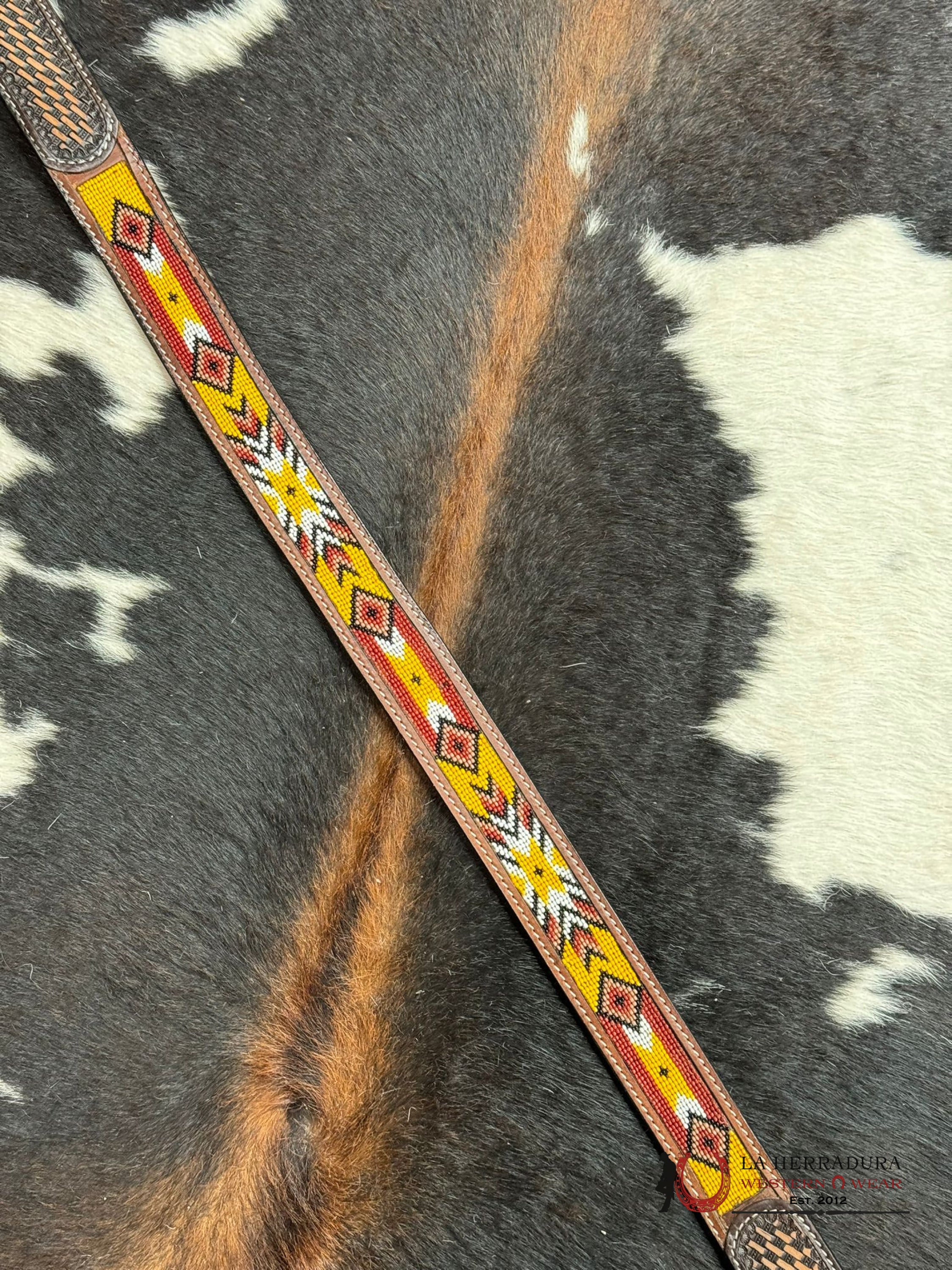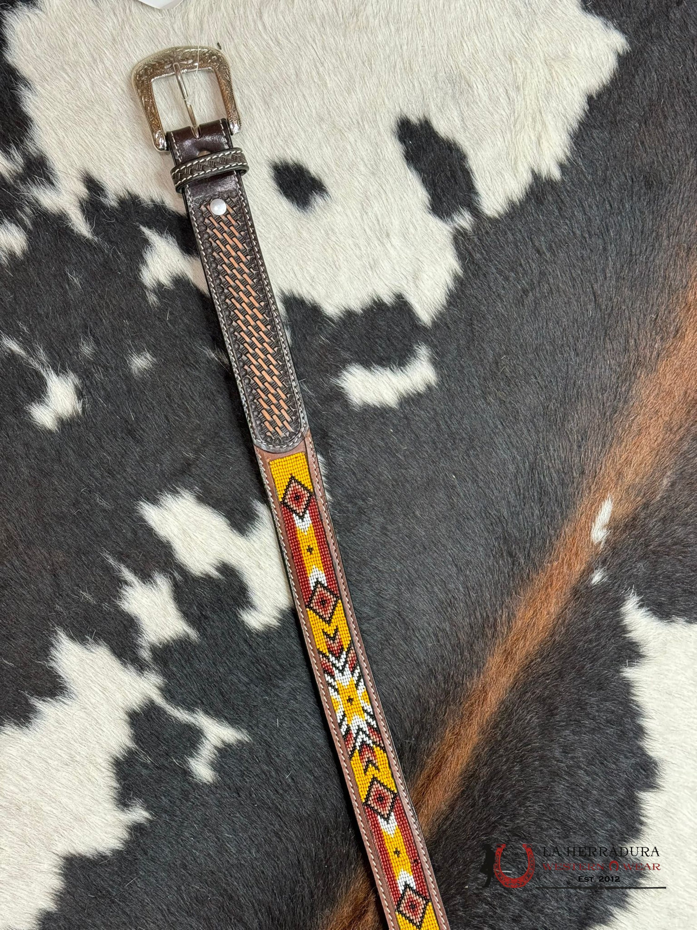 Experience the beauty and craftsmanship of our CINTURÓN BEADED ORANGE SOUTHWESTERN AZTEC, made from genuine leather and adorned with intricate beaded designs inspired by Aztec culture. This versatile accessory is perfect for adding a touch of Western style to any outfit, making it the perfect match for your unique personal aesthetic.