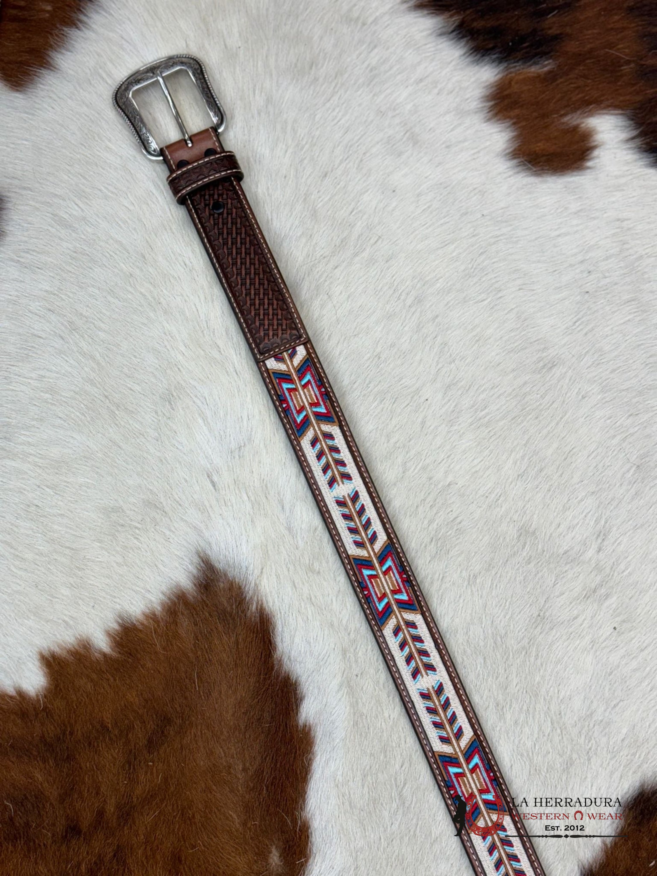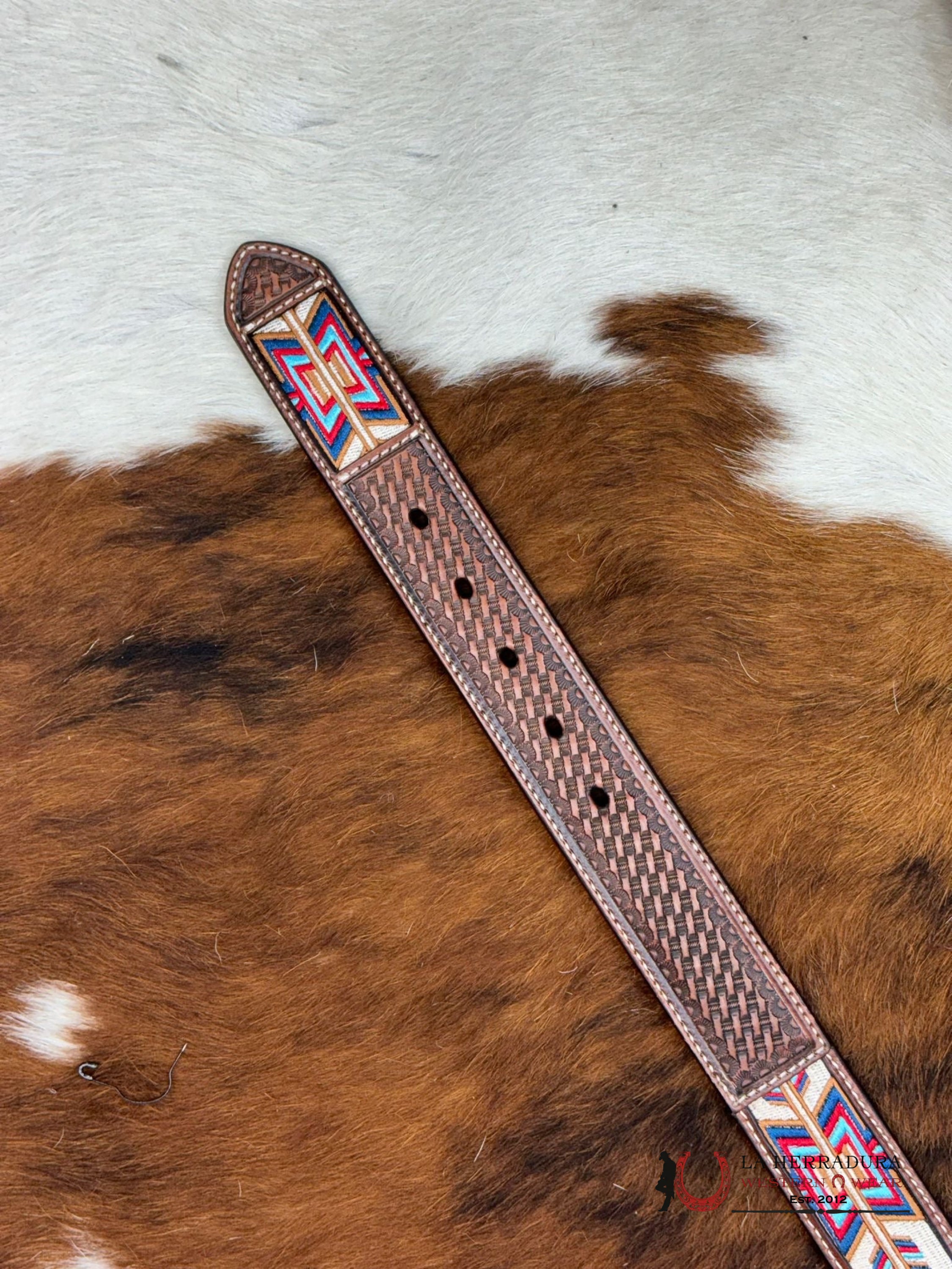 3D BELT COMPANY CINTURÓN BROWN TAN MULTI ARROW STITCH