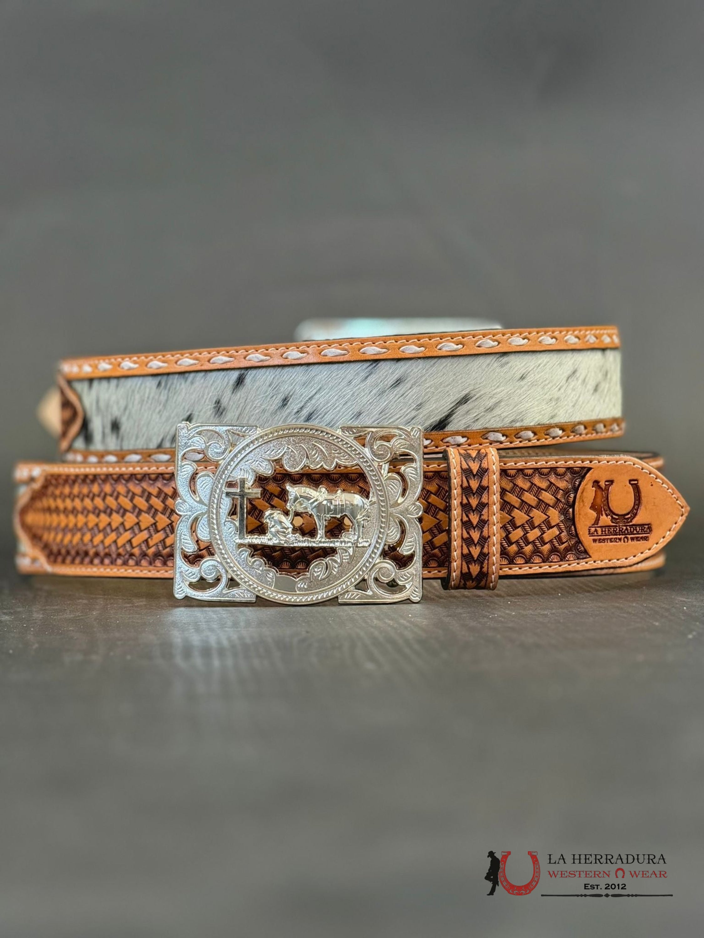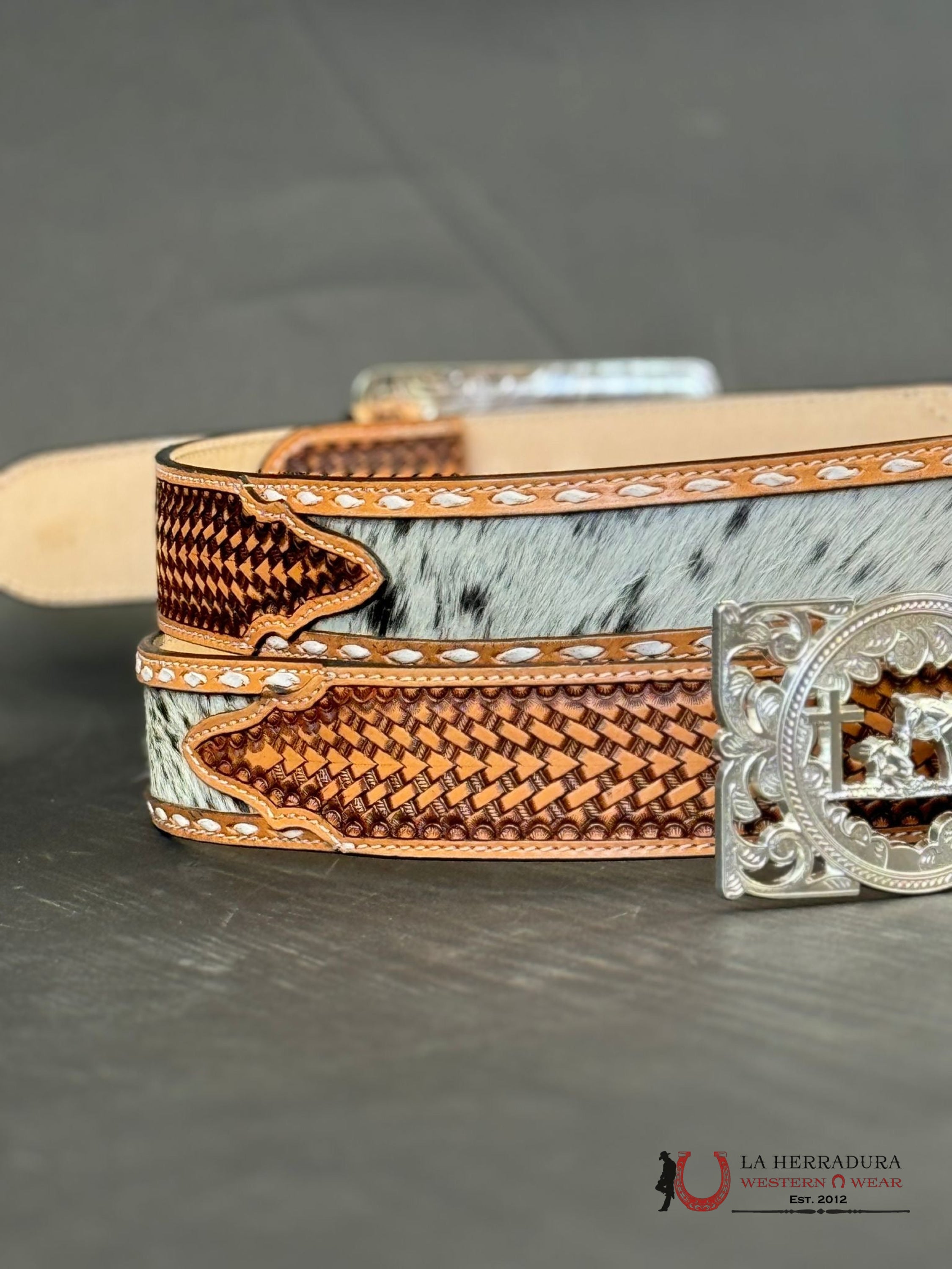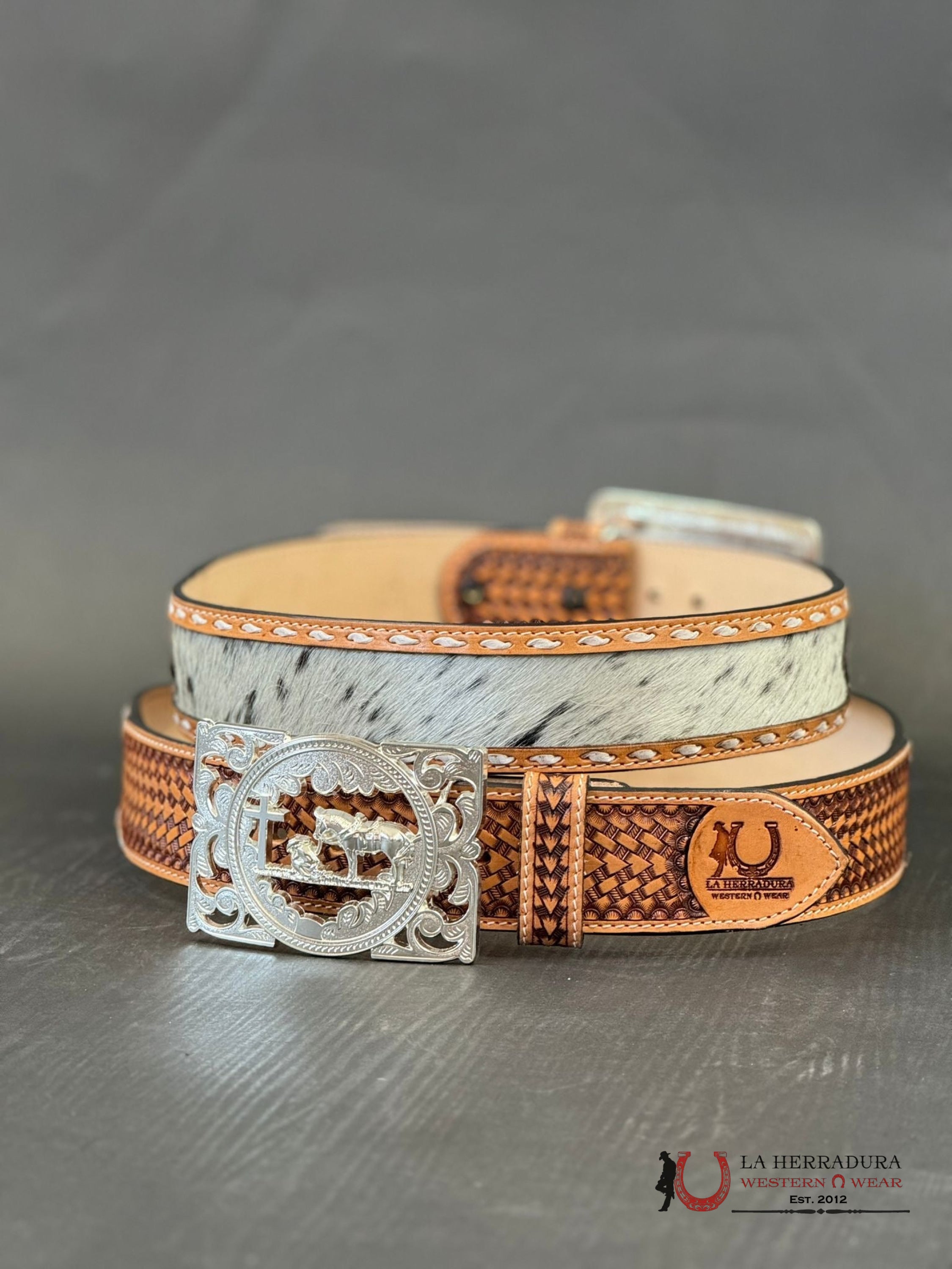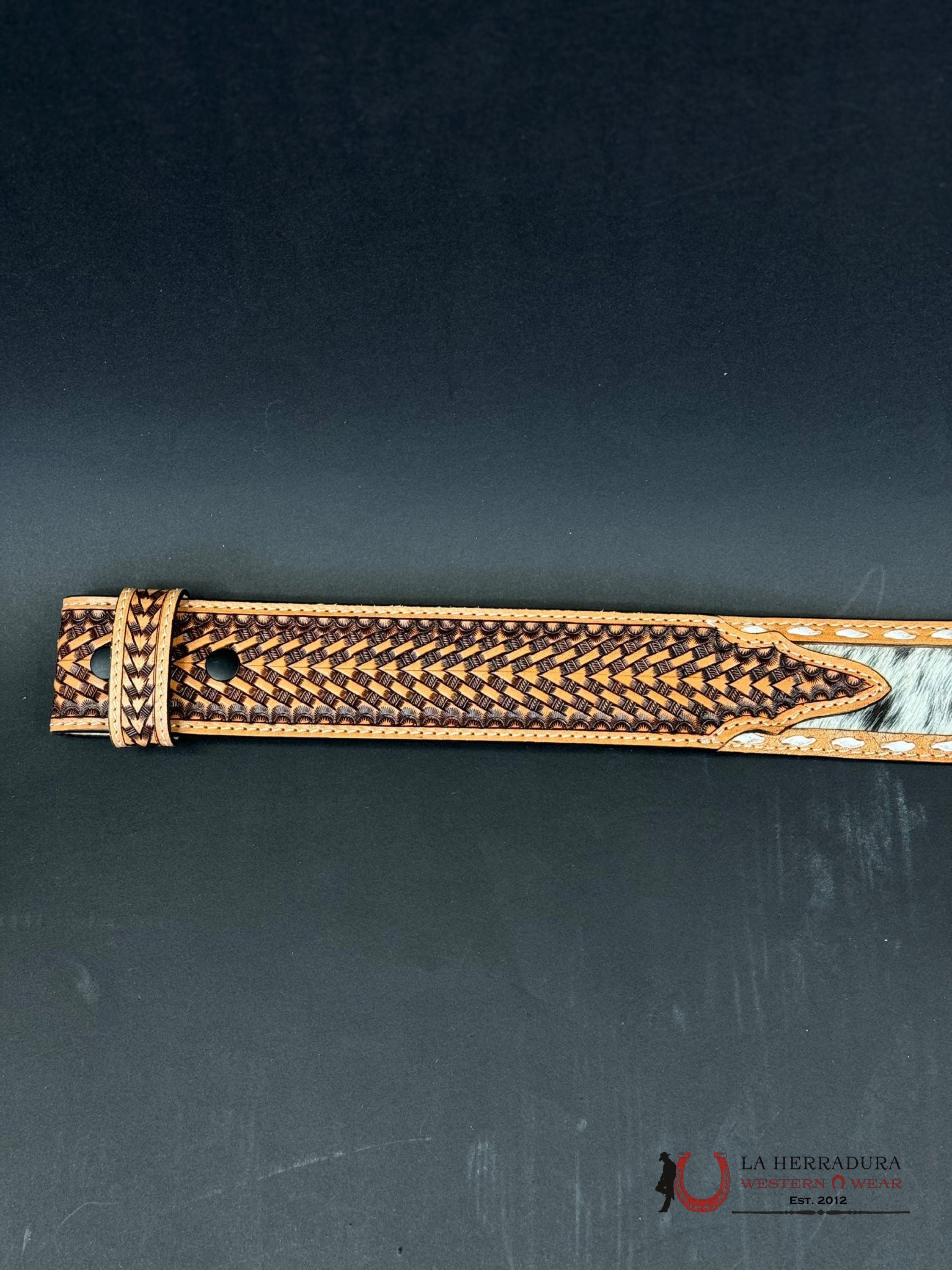 LA HERRADURA COWHIDE BLACK/WHITE 2 IN BELT ONLY