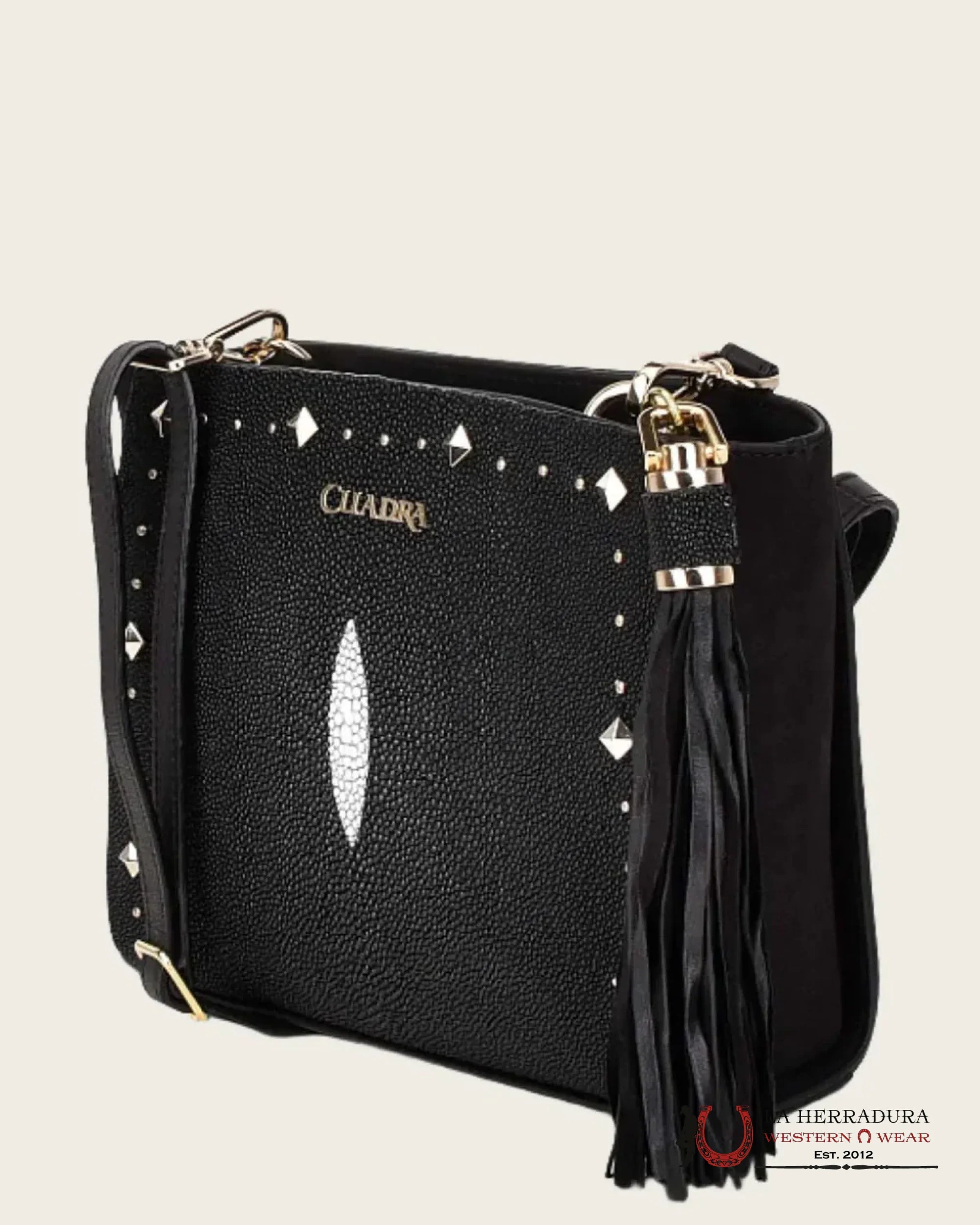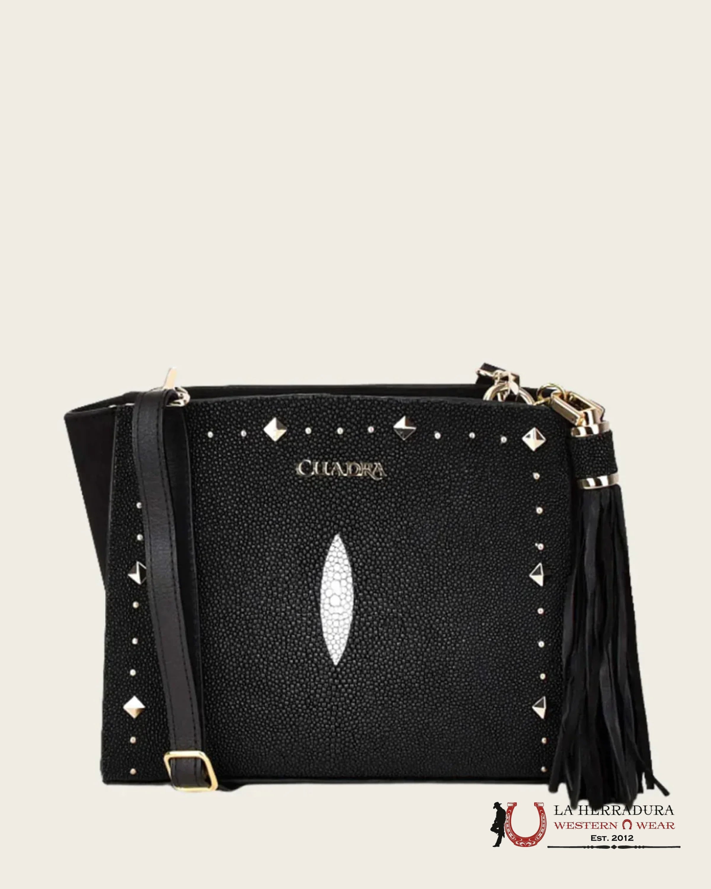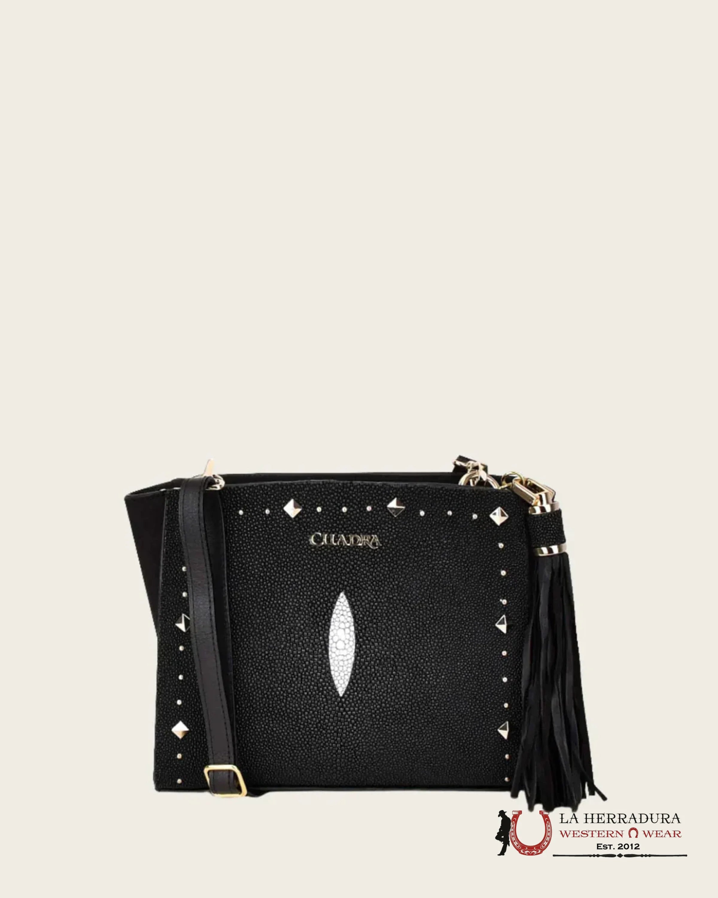 Indulge in luxury with the CUADRA Black Stingray Embroidery Handbag. Perfect for the elegant and fancy woman, this exotic handbag features exquisite stingray embroidery. With its unique design and versatile cross body style, it's the perfect accessory to elevate any outfit.