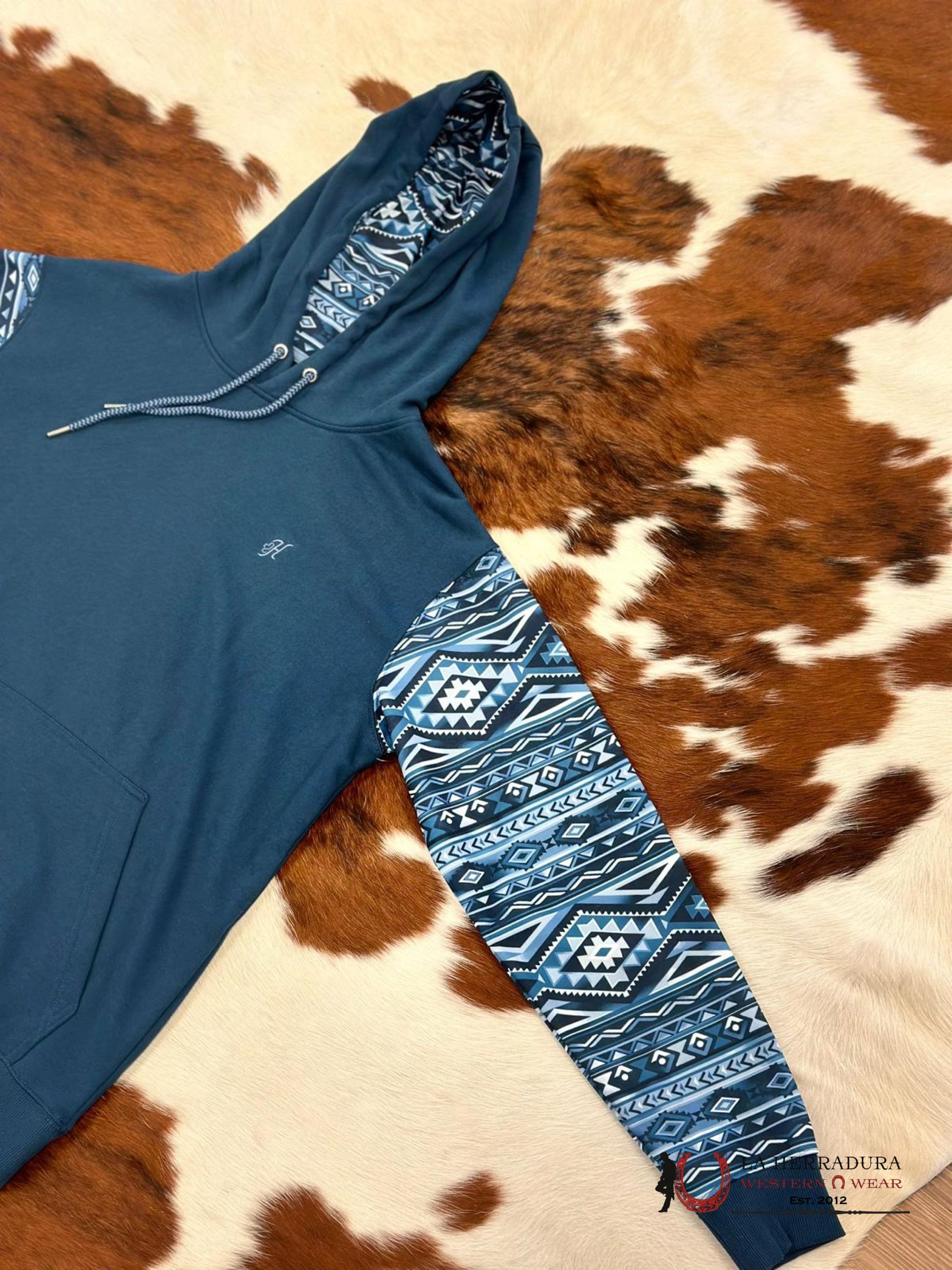 Hooey® Men's Hoodie Blue/w Blue Aztec Sleeve HH1191NVAZ