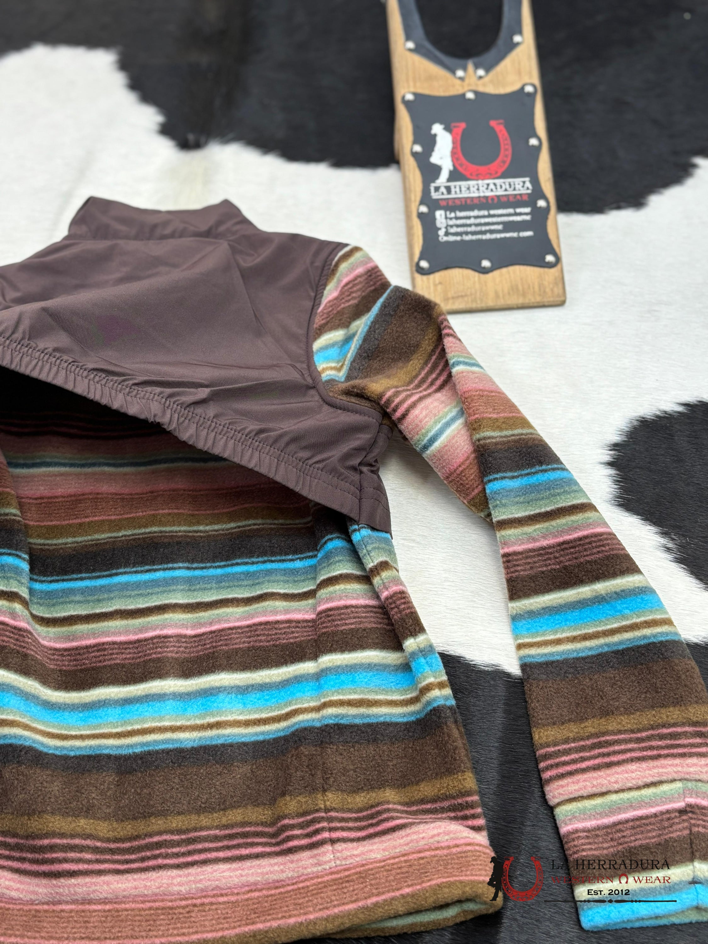Perfect blend of style and comfort! This jacket is crafted from soft, high-quality tech fleece, offering warmth without the bulk, making it ideal for active girls on the go. The vibrant Serape pattern adds a fun pop of color, while the rich brown accents provide a versatile touch that pairs well with any outfit. Featuring a full zip front and cozy pockets, it’s designed for easy layering and everyday wear. Whether she’s heading to school, hanging out with friends, or enjoying outdoor adventures, this jacket will keep her warm and stylish all day long!