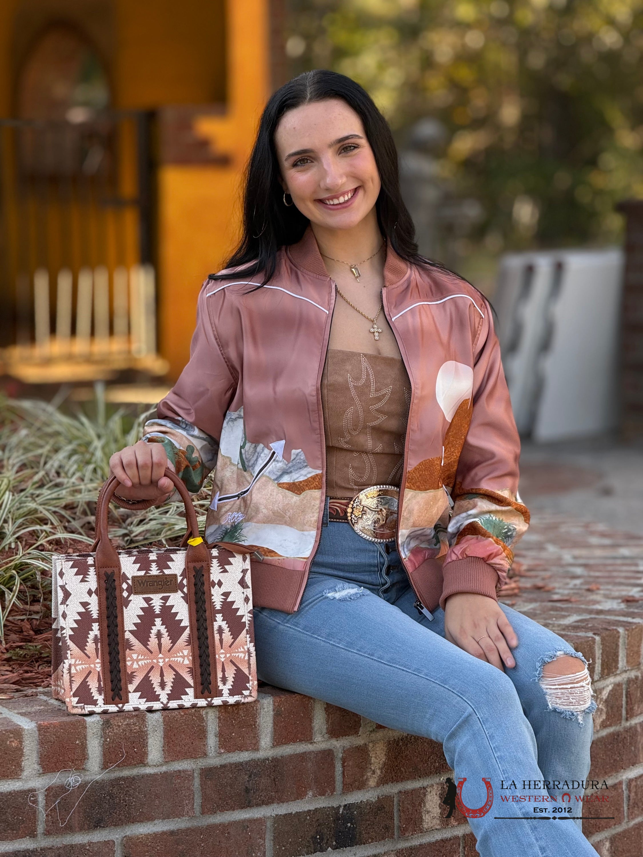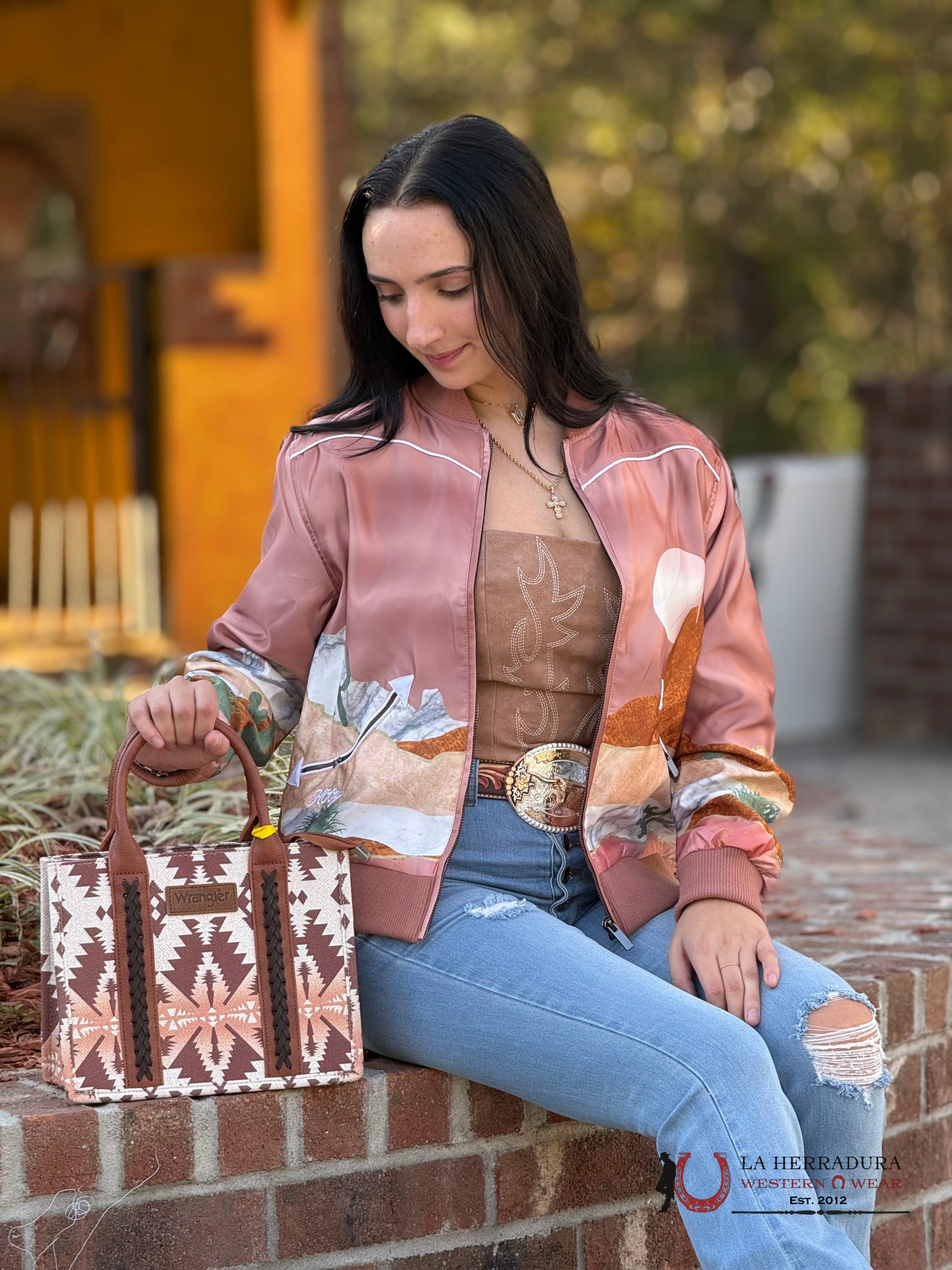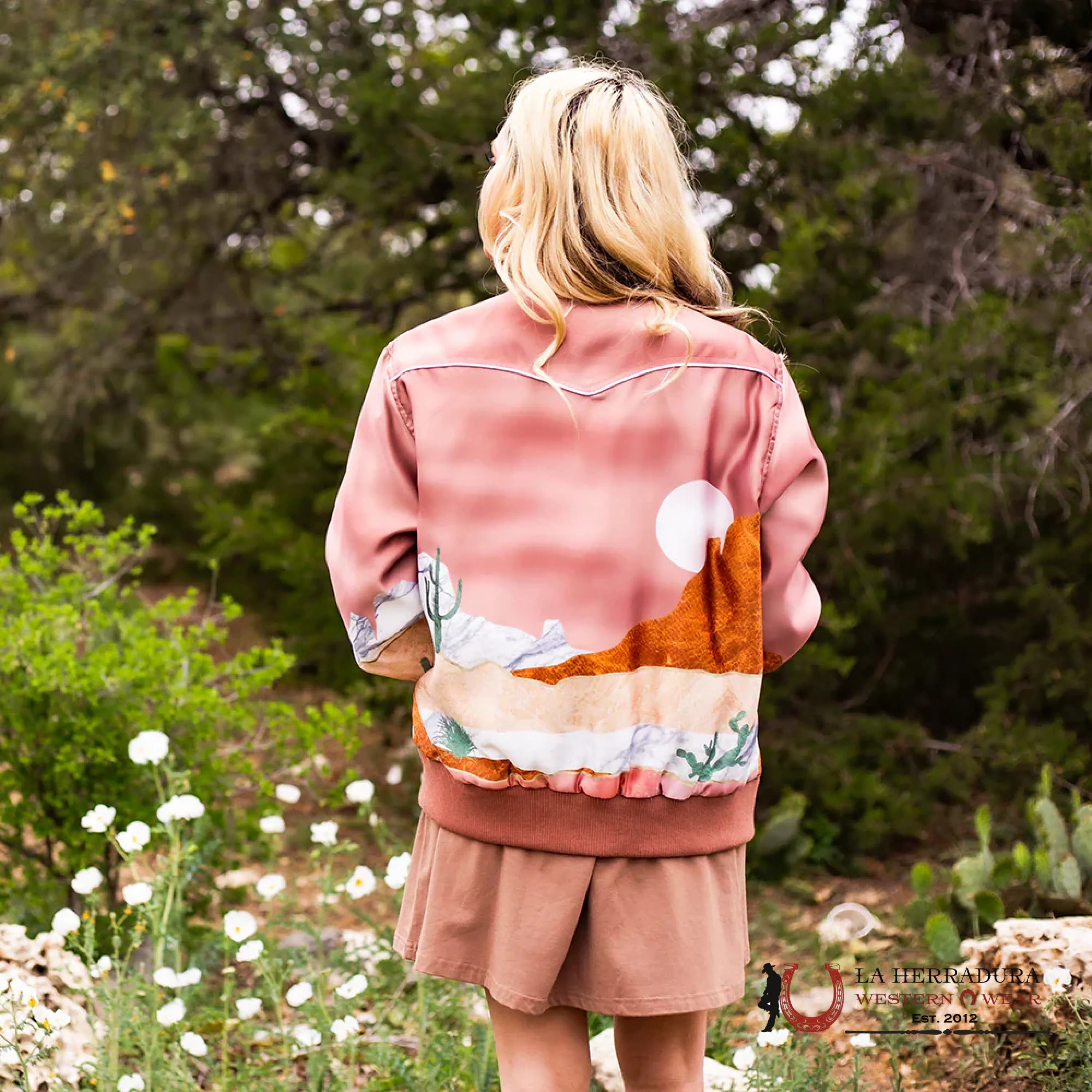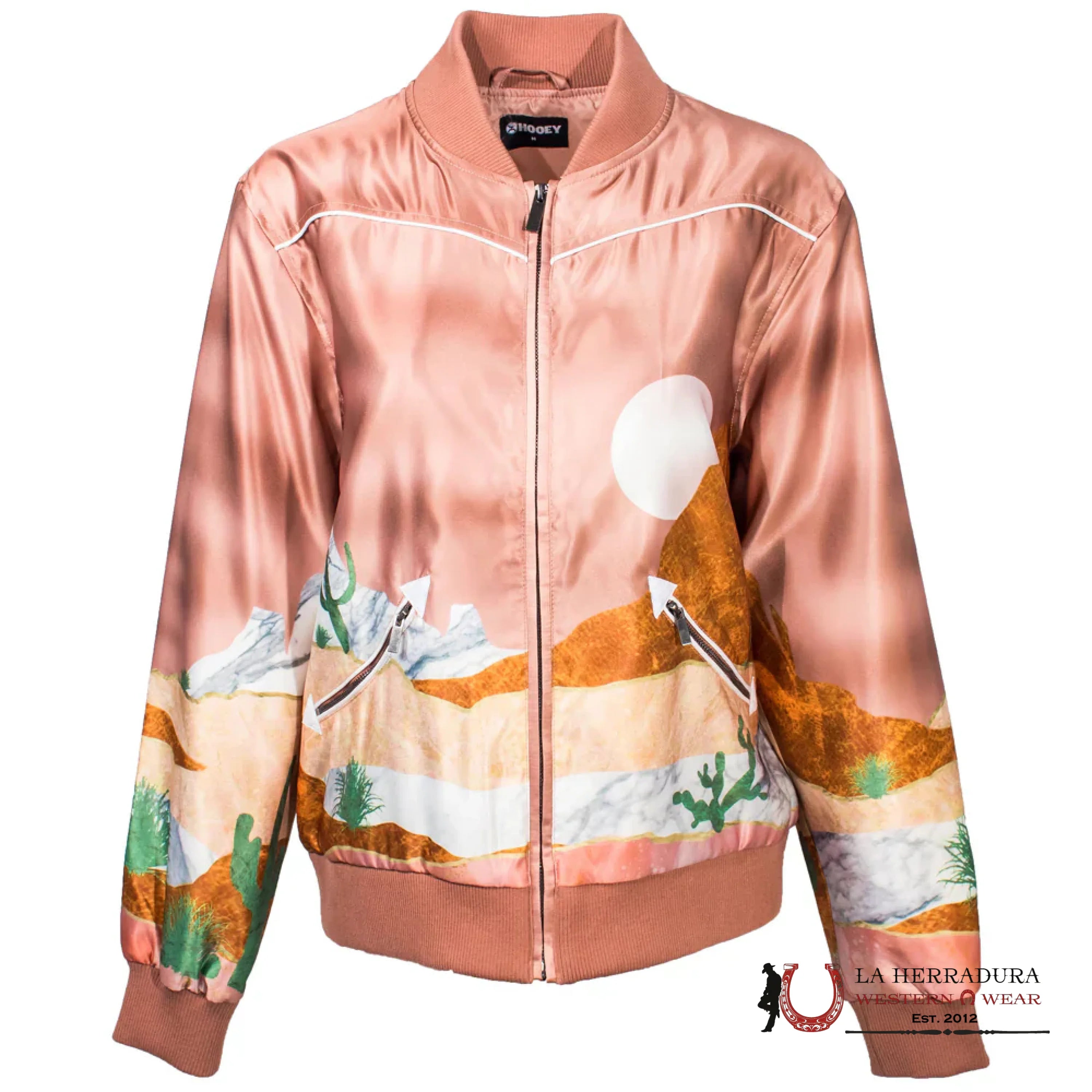 HOOEY LADIES BOMBER JACKET PINK WITH DESERT LANDSCAPE-HJ107PK