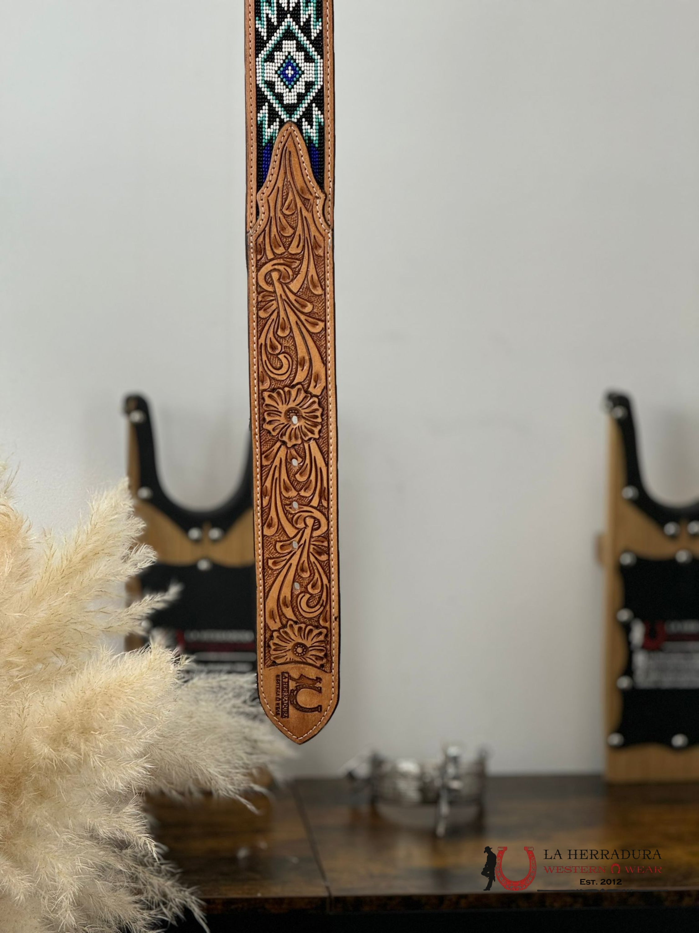 LA HERRADURA AZTEC ROYAL BLUE HANDTOOLED 2 INCH BELT