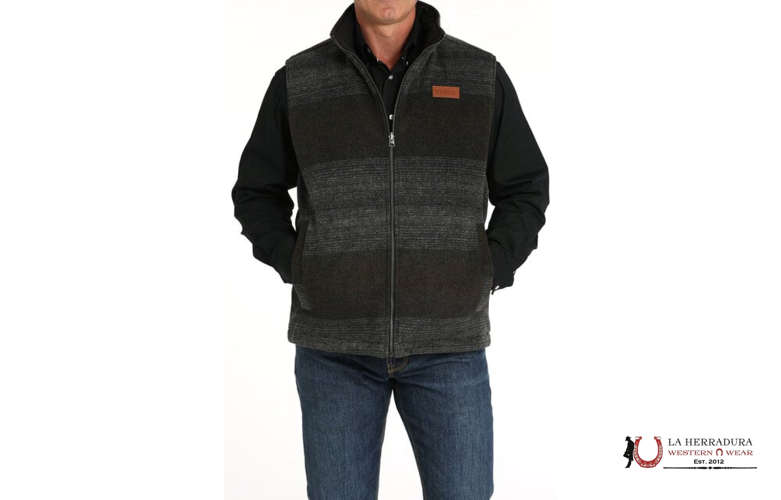 MENS CINCH REVERSIBLE VEST CHARCOAL AND BROWN