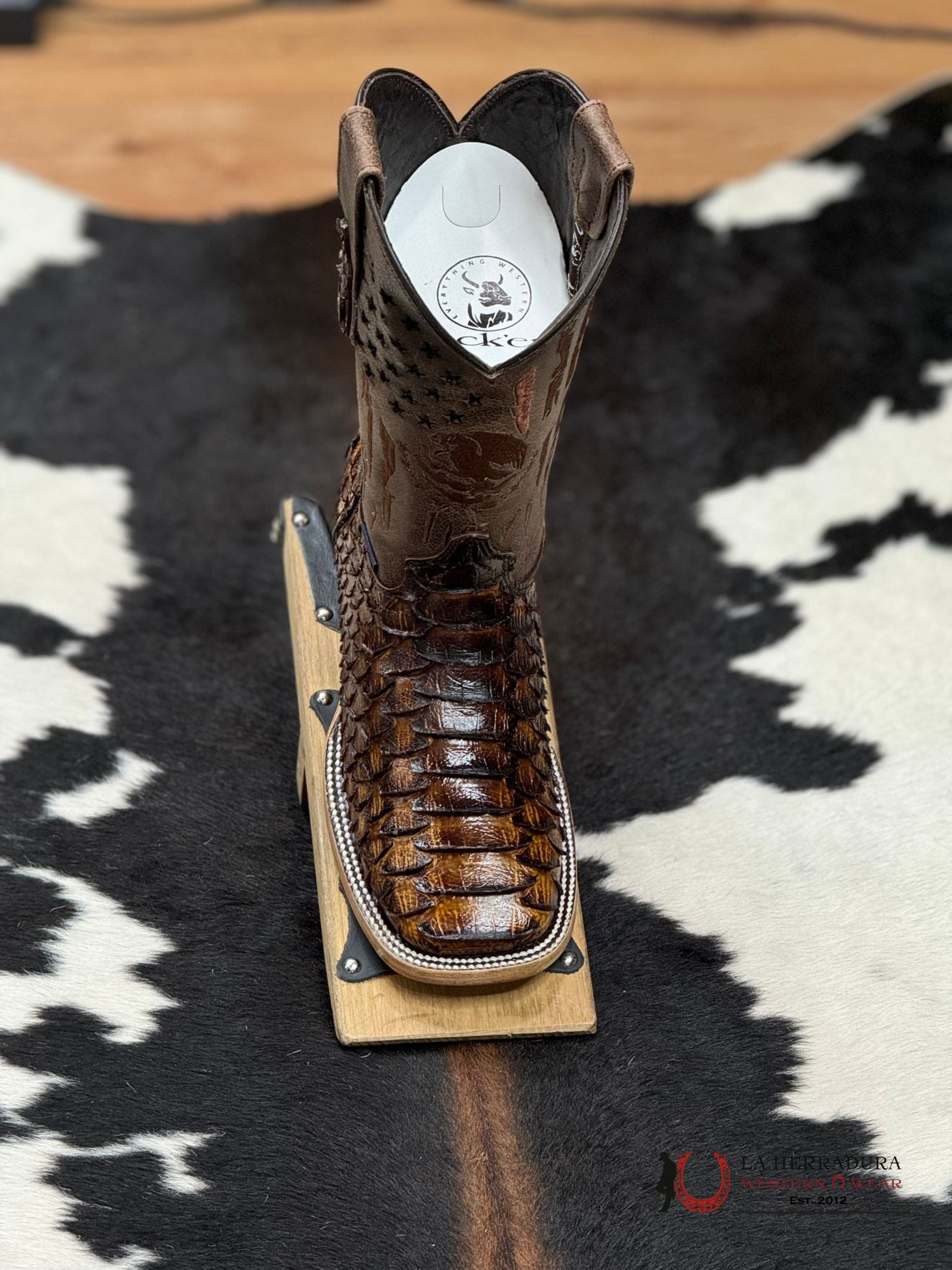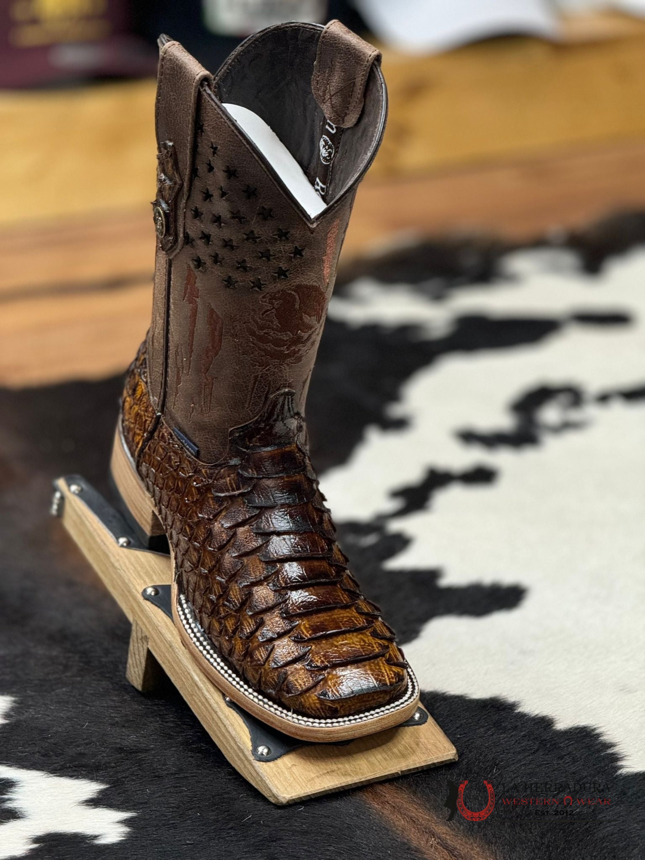Bold and unique style of our MENS CLON NORMAL MIEL BRILLOSO BOOT! The rich honey color, python detailing, and square toe design create a one-of-a-kind look. With an EE wide fit, these boots offer both comfort and fashion. Stand out from the crowd with our statement-making boot.
