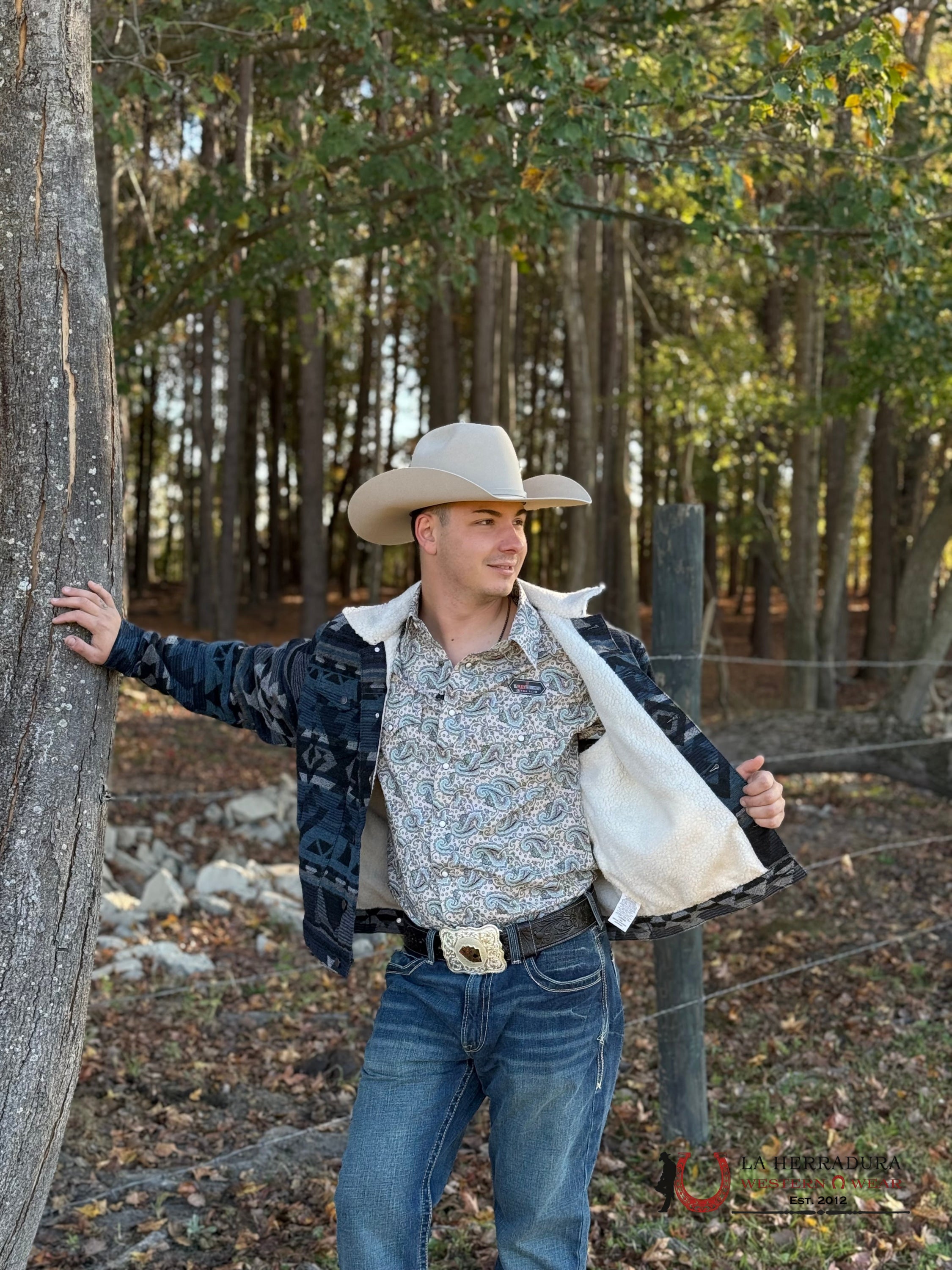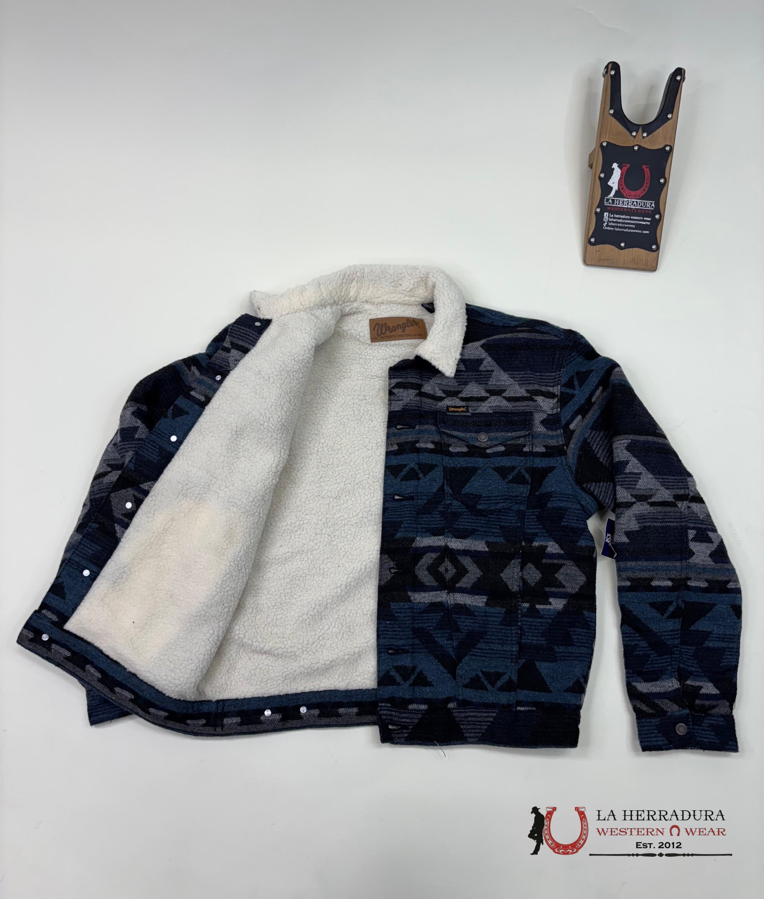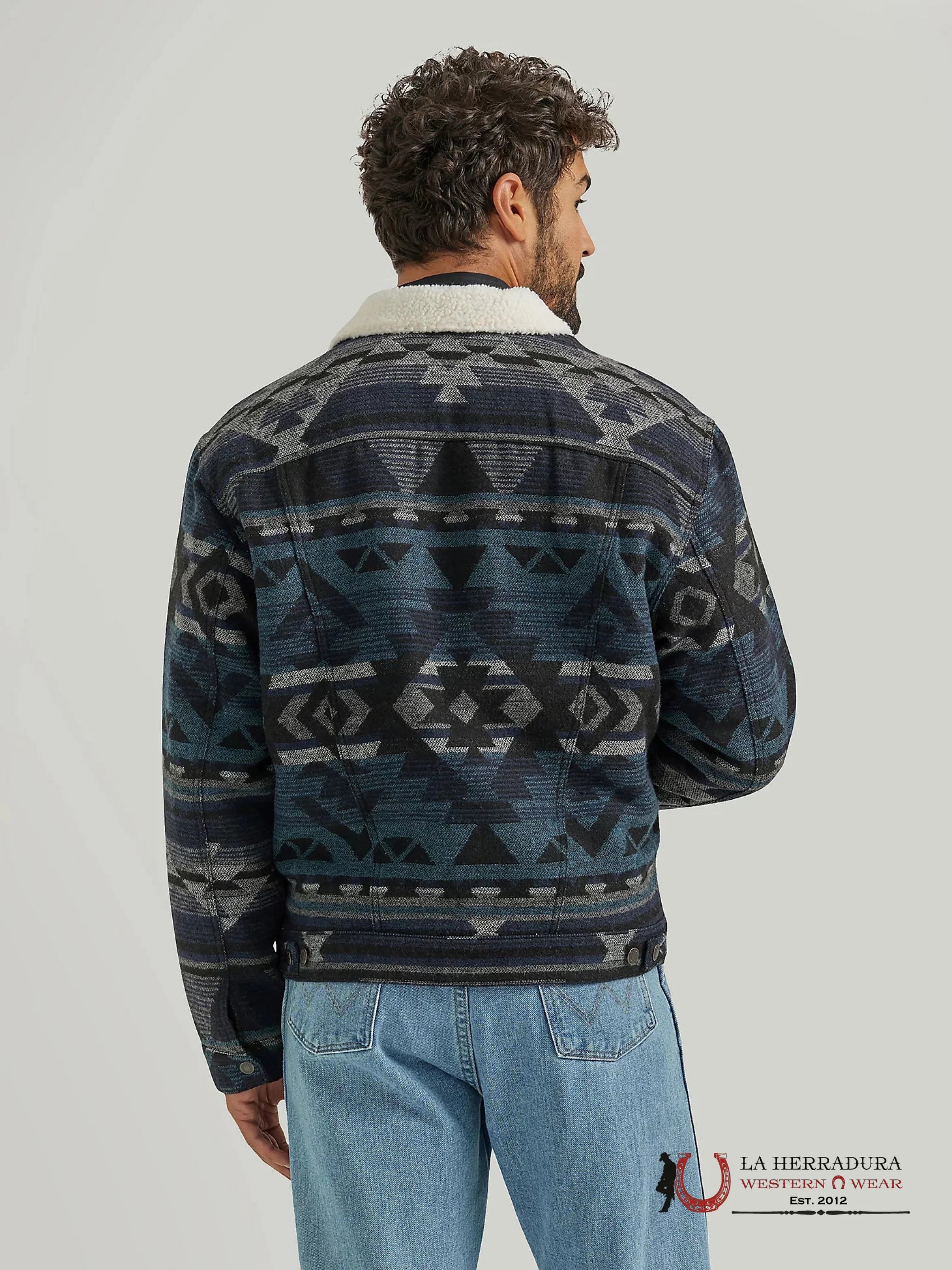 WRANGLER MEN SHERPA LINED JACQUARD PRINT NAVY WATERS JEAN JKT 112352866