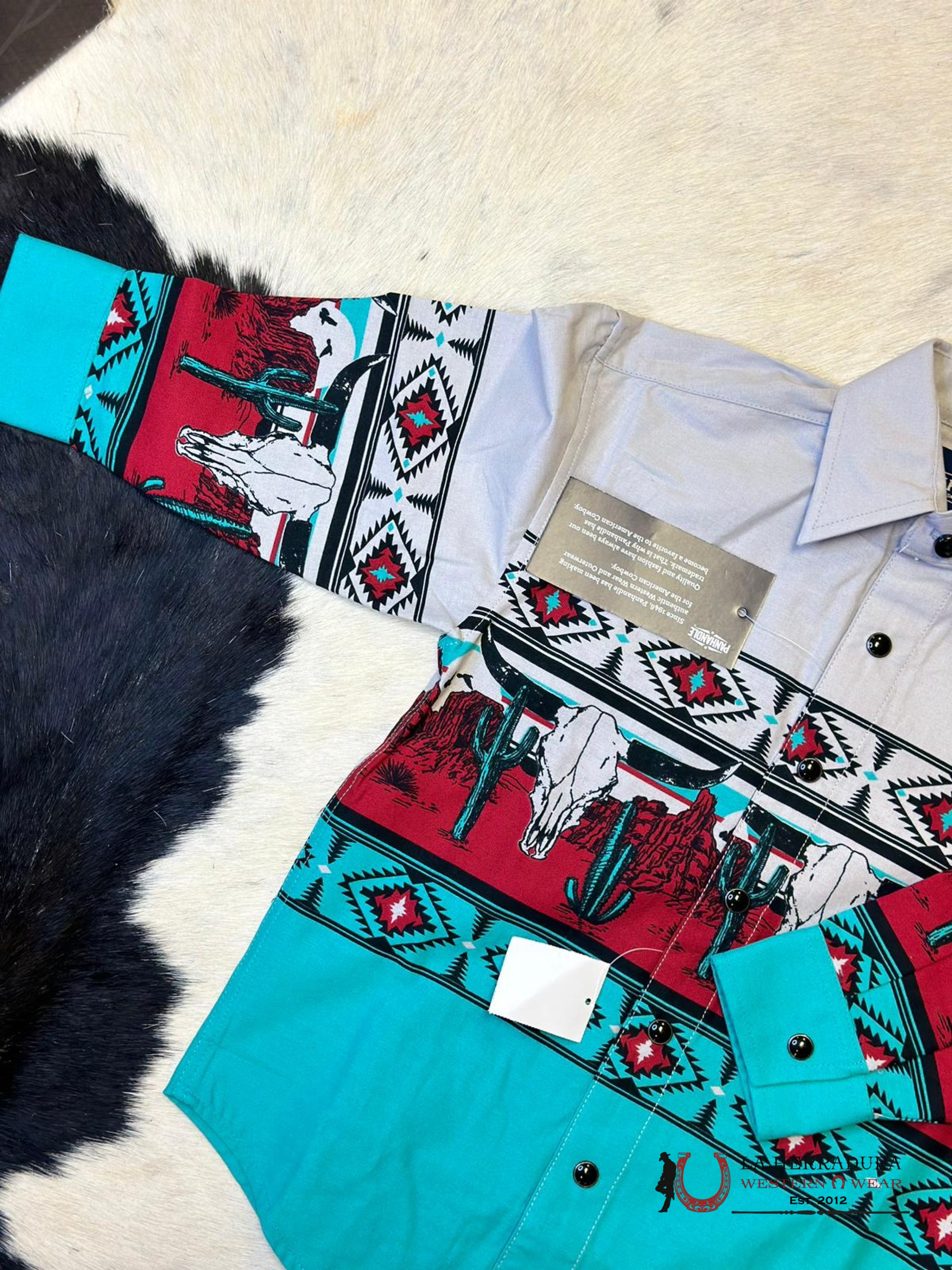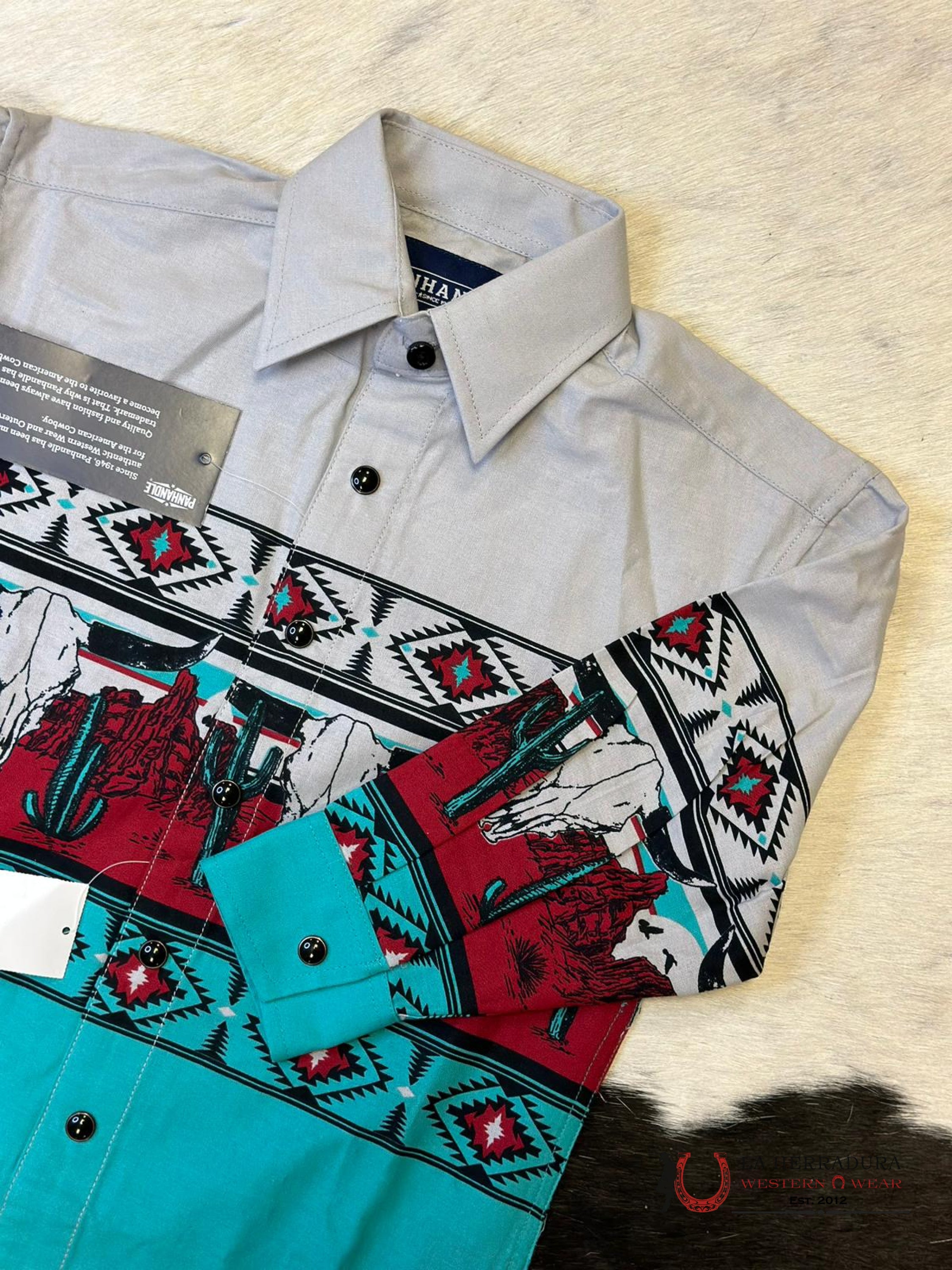 PANHANDLE AZTEC SHIRT GREY/TEAL