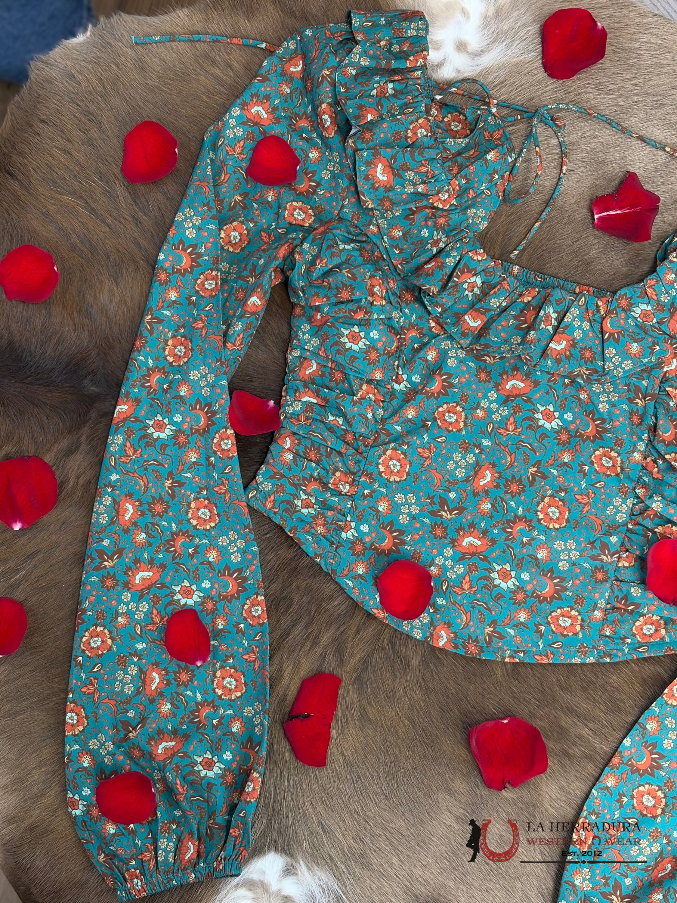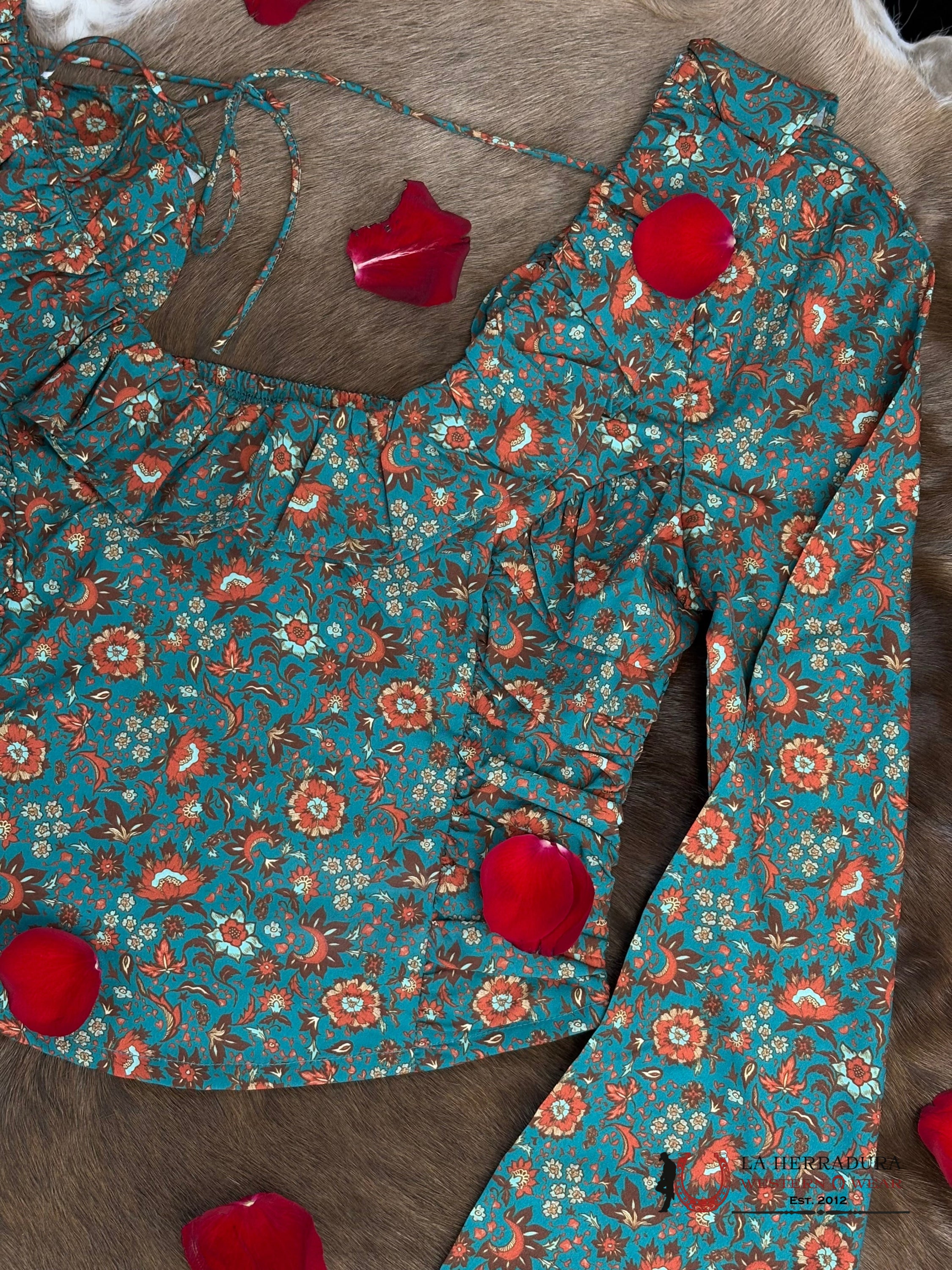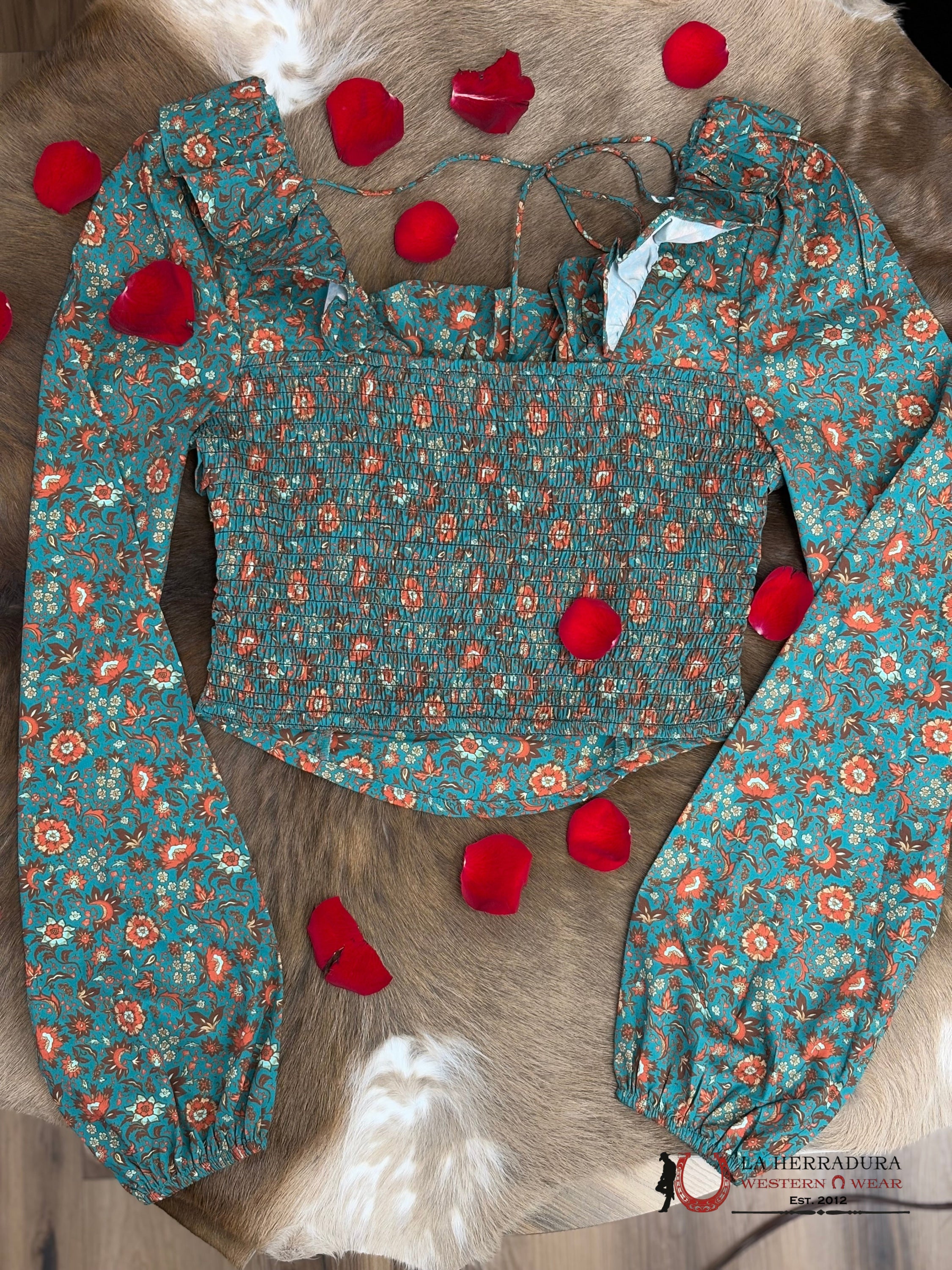Rock And Roll Hunter Green Scooped Neckline Floral Top