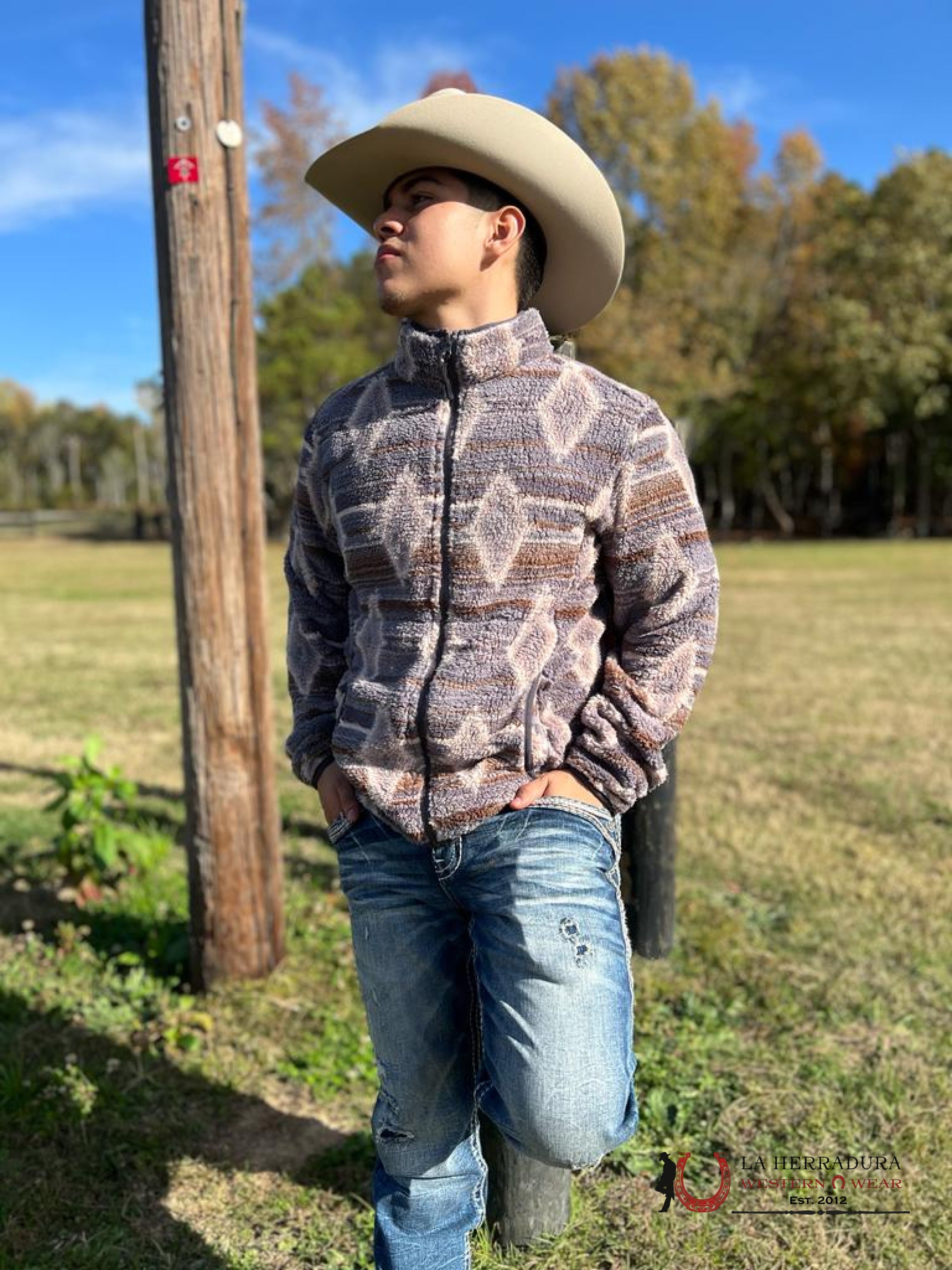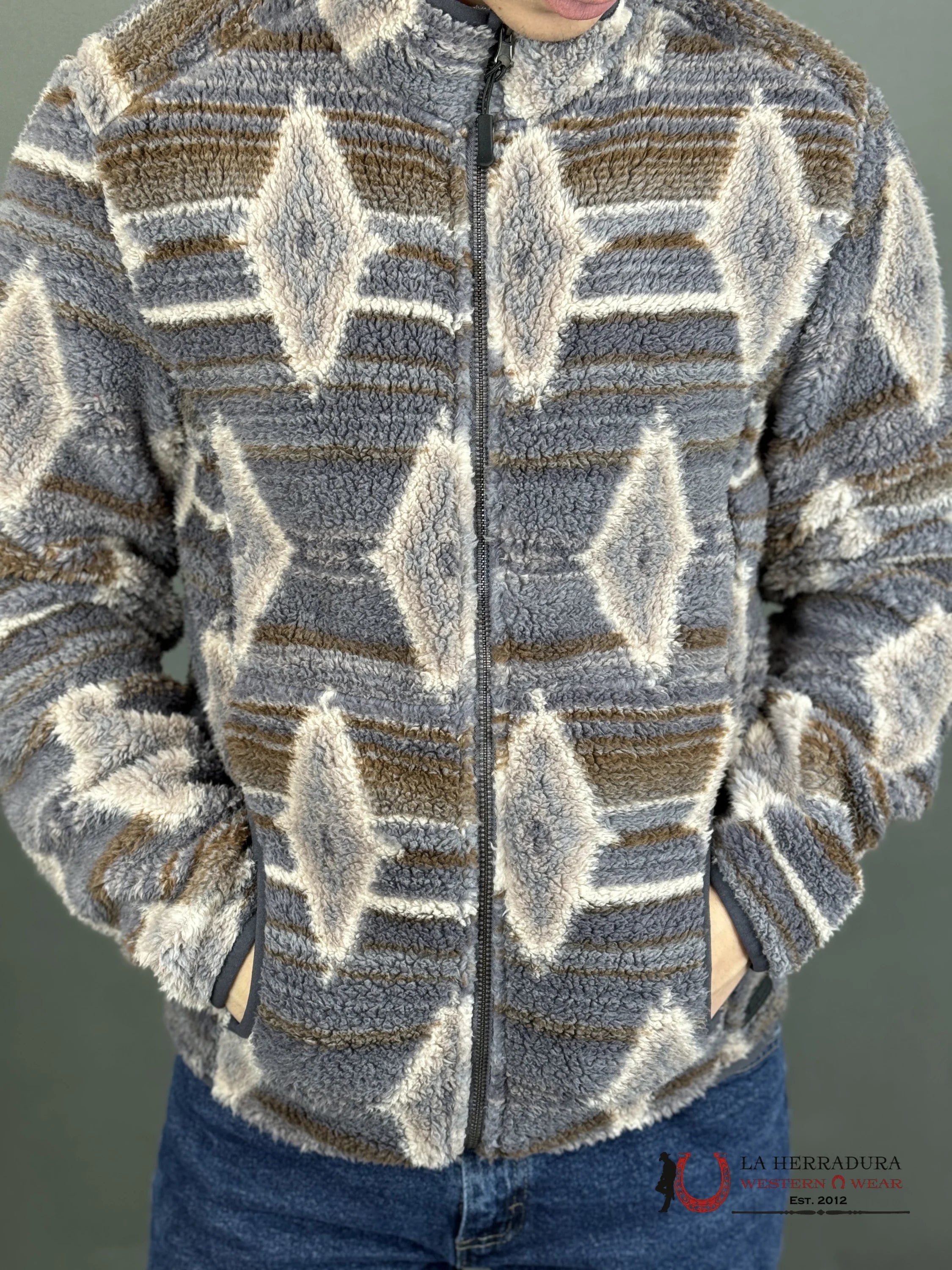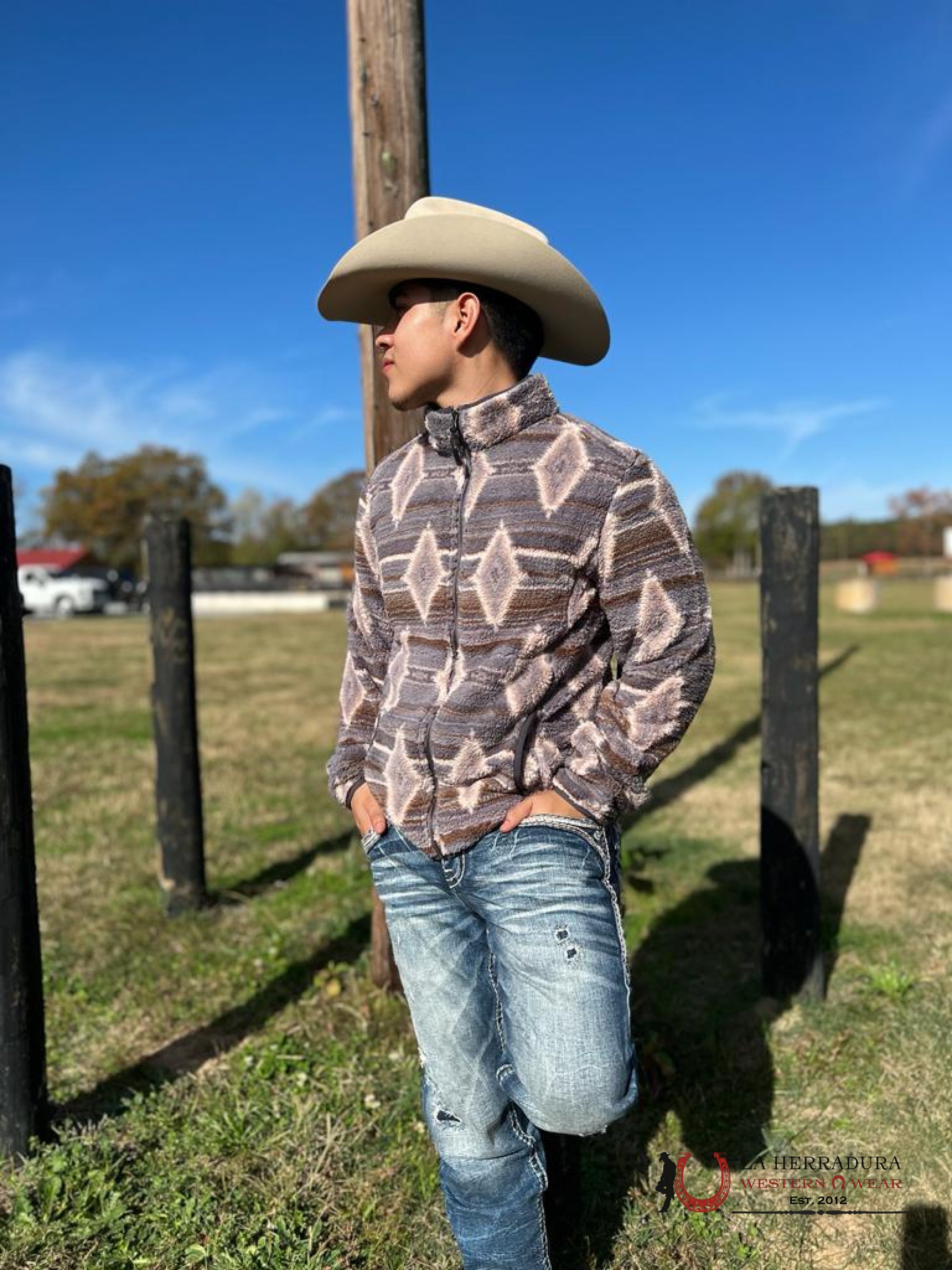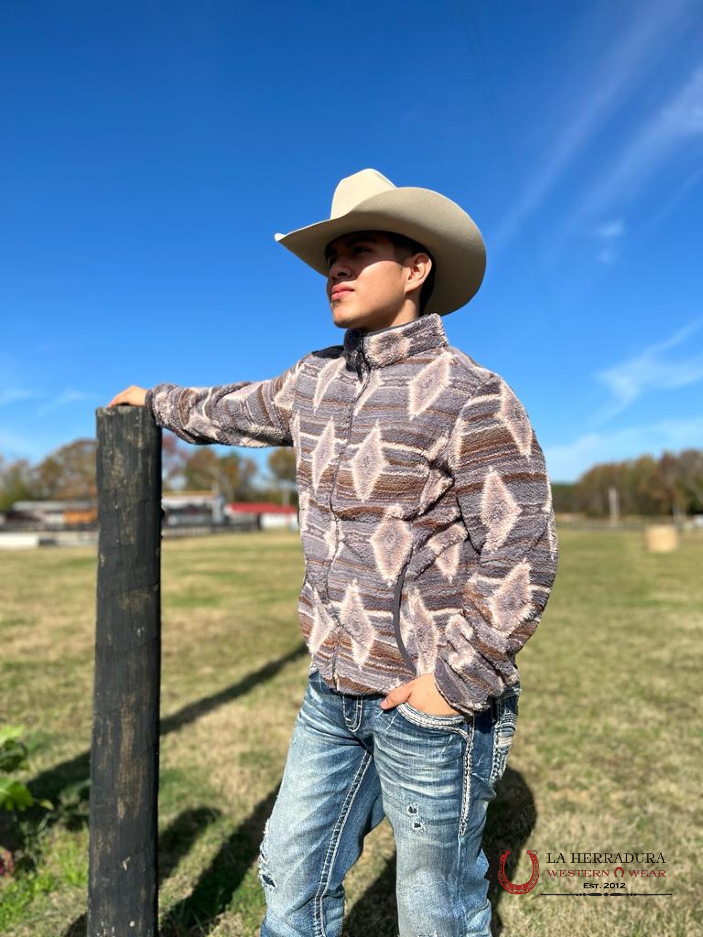 ROCK & ROLL AZTEC PRINTED BERBER JACKET BROWN