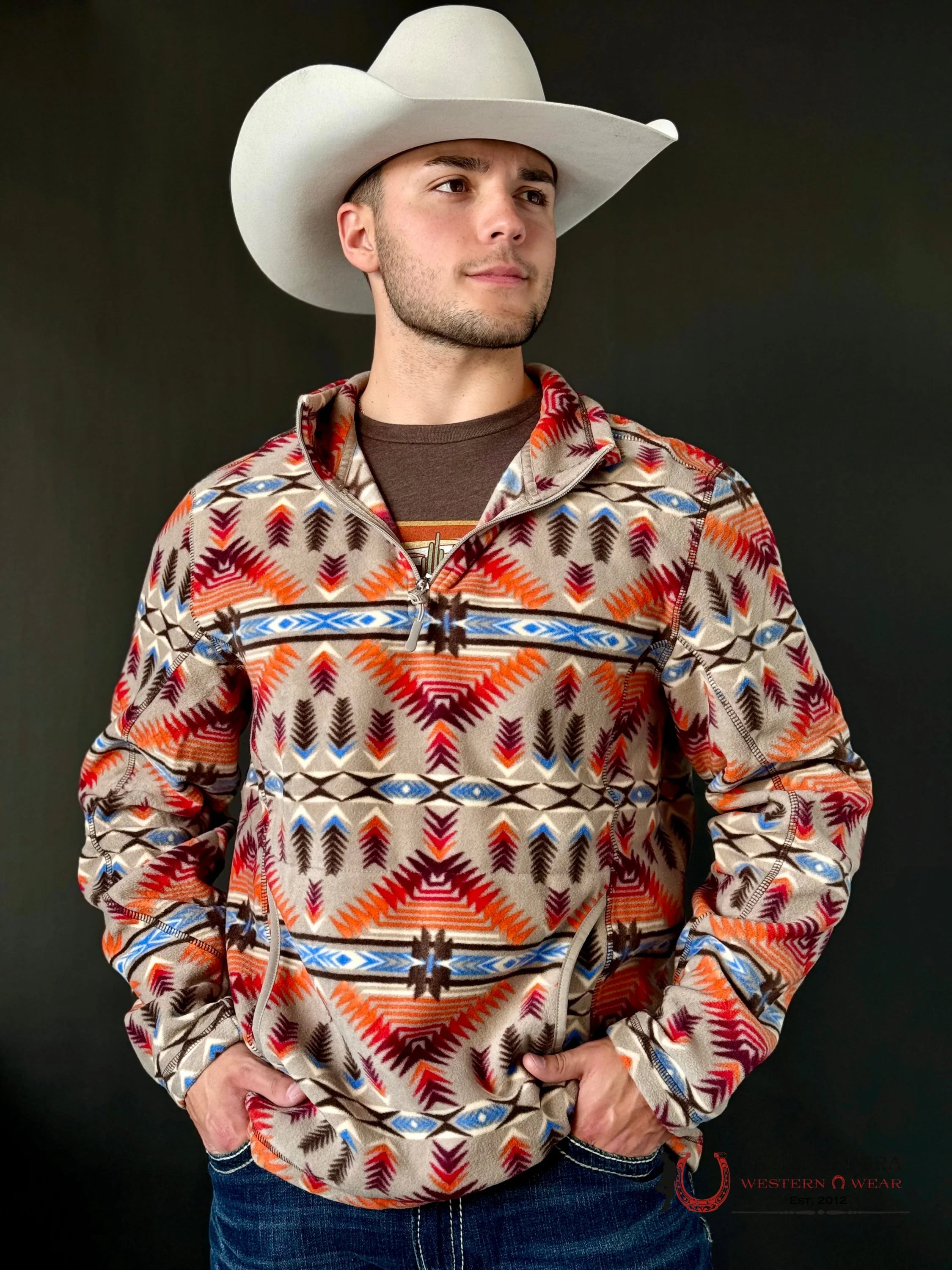 ROCK & ROLL AZTEC PRINTED FLEECE PULLOVER TAN DM91C01822