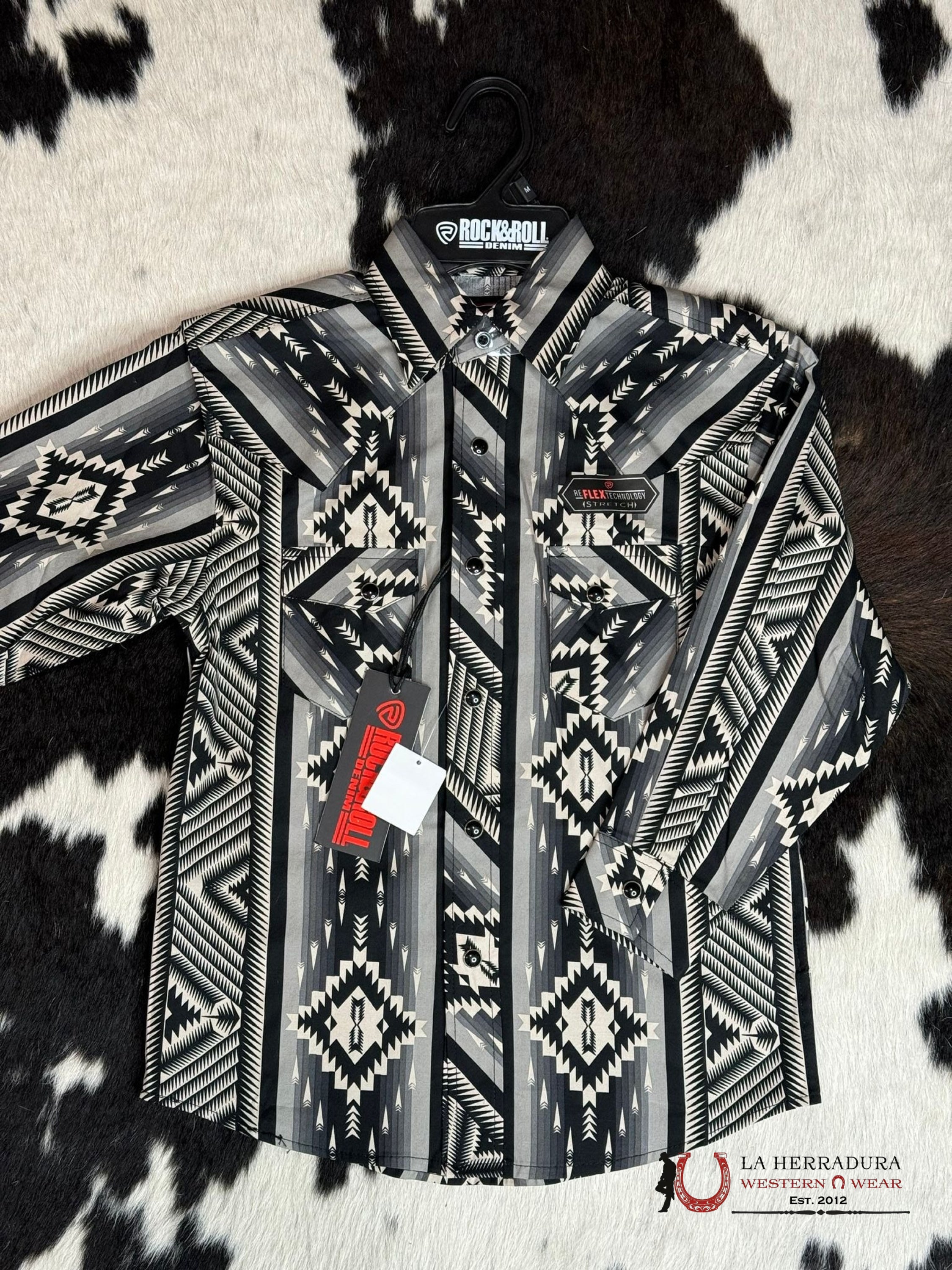 ROCK&ROLL BOYS BLACK WHITE AZTEC SNAP LONG SLEEVE