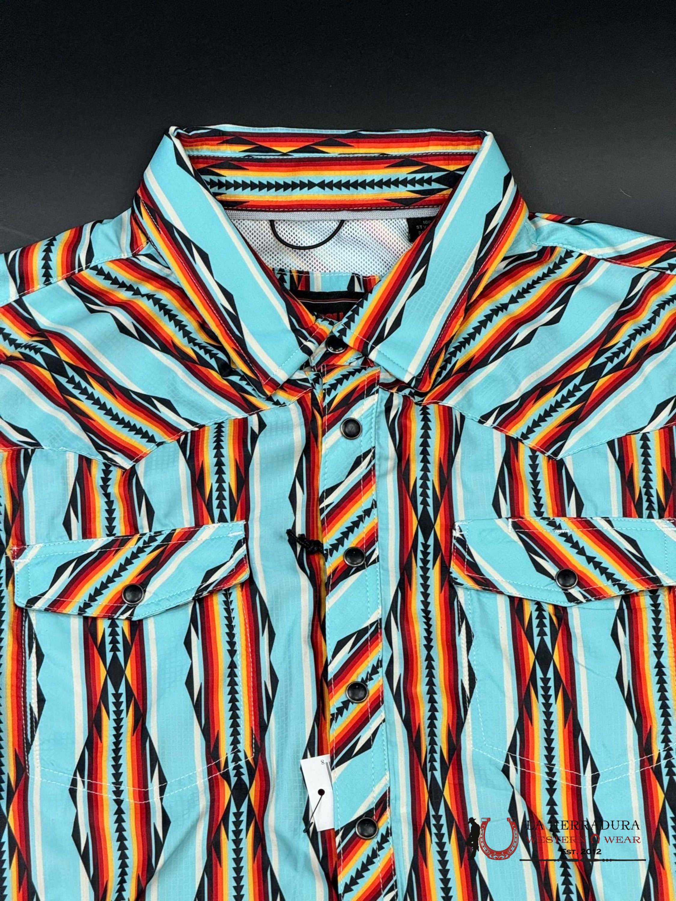 ROCK&ROLL BRIGHT TURQUOISE TEK AZTEC SNAP SHORT SLEEVE SHIRT