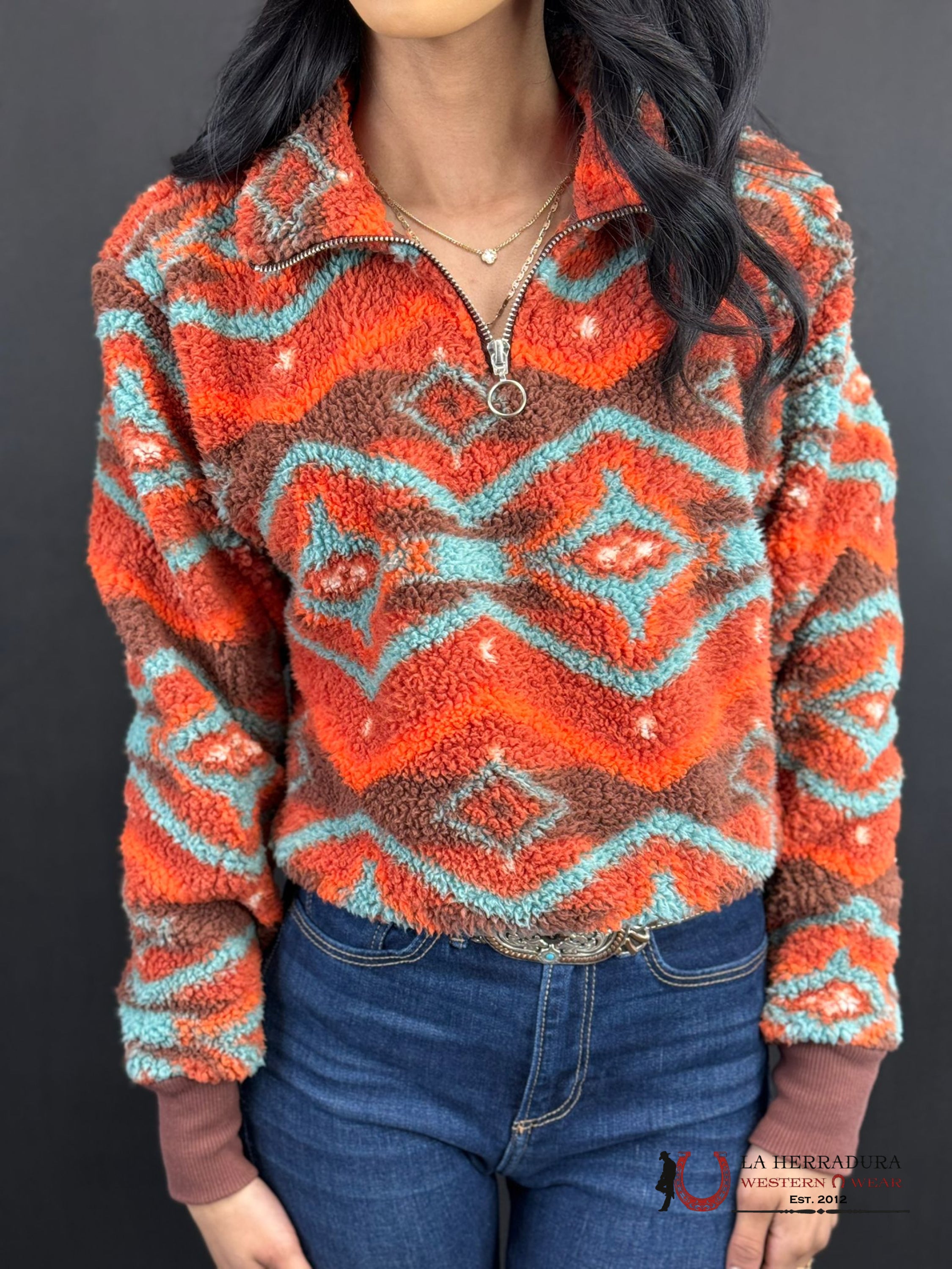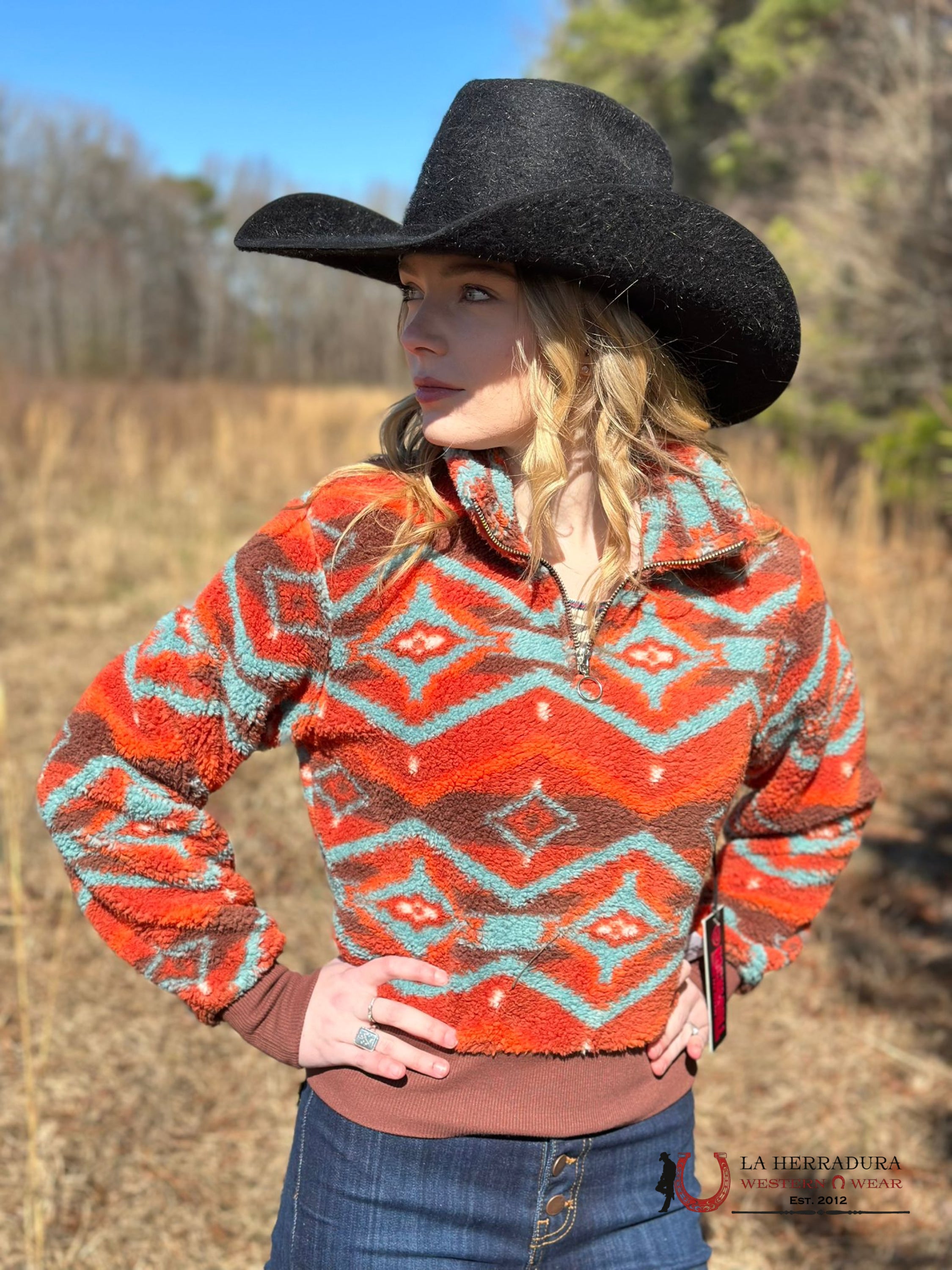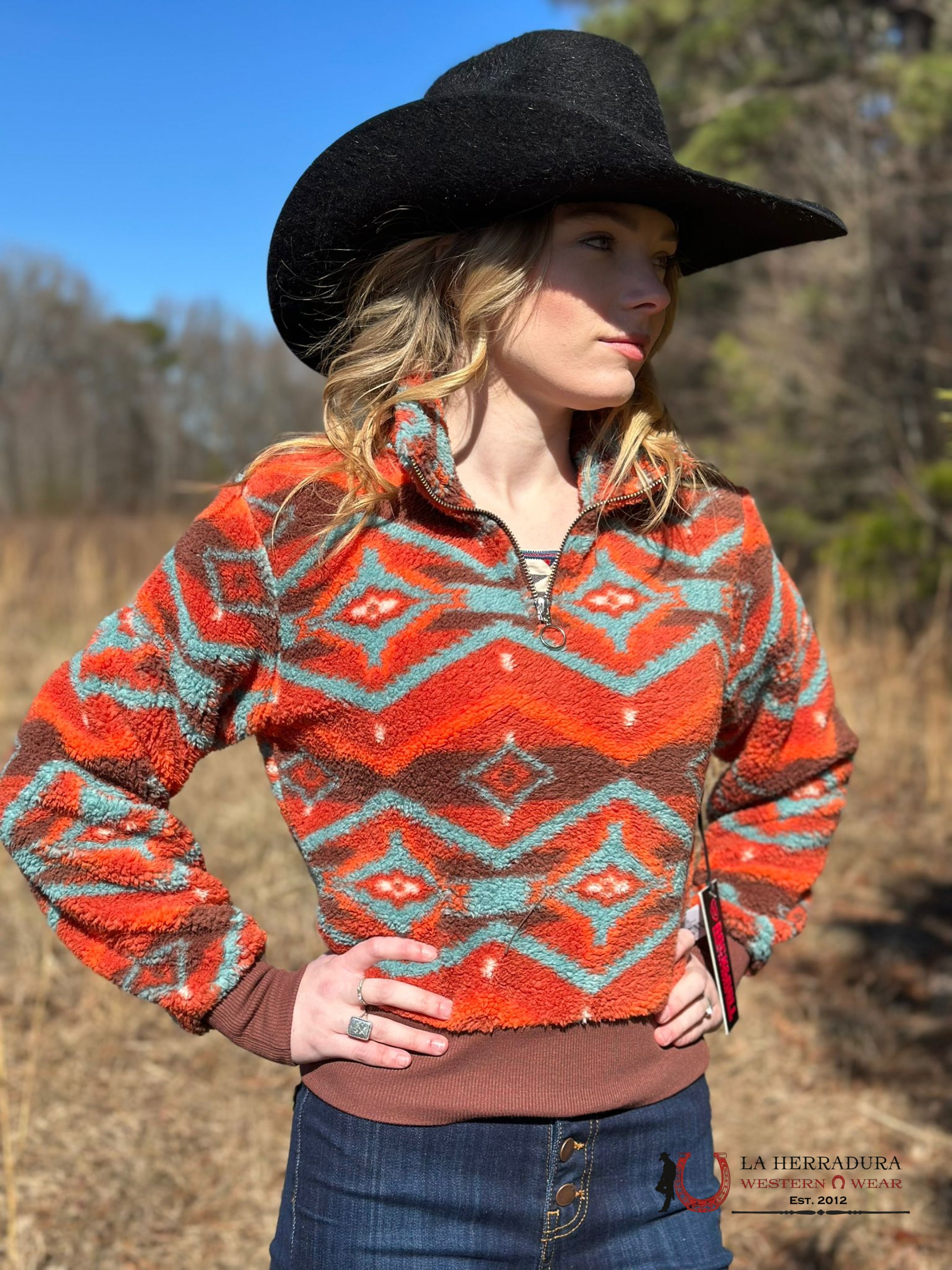Rock&Roll Womens Orange Aztec Printed Pullover RRWT91R041