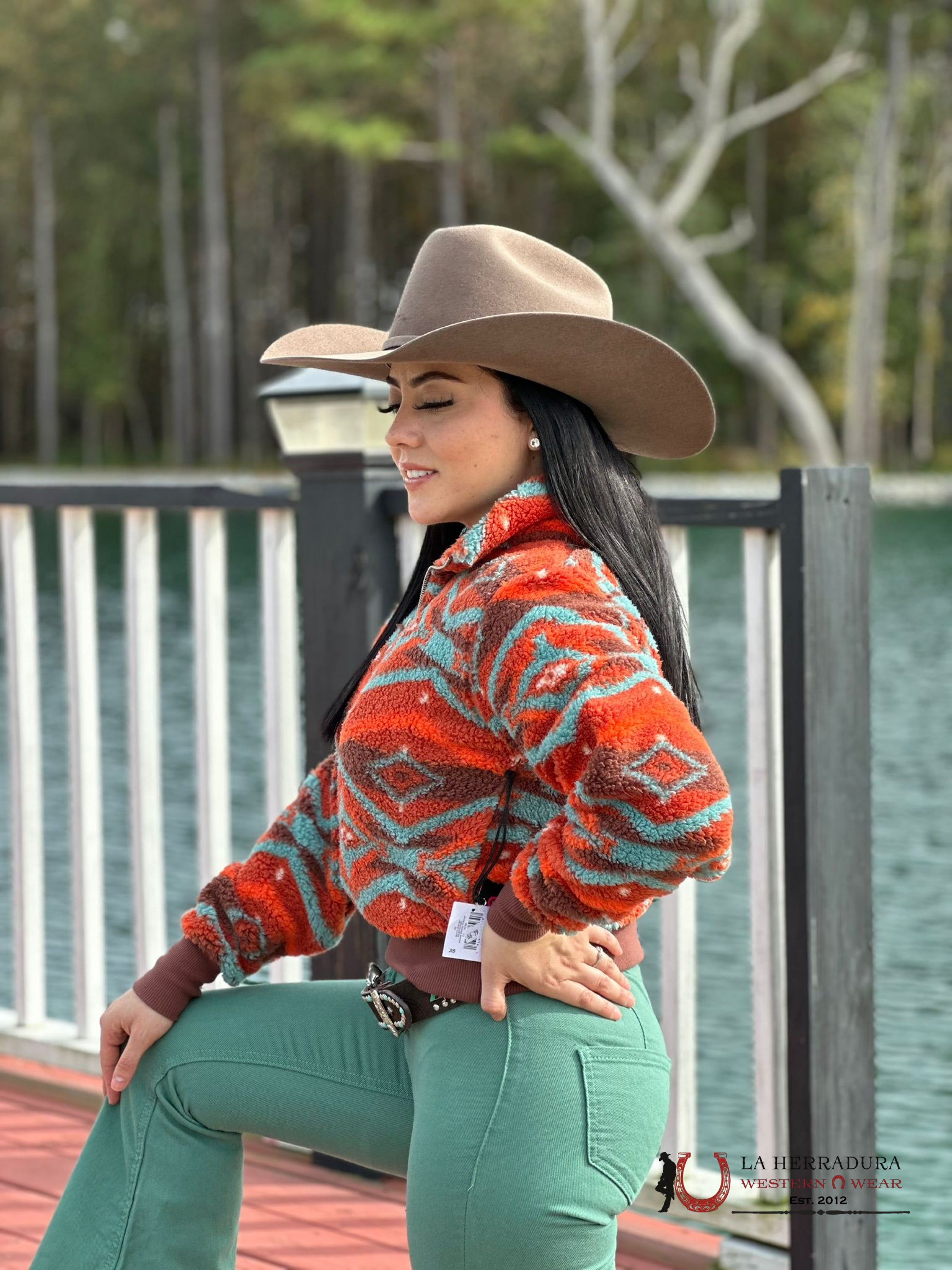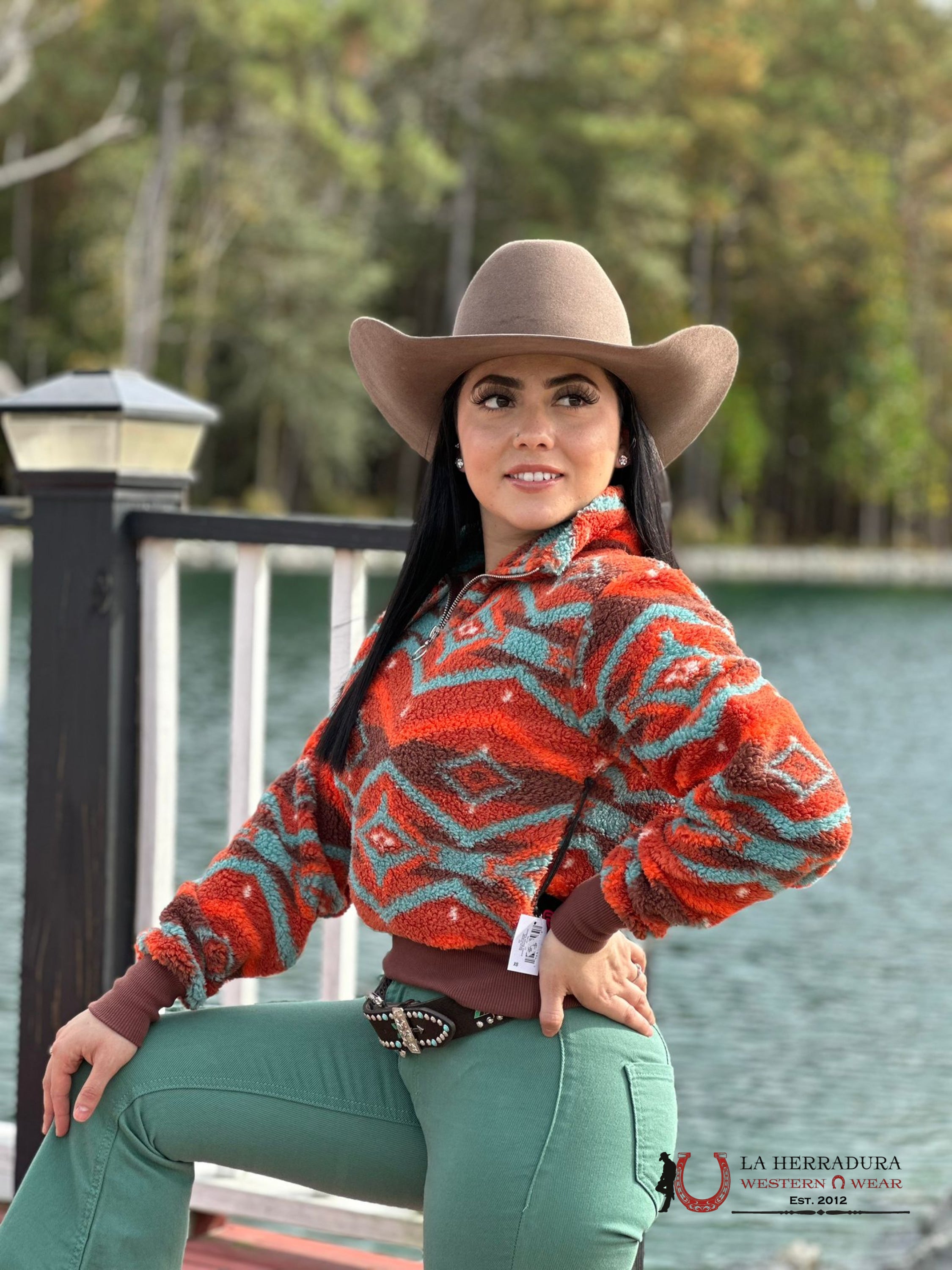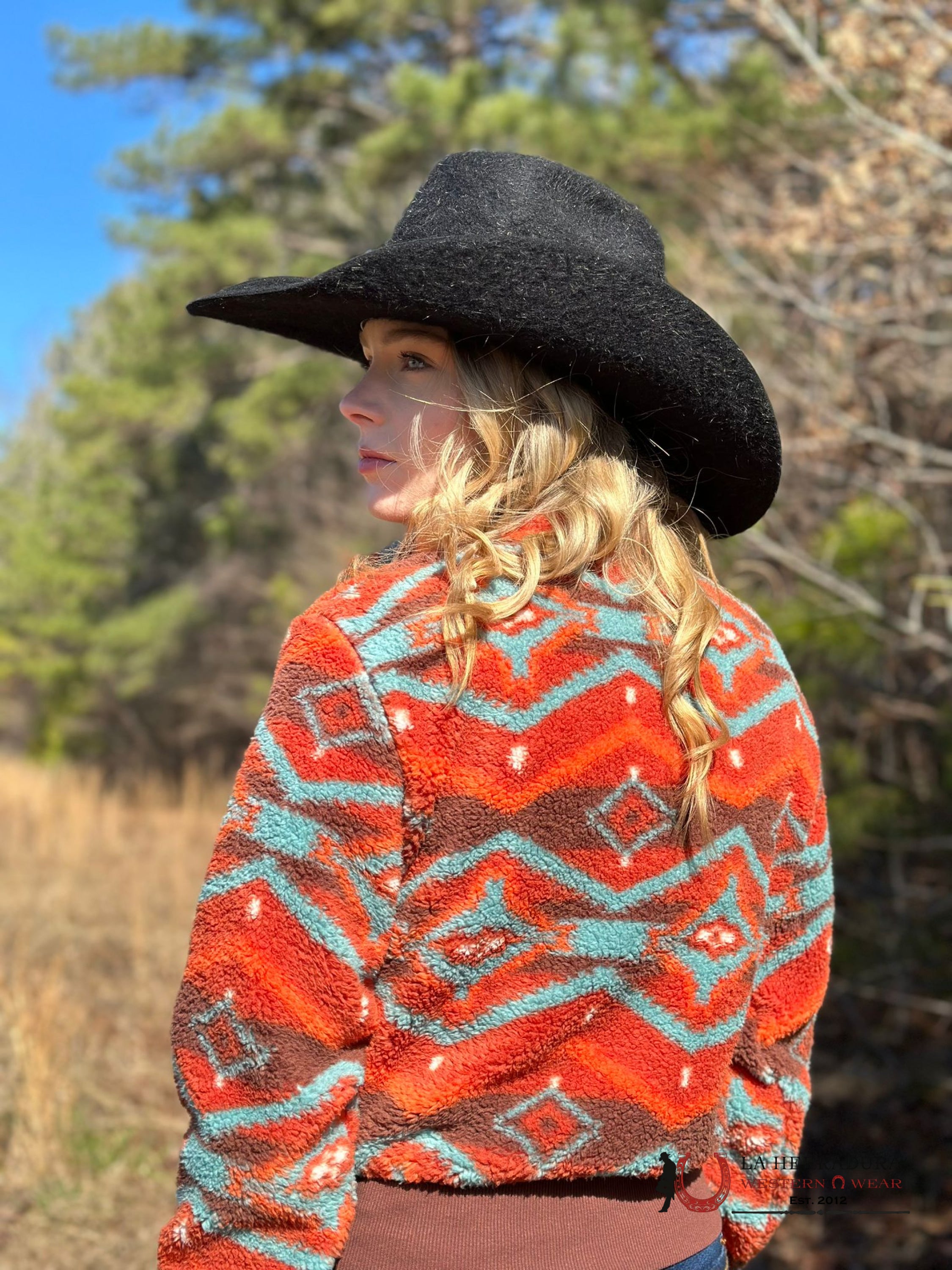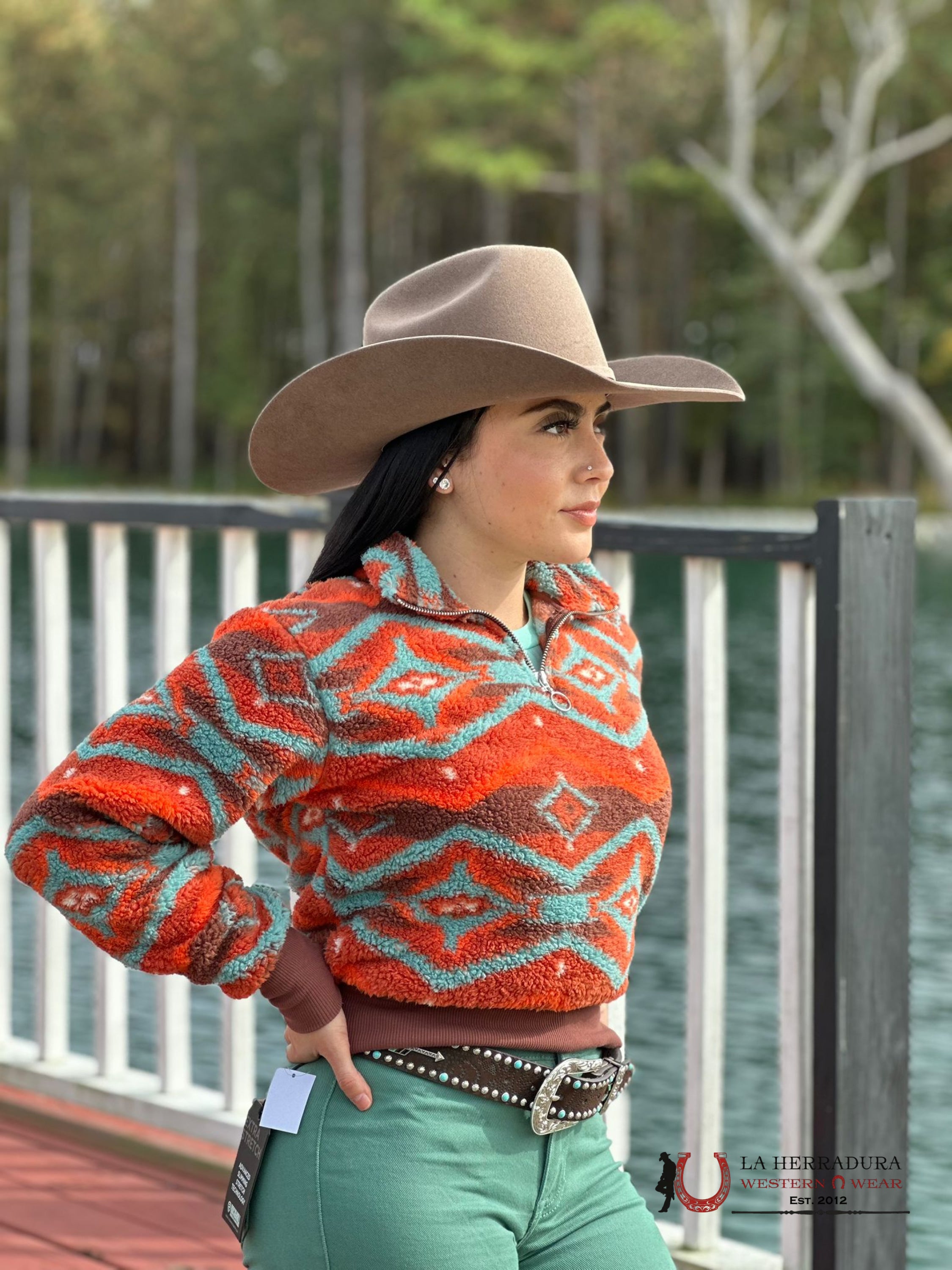 Rock&Roll Womens Orange Aztec Printed Pullover RRWT91R041