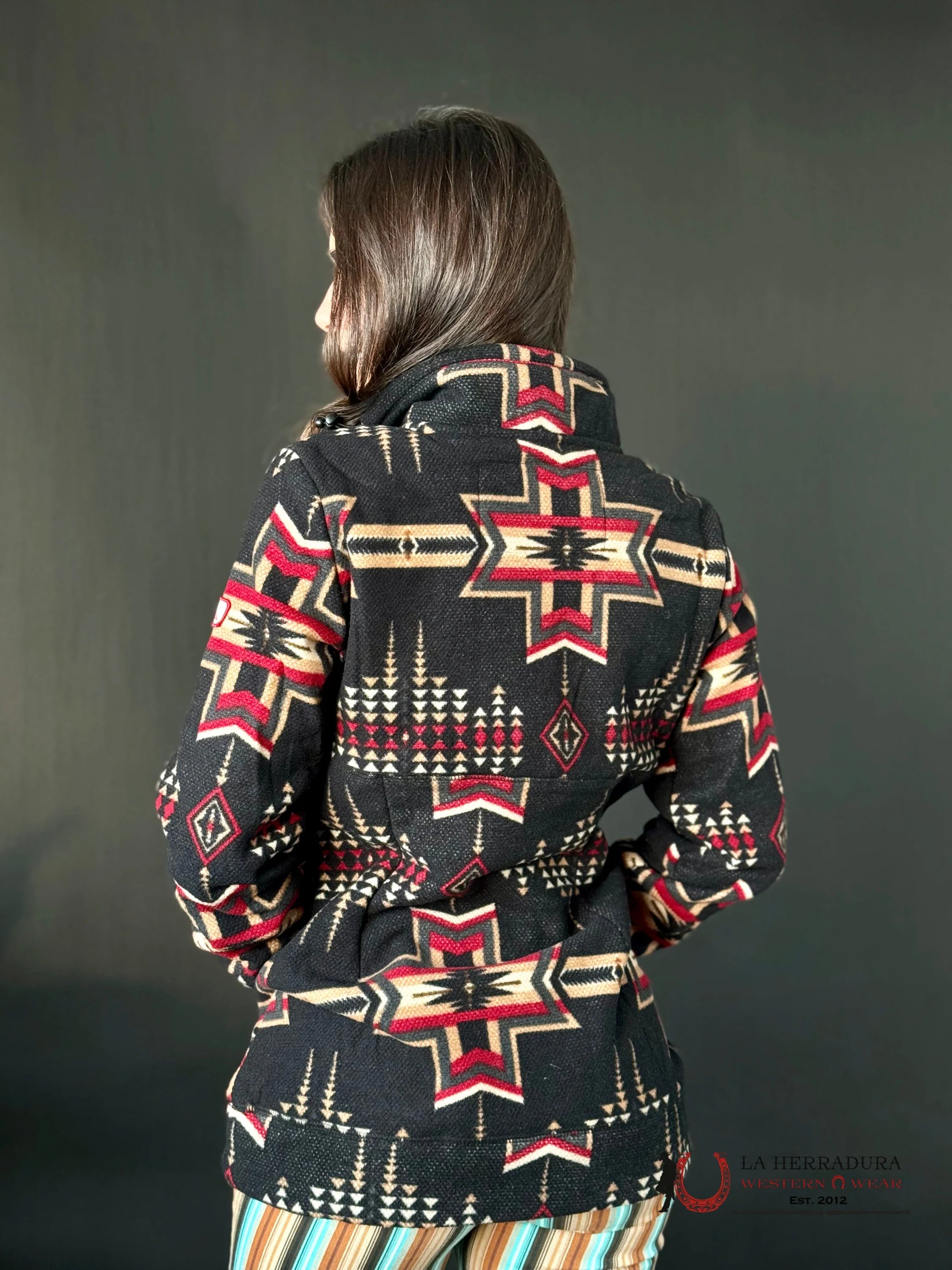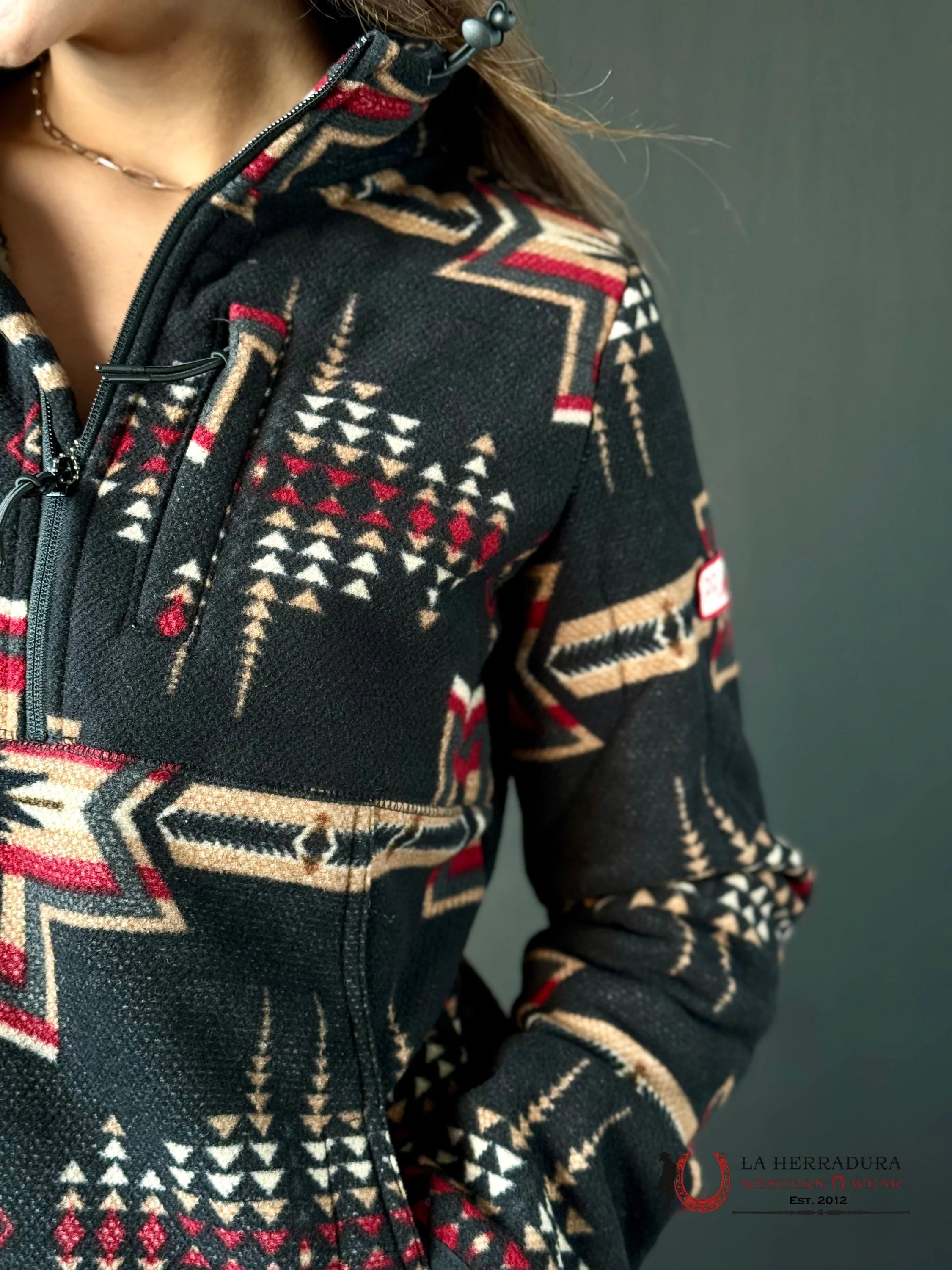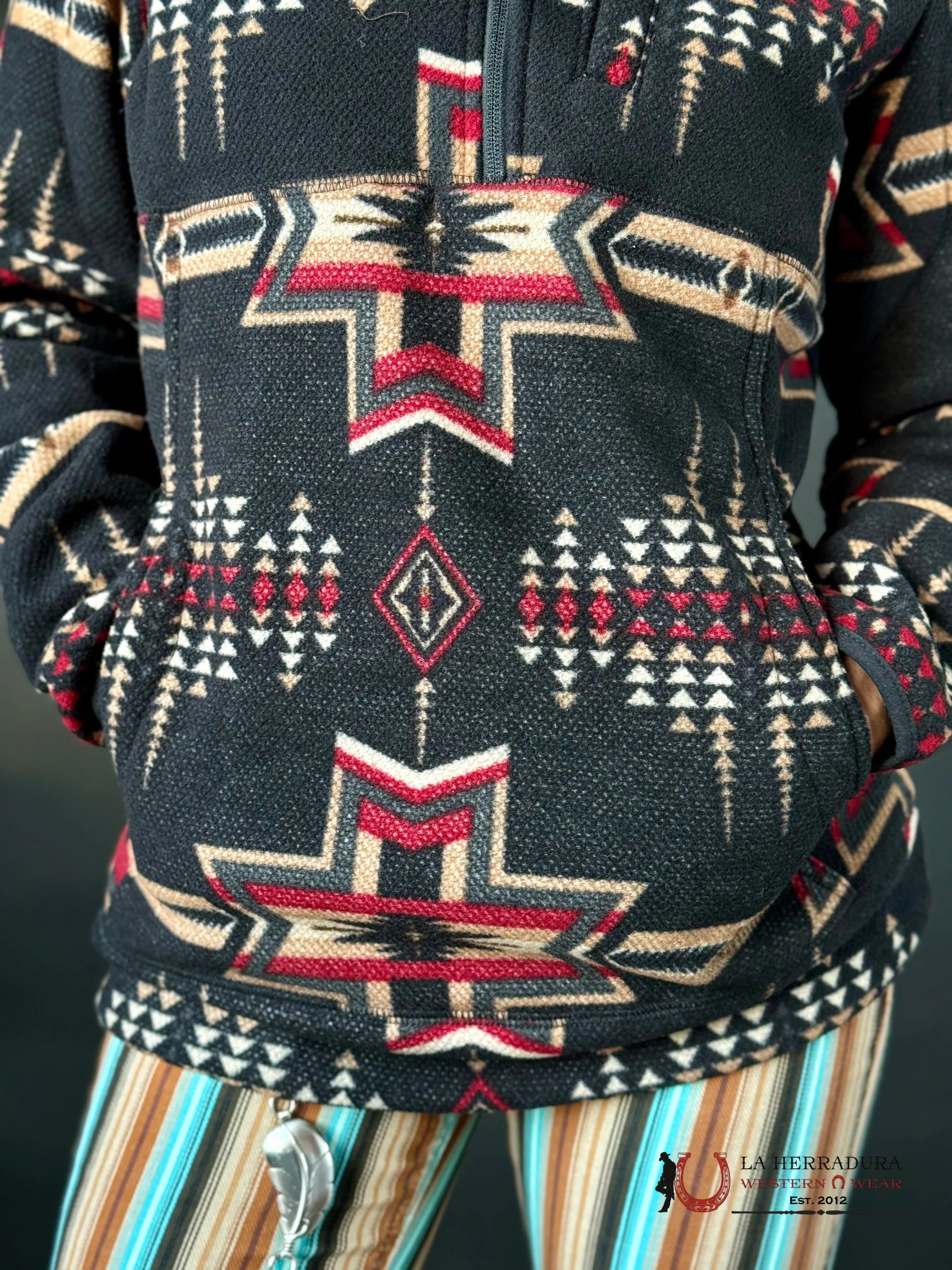 Rock&Roll Womens Aztec Printed Fleece Pullover Black