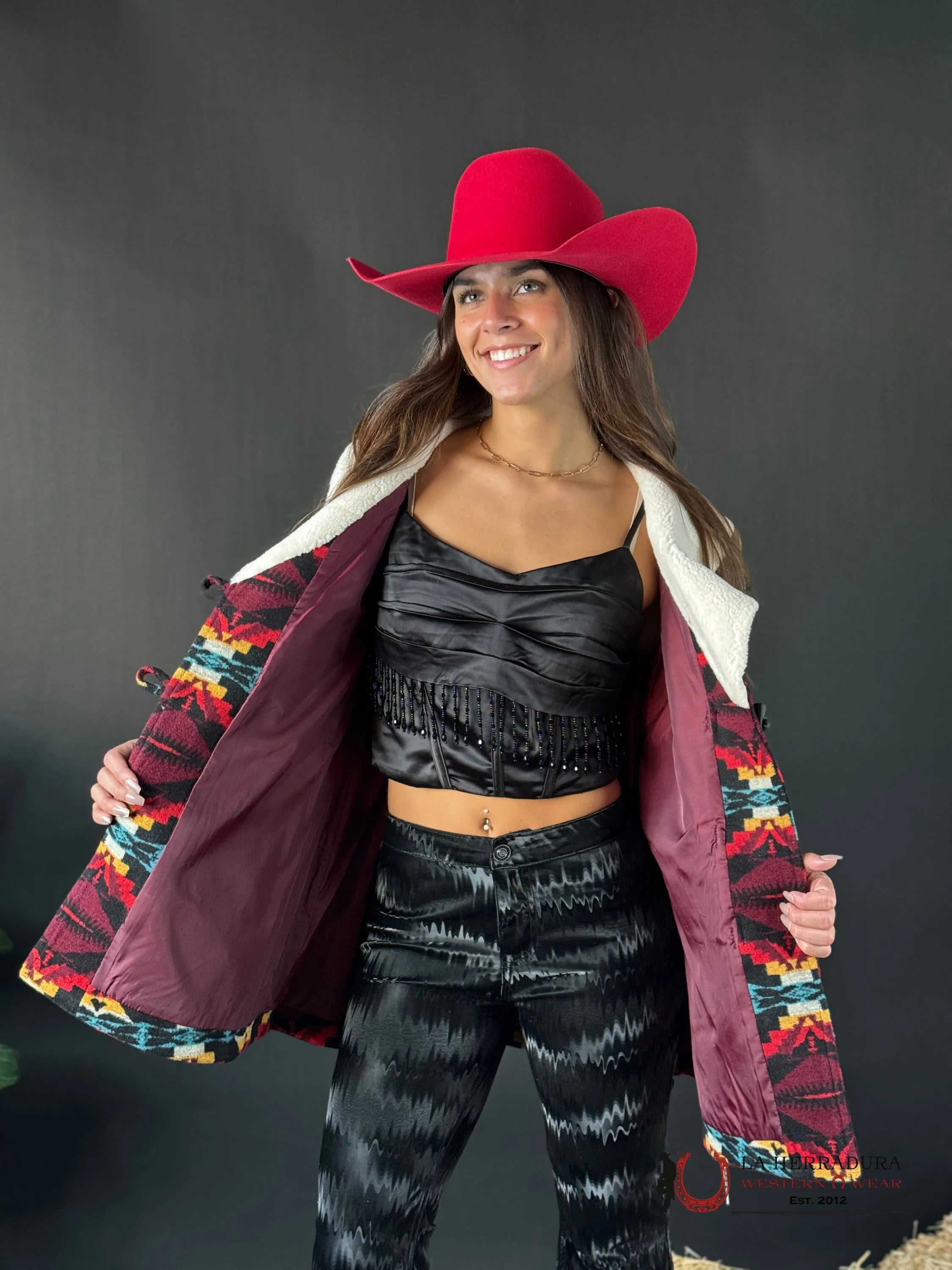 Rock&roll Womens Aztec Wool Cafe Coat Black DW92C01502