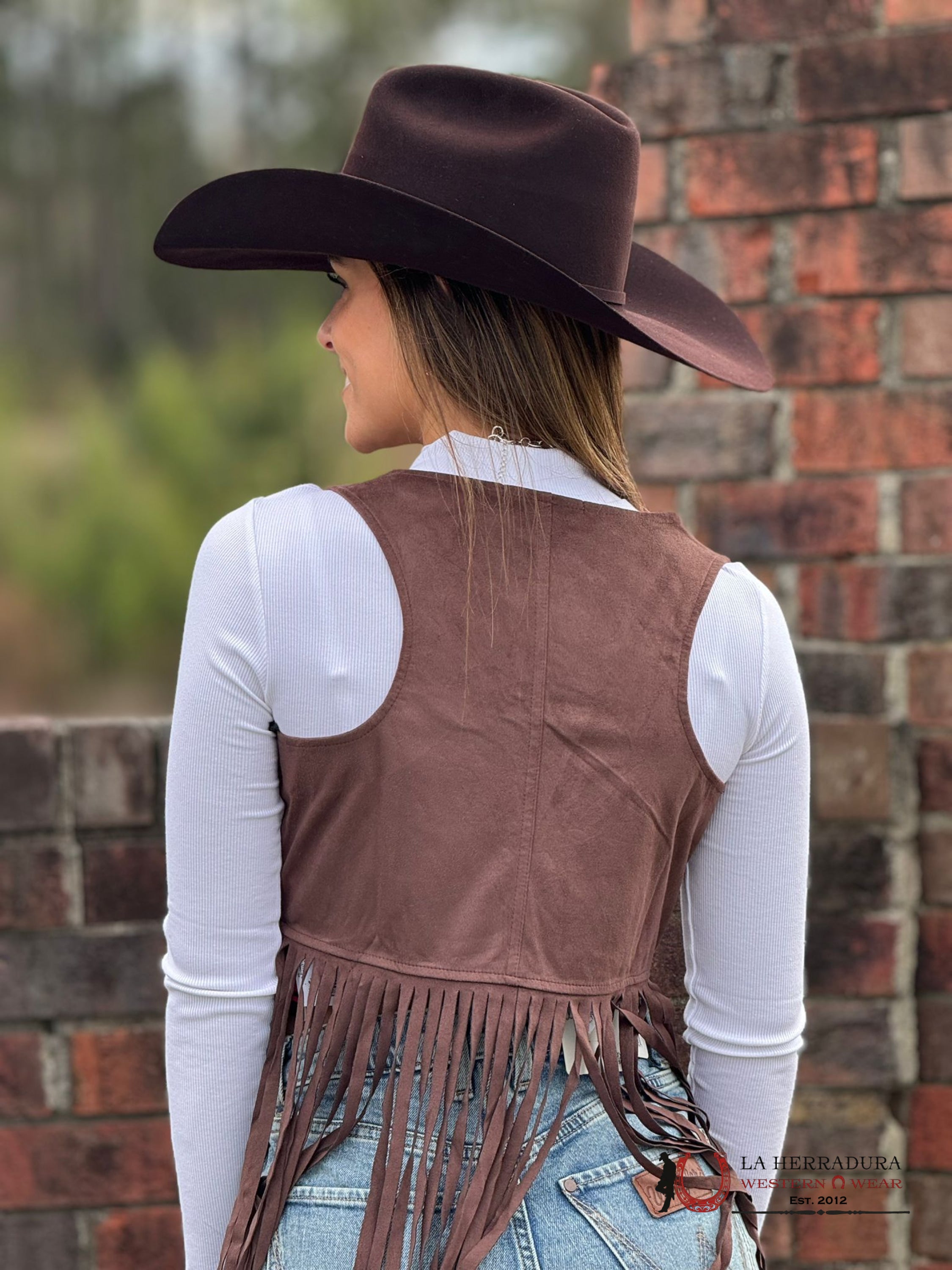 Rock your western style with this cute dark brown vest! The stitching and fringe add a touch of edginess, while the soft and comfortable material makes it perfect for dressing up any cowgirl look! Embrace your inner cowgirl with this versatile and stylish vest.