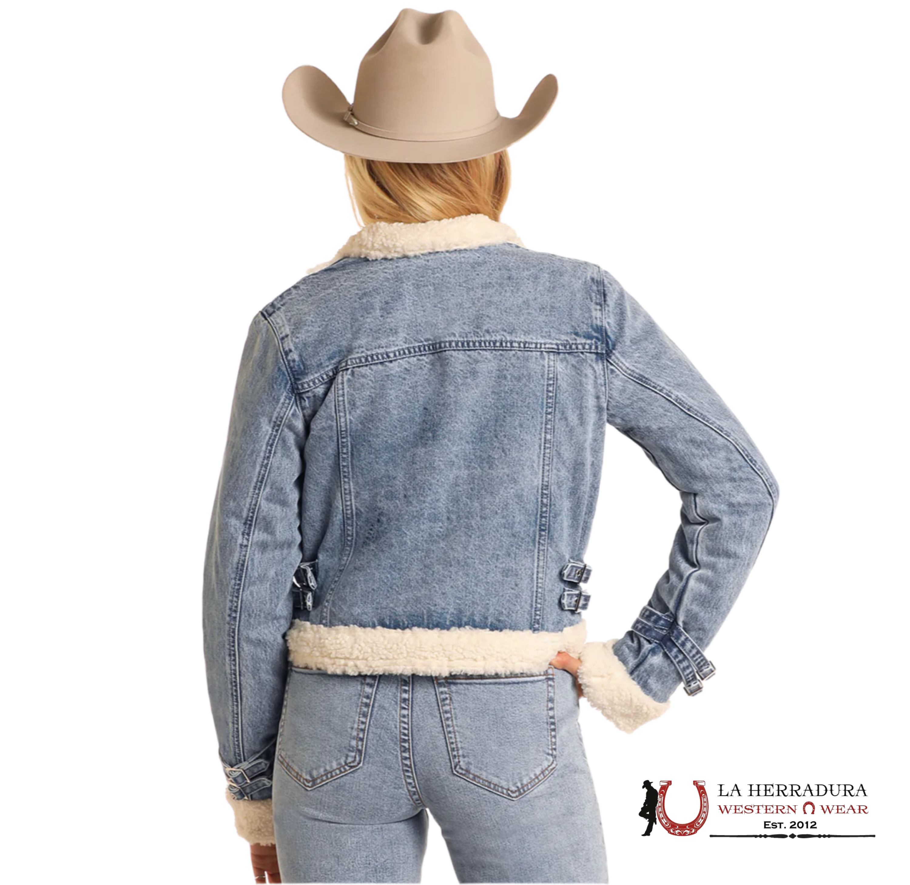 Rock&roll Womens Ligh Wash Sherpa Jacket Blue