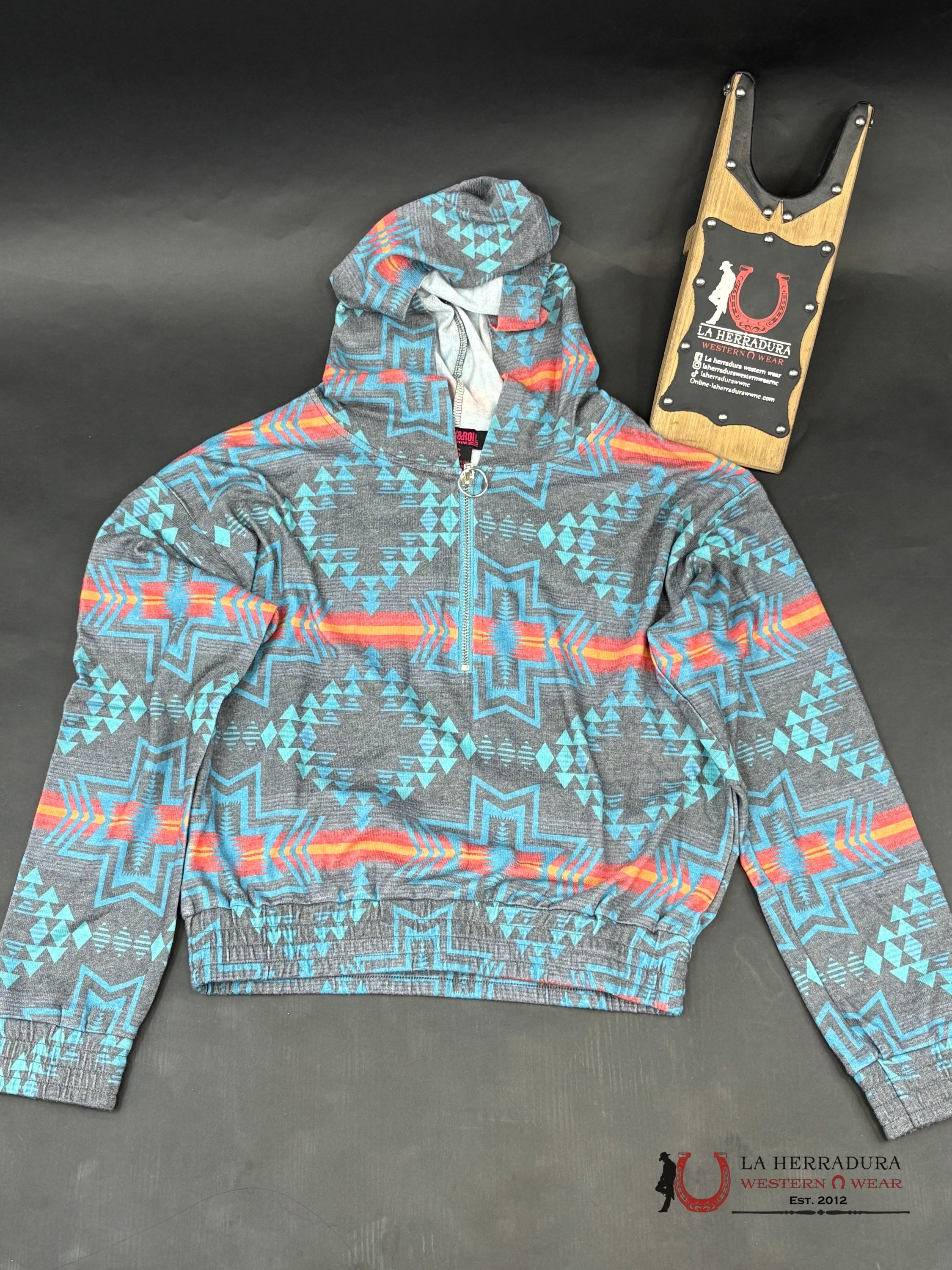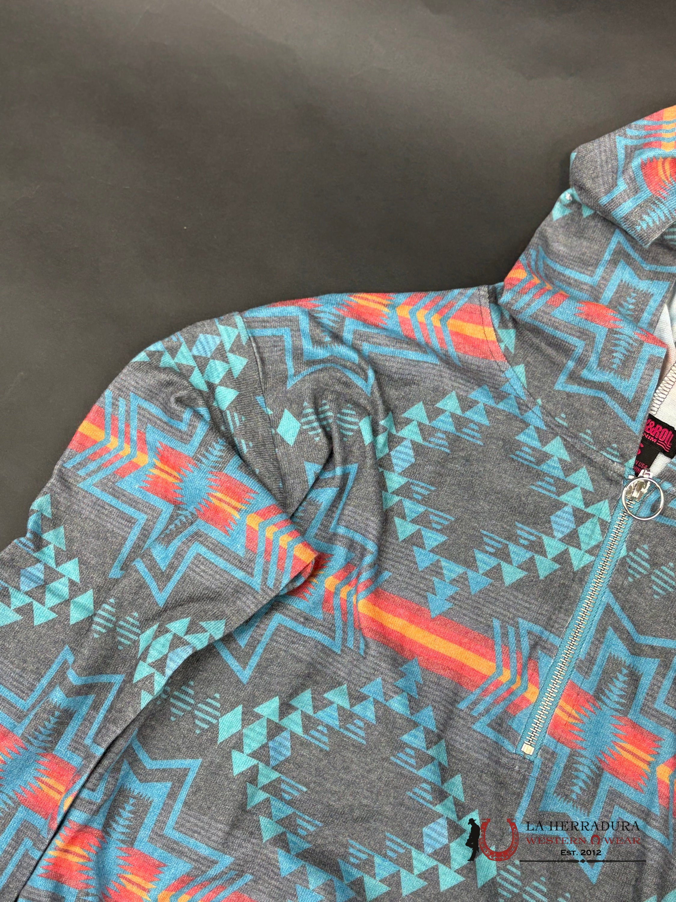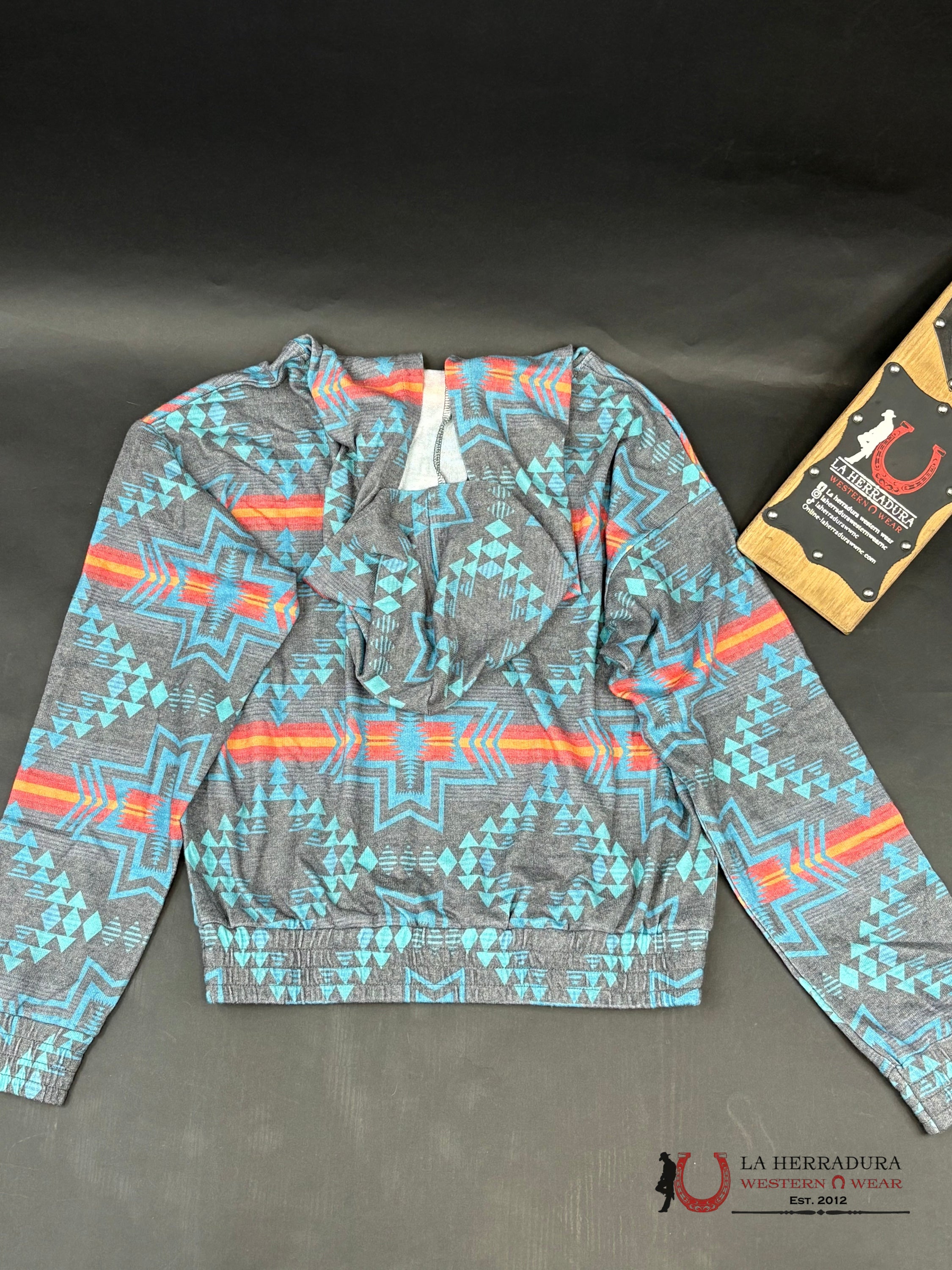 ROCK AND ROLL WOMEN TURQUOISE AZTEC PRINT HOODIE RRWT94R04C