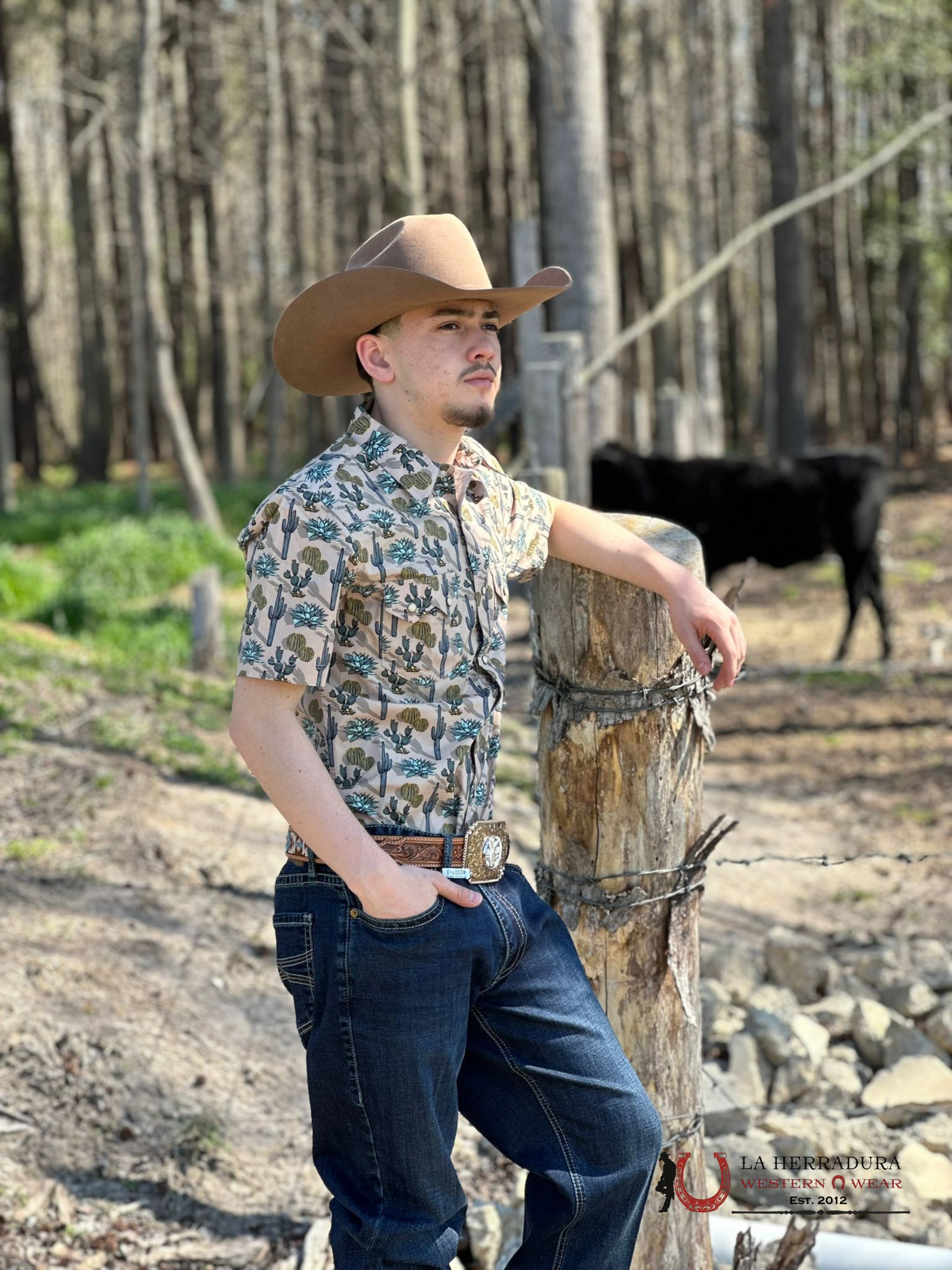 Experience the best of the wild west with our ROCK&ROLL X DALE BRISBY SHORT SLEEVE SNAP CACTUS WESTERN shirt. Its unique design, inspired by the rugged cactus landscape, will make you stand out in any crowd. Made for cowboys, it offers both style and comfort.