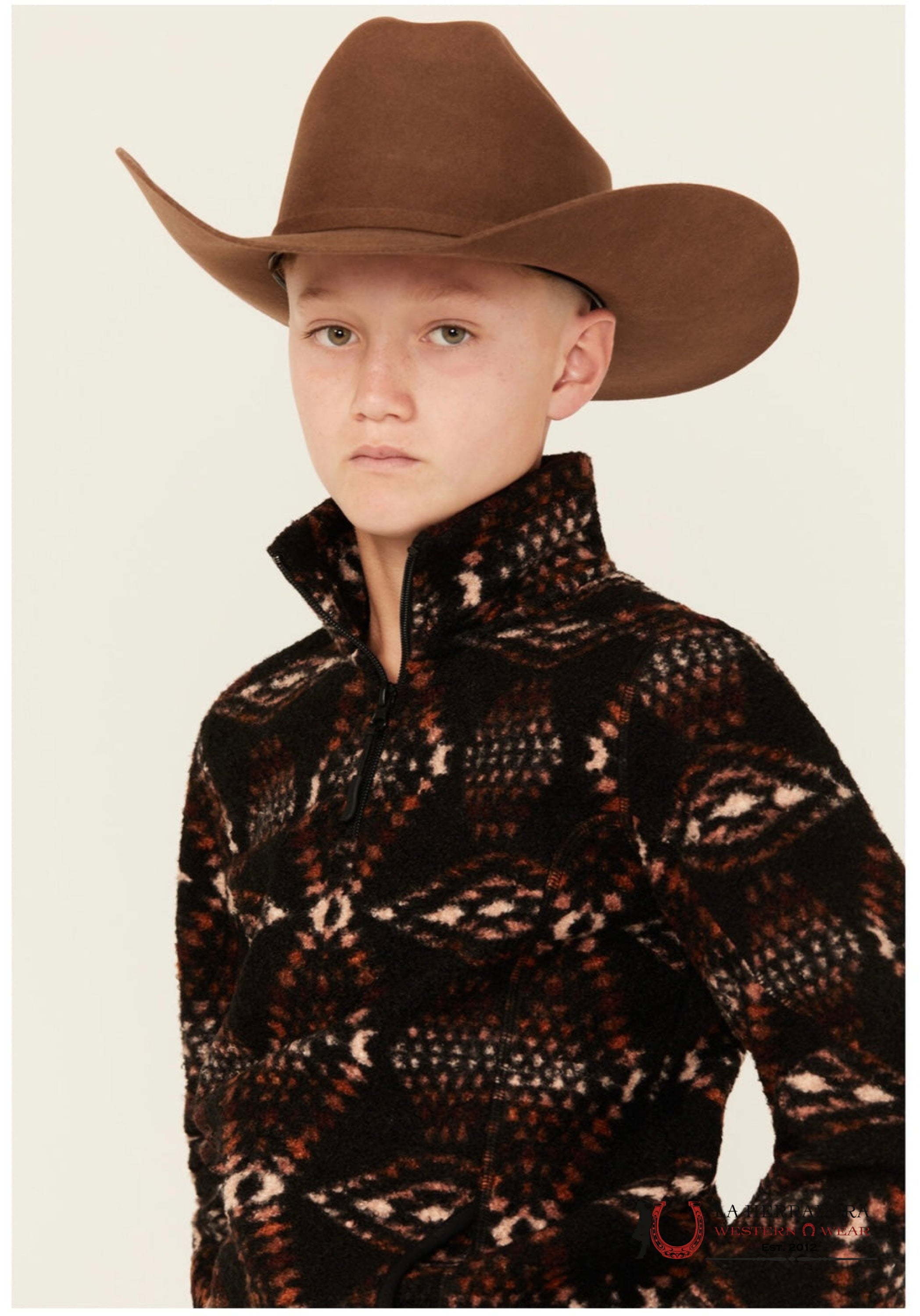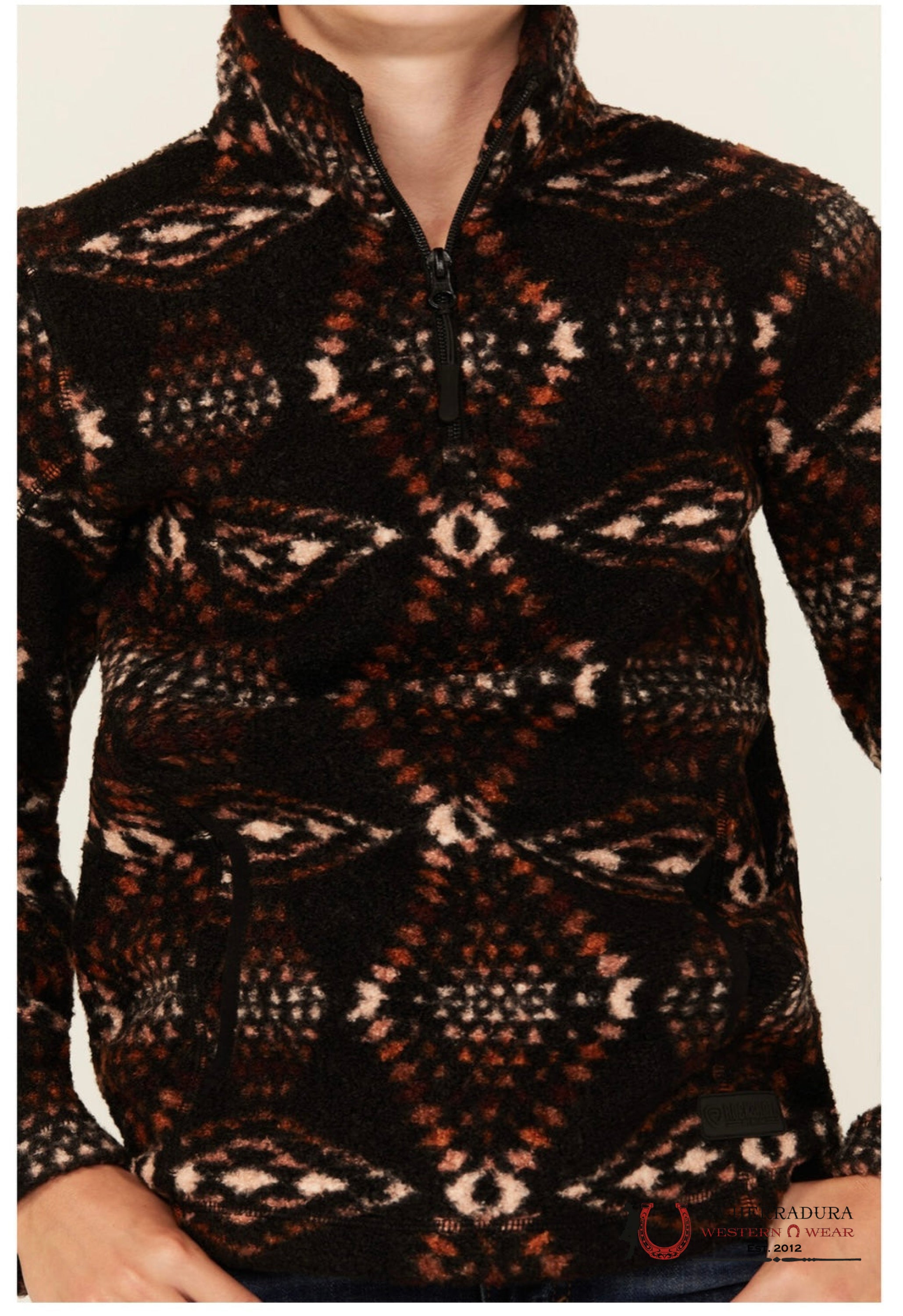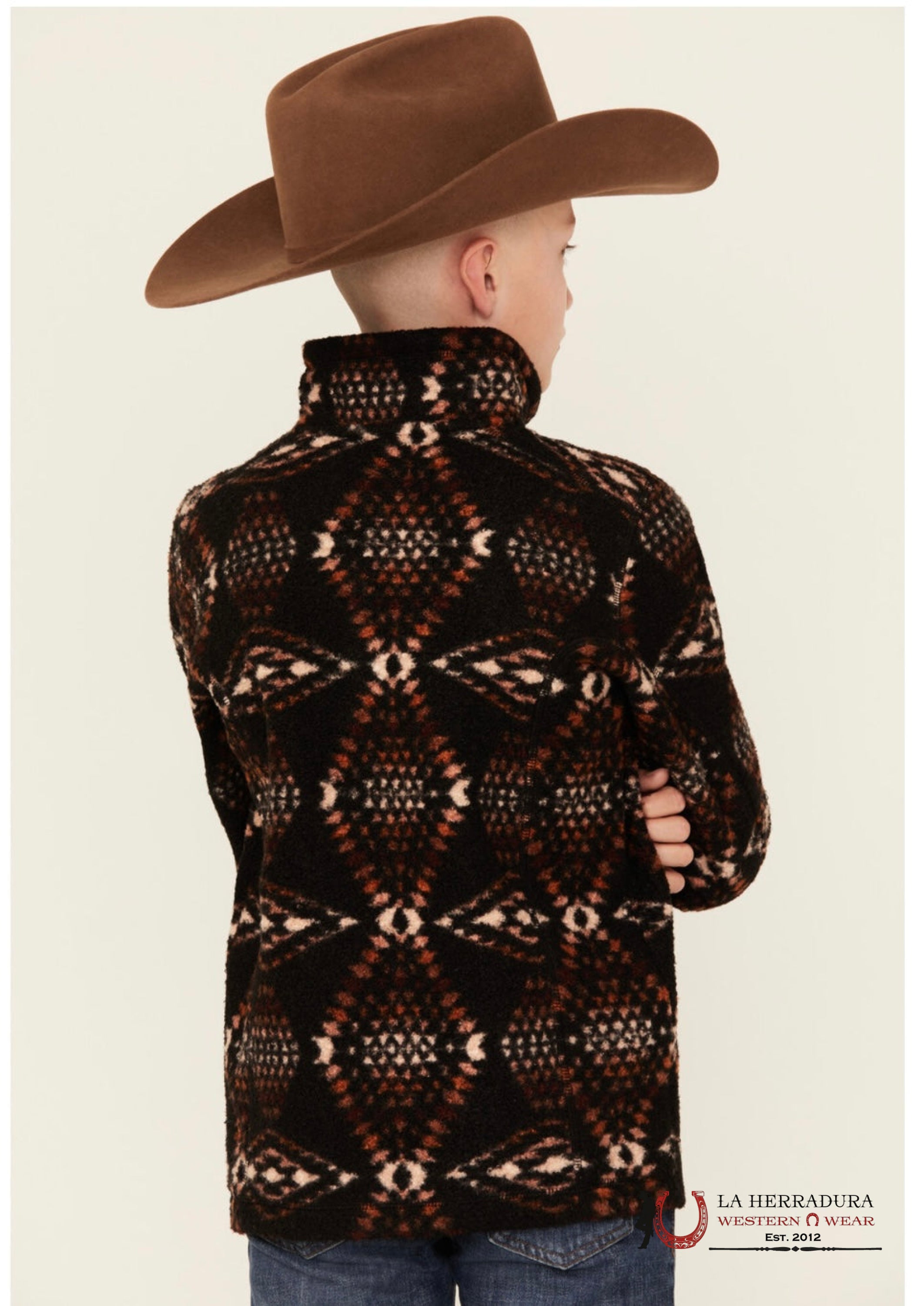 Rock&Roll Youth Brown Printed Berber 1/4 Zip - BK91C04347