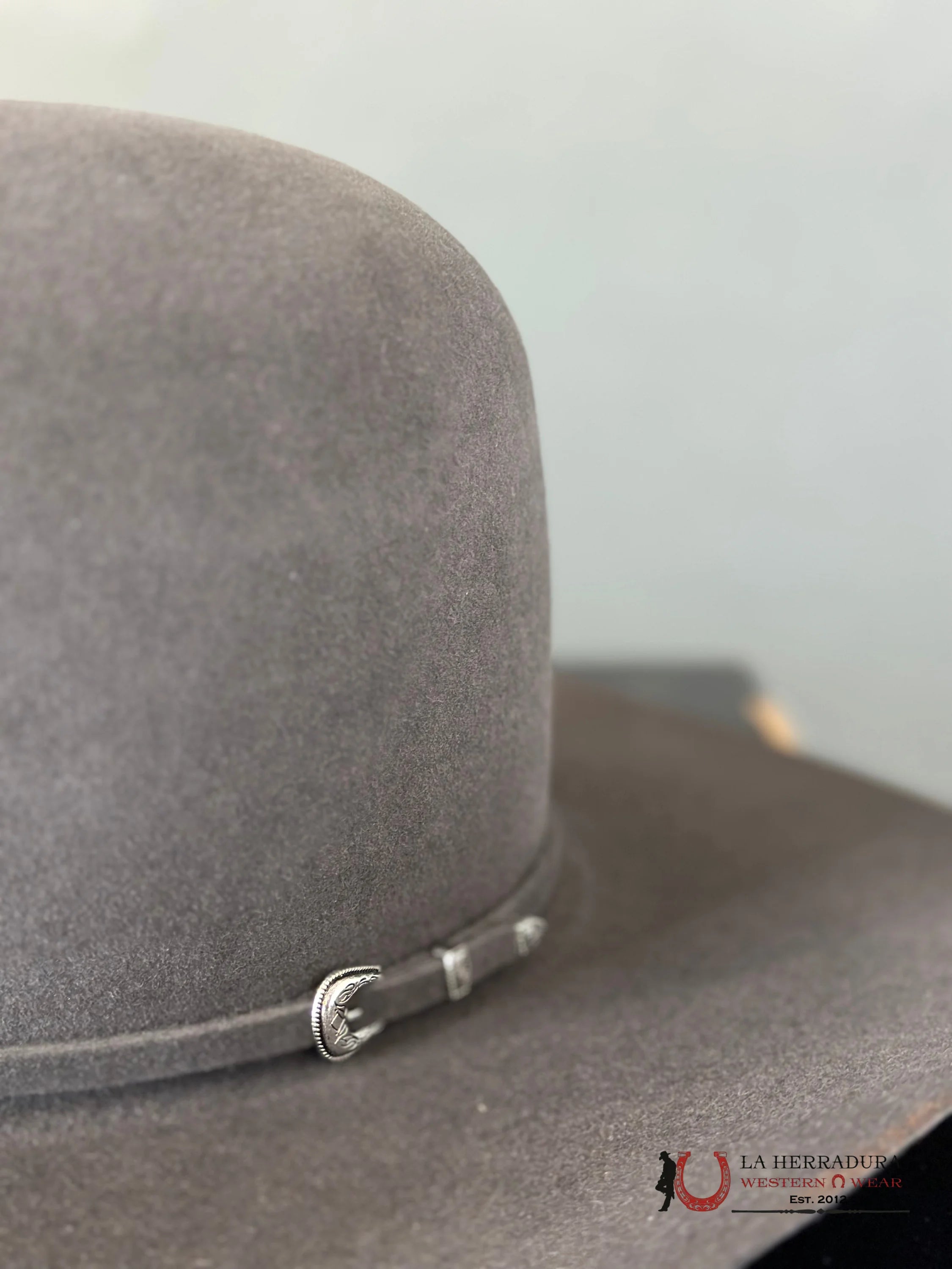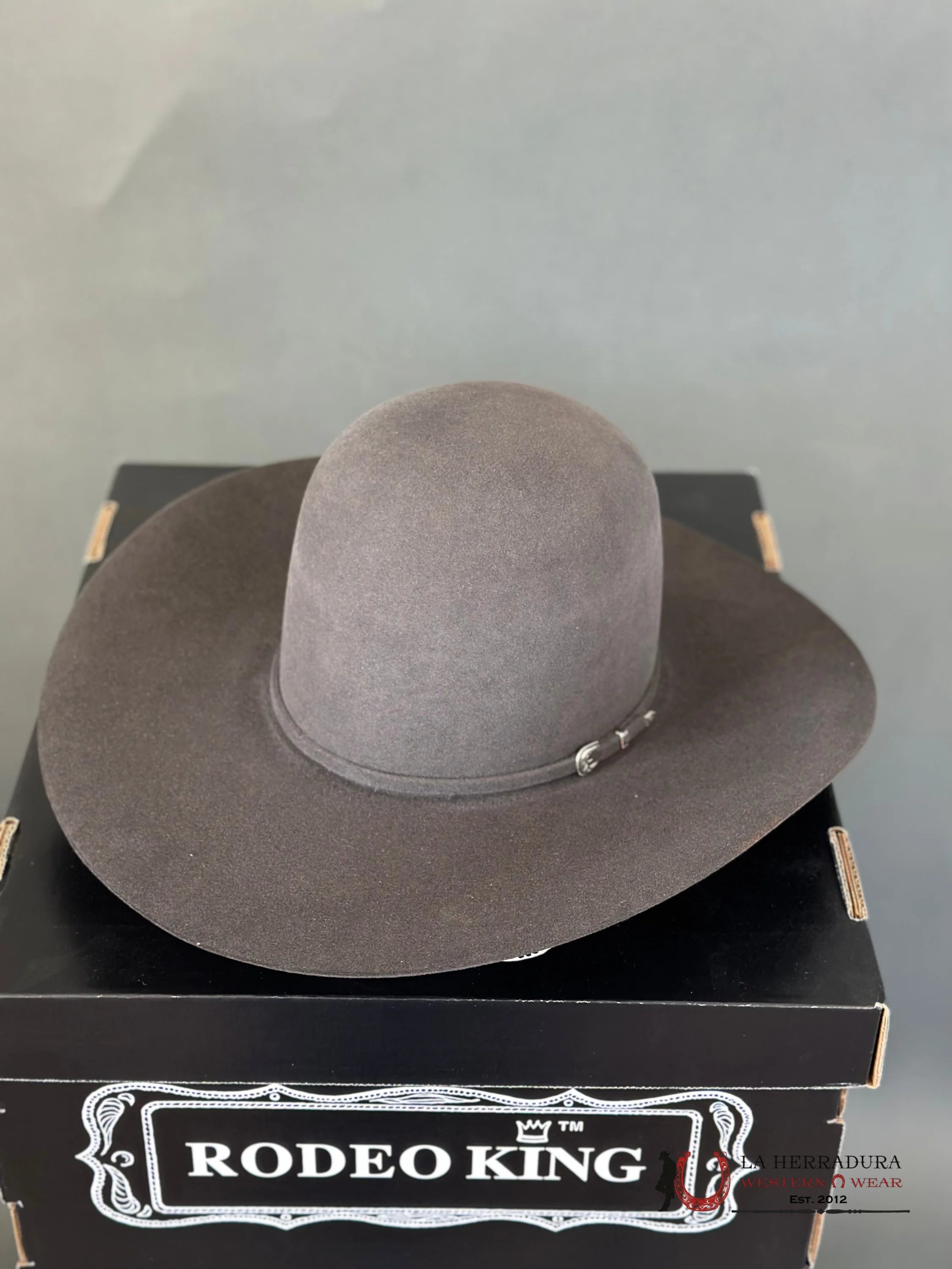 Introducing the Rodeo King 7X Charcoal Hat - featuring a Pelo de Conejo crown and brim for the perfect fit. The 5" crown and 4 1/4" brim are made with rabbit hair, and comes with an original Rodeo King box and a set of silver buckles. Look and feel your best with unbeatable style and comfort.