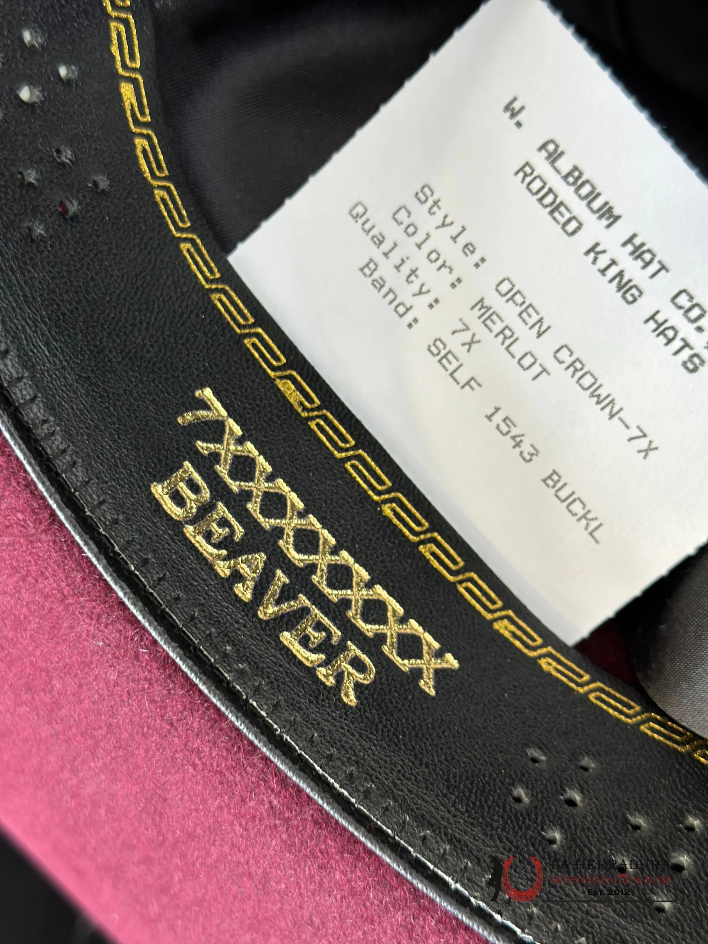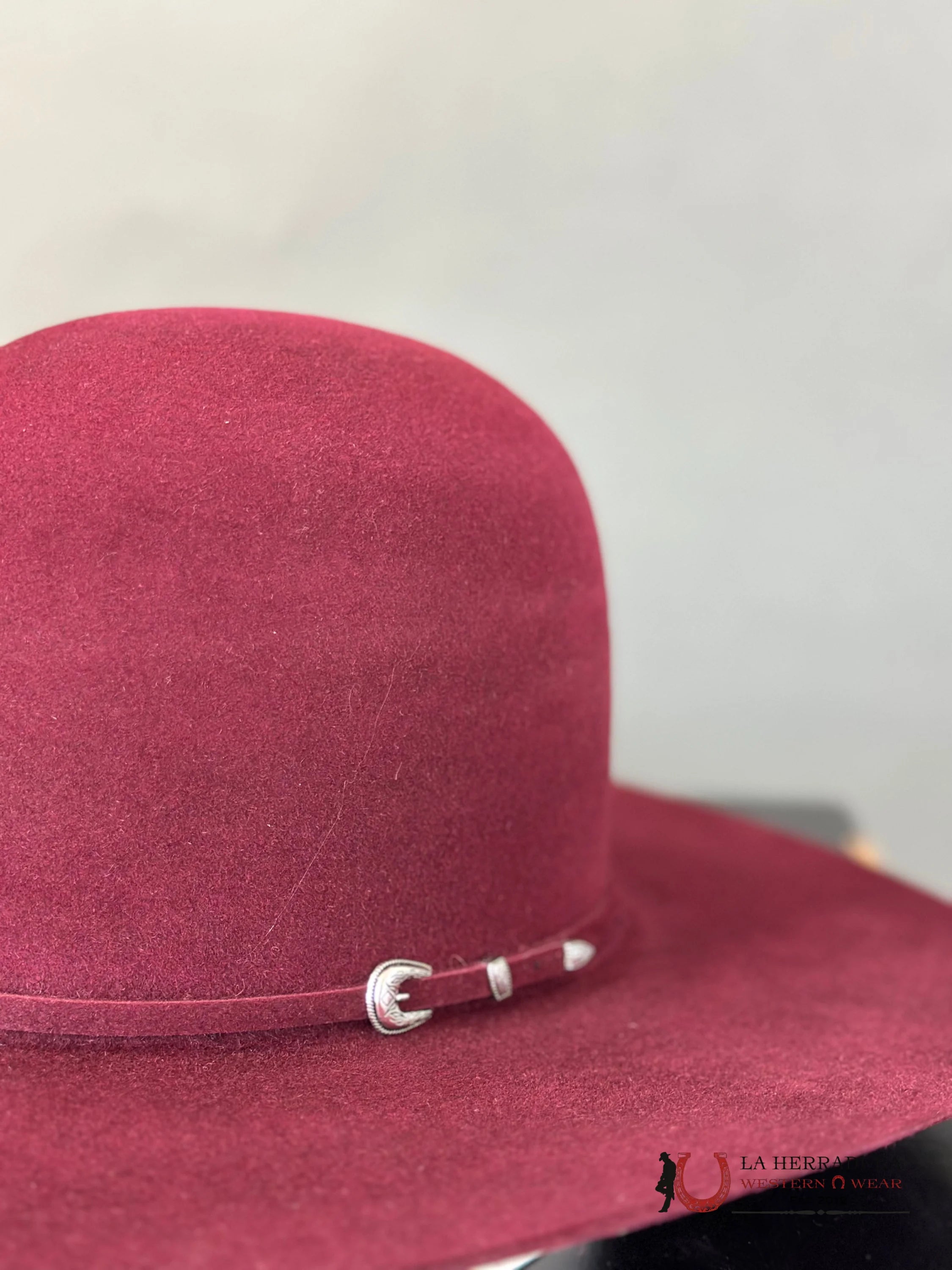Introducing the Rodeo King 7X Merlot Hat - featuring a Pelo de Conejo crown and brim for the perfect fit. The 5" crown and 4 1/4" brim are made with rabbit hair, and comes with an original Rodeo King box and a set of silver buckles. Look and feel your best with unbeatable style and comfort.
