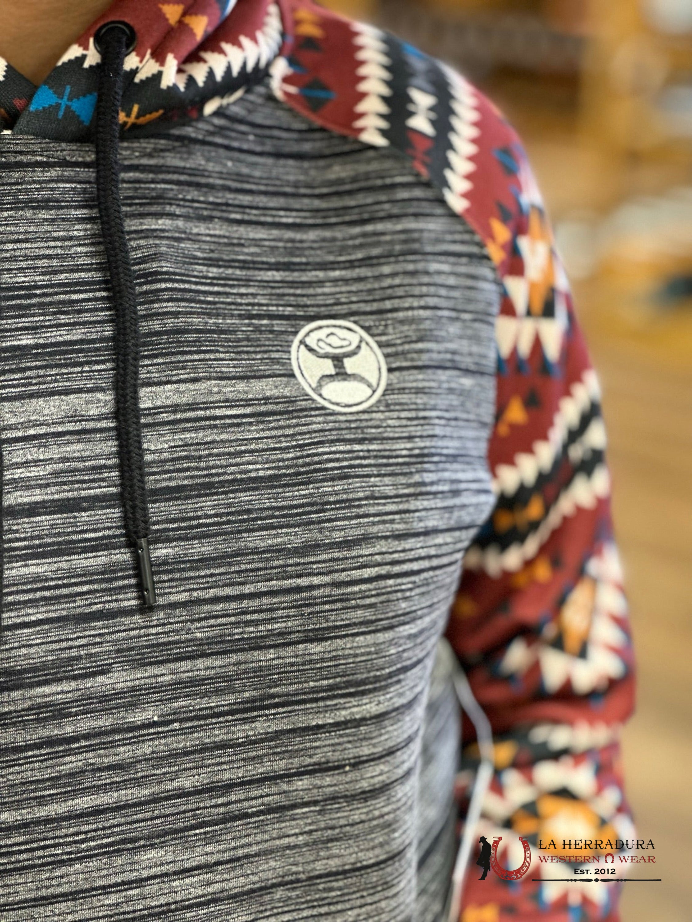 Hooey Womens Hoodie Summit Charcoal w/ Red Aztec Sleeves-HH1198CHRD