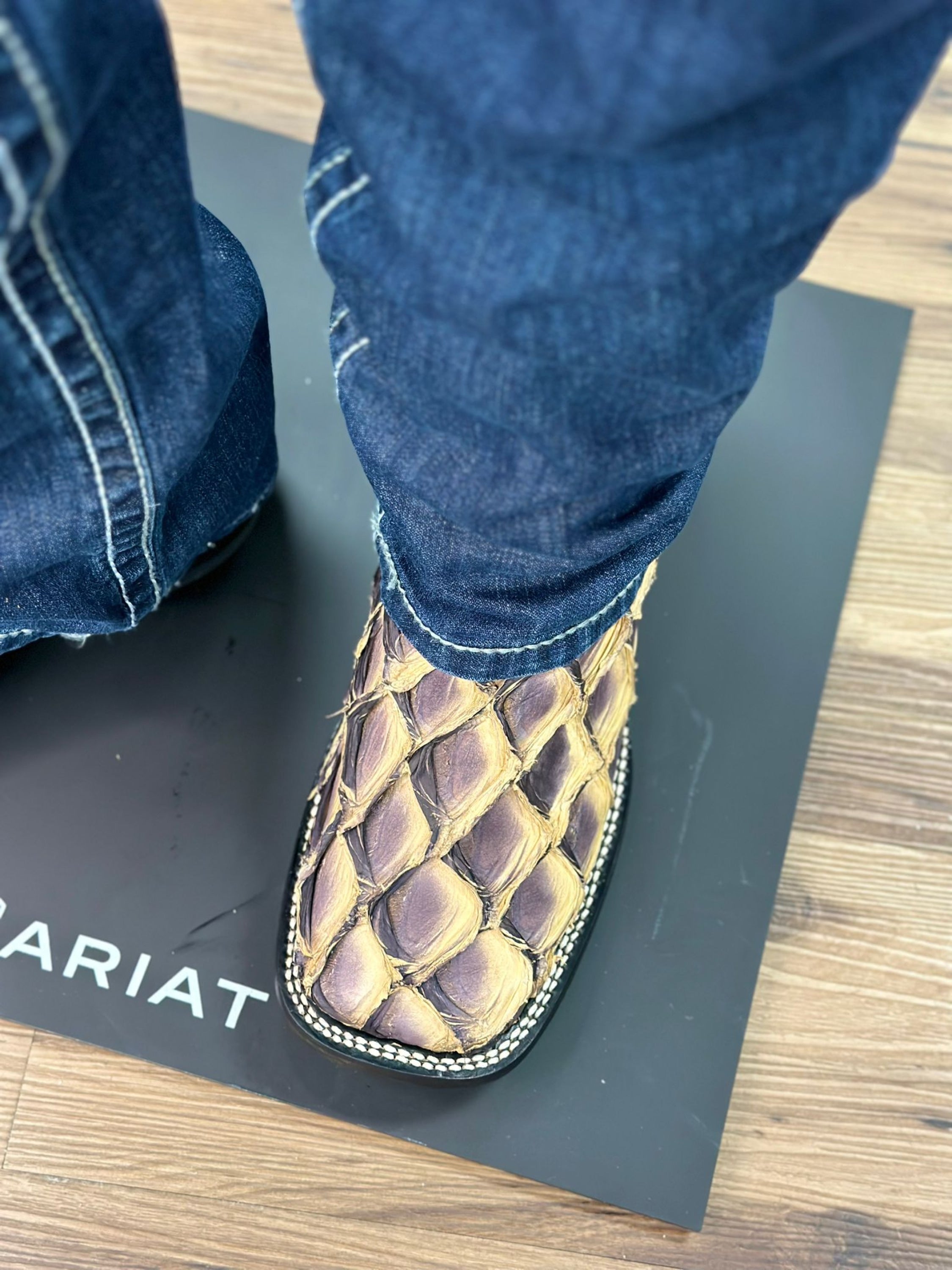 THE STAGE COACH BOOT CO. SQUARE TOE EXOTIC BERGE TOOST FISH SKIN
