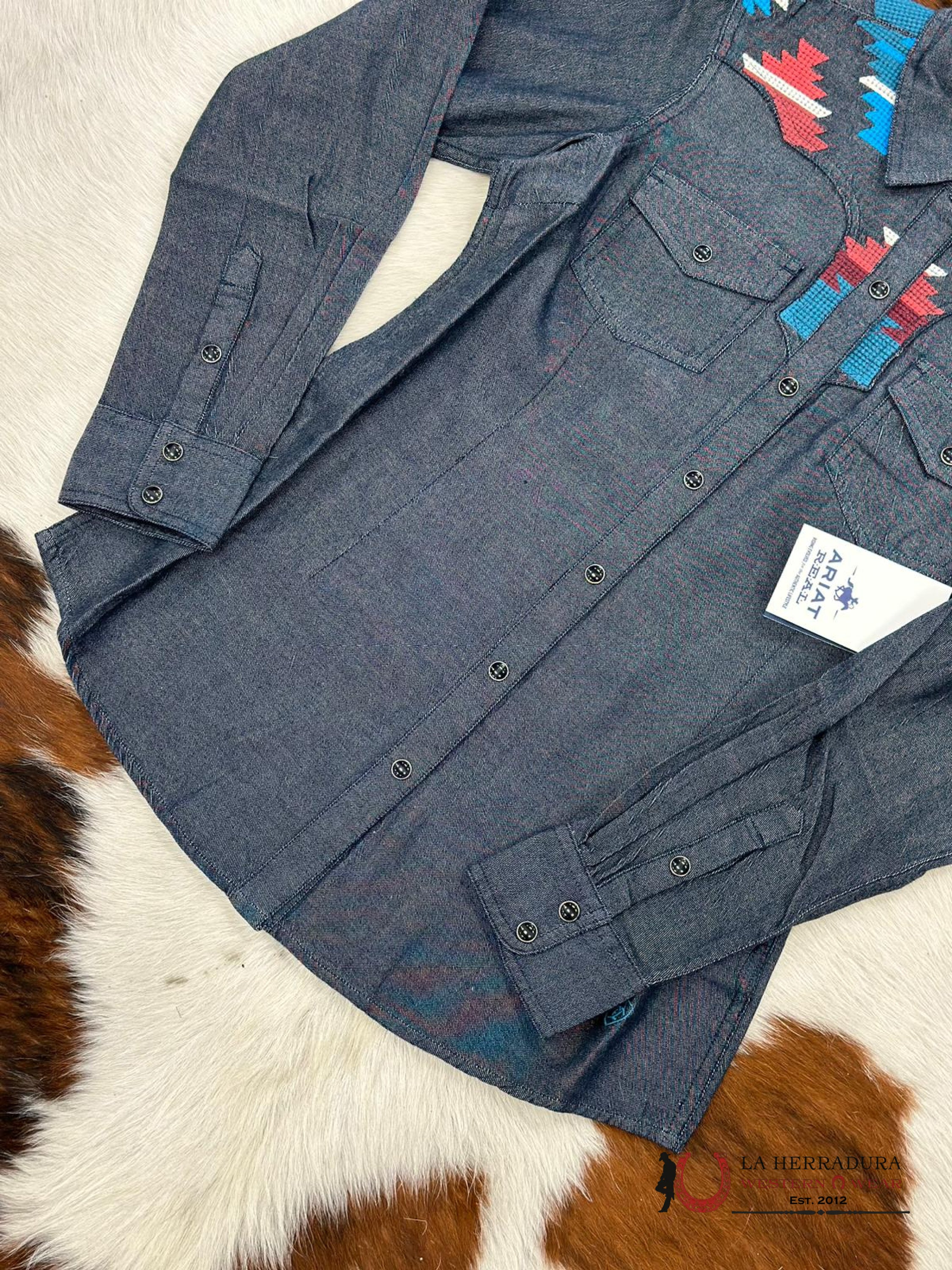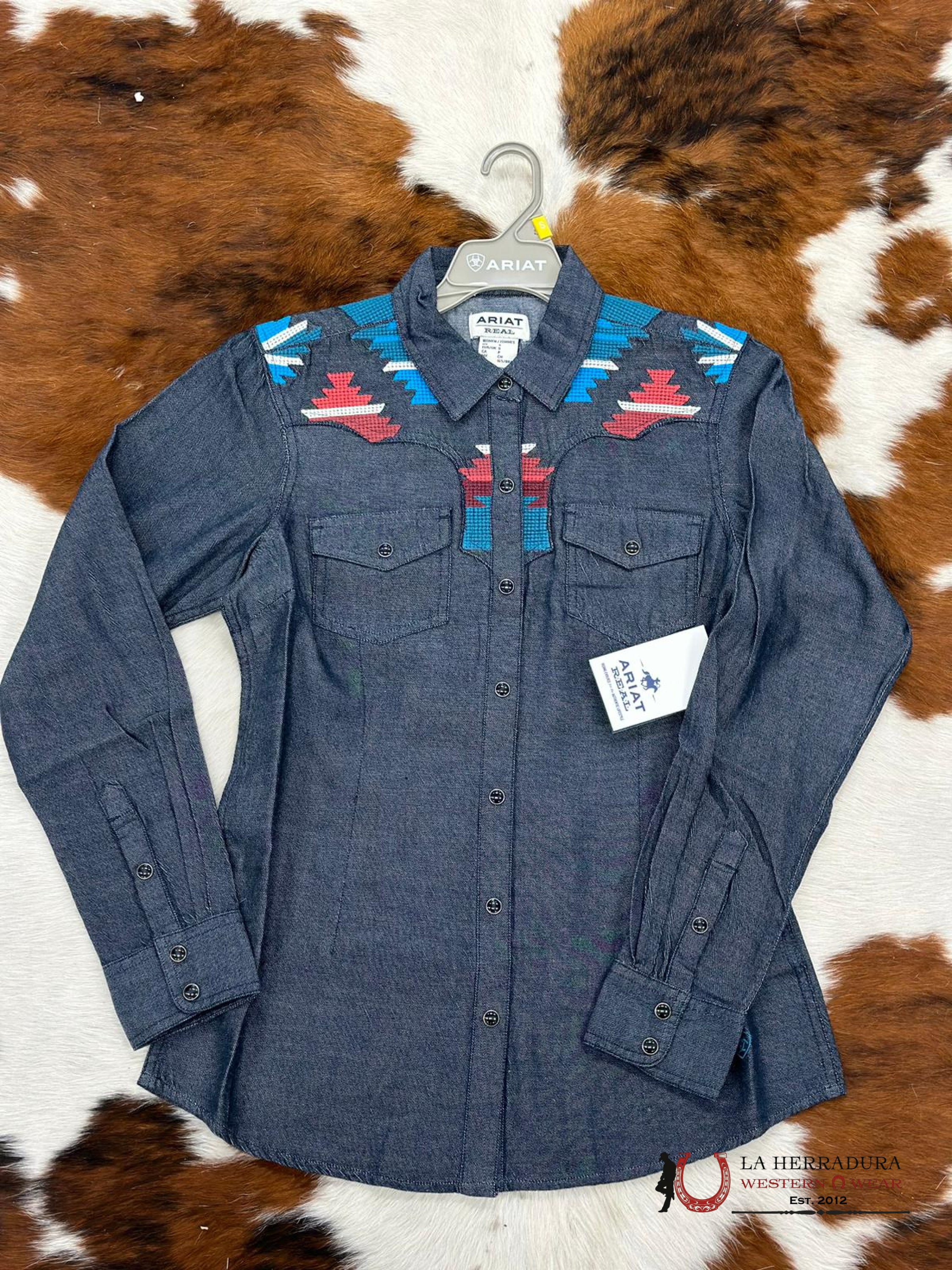WOMEN ARIAT RINSED BOTTON UP LONG SHIRAT 10046312