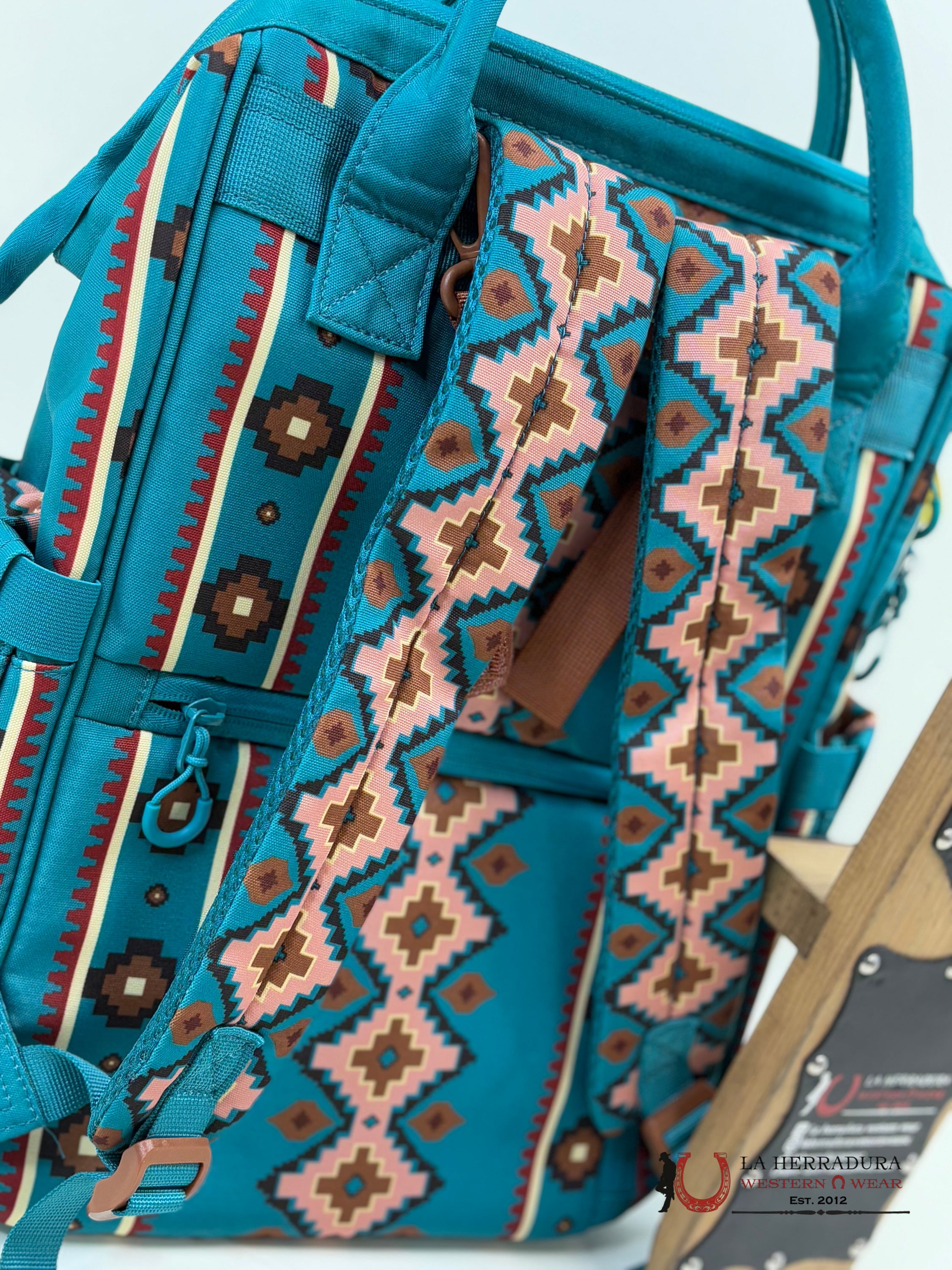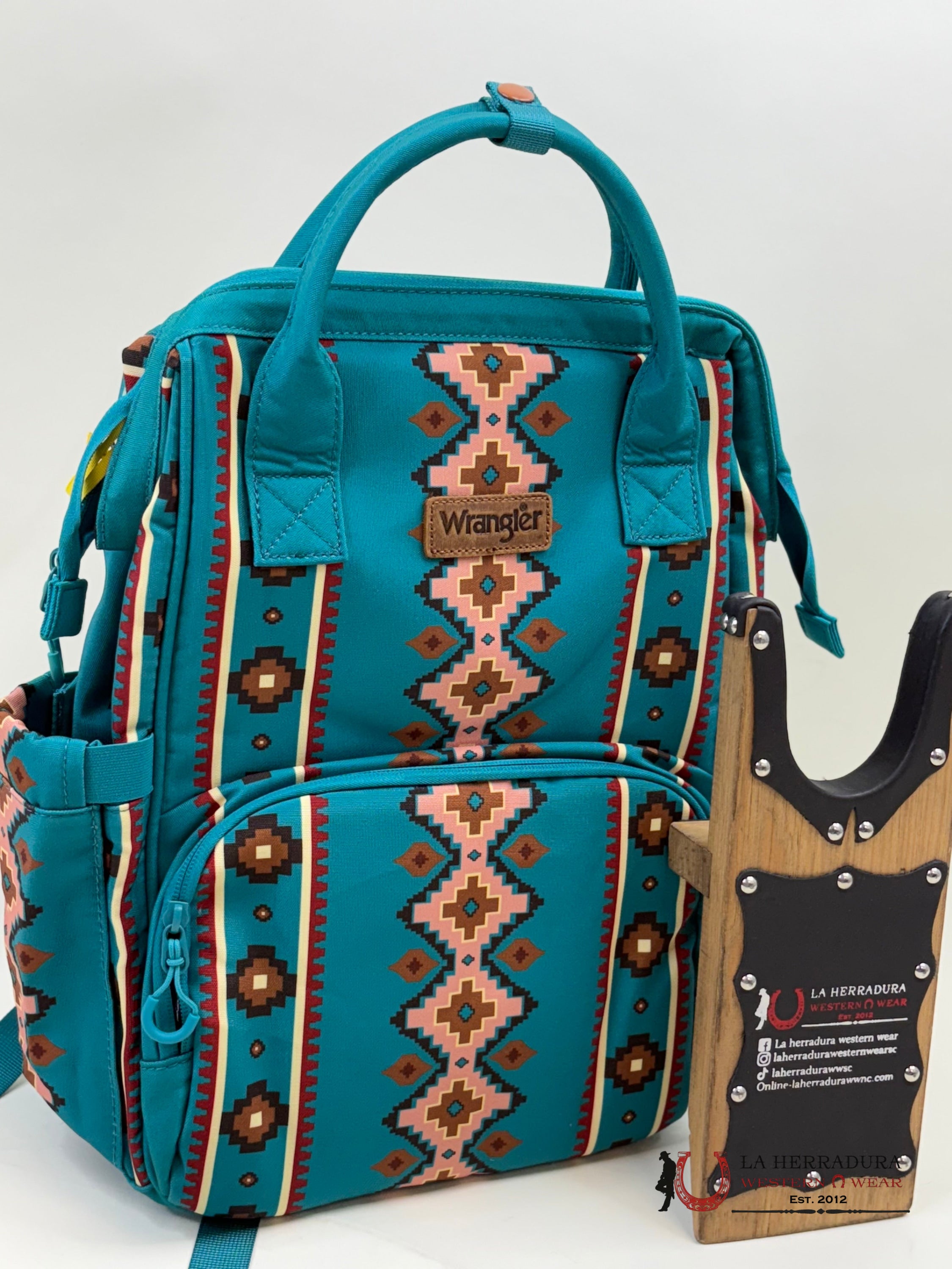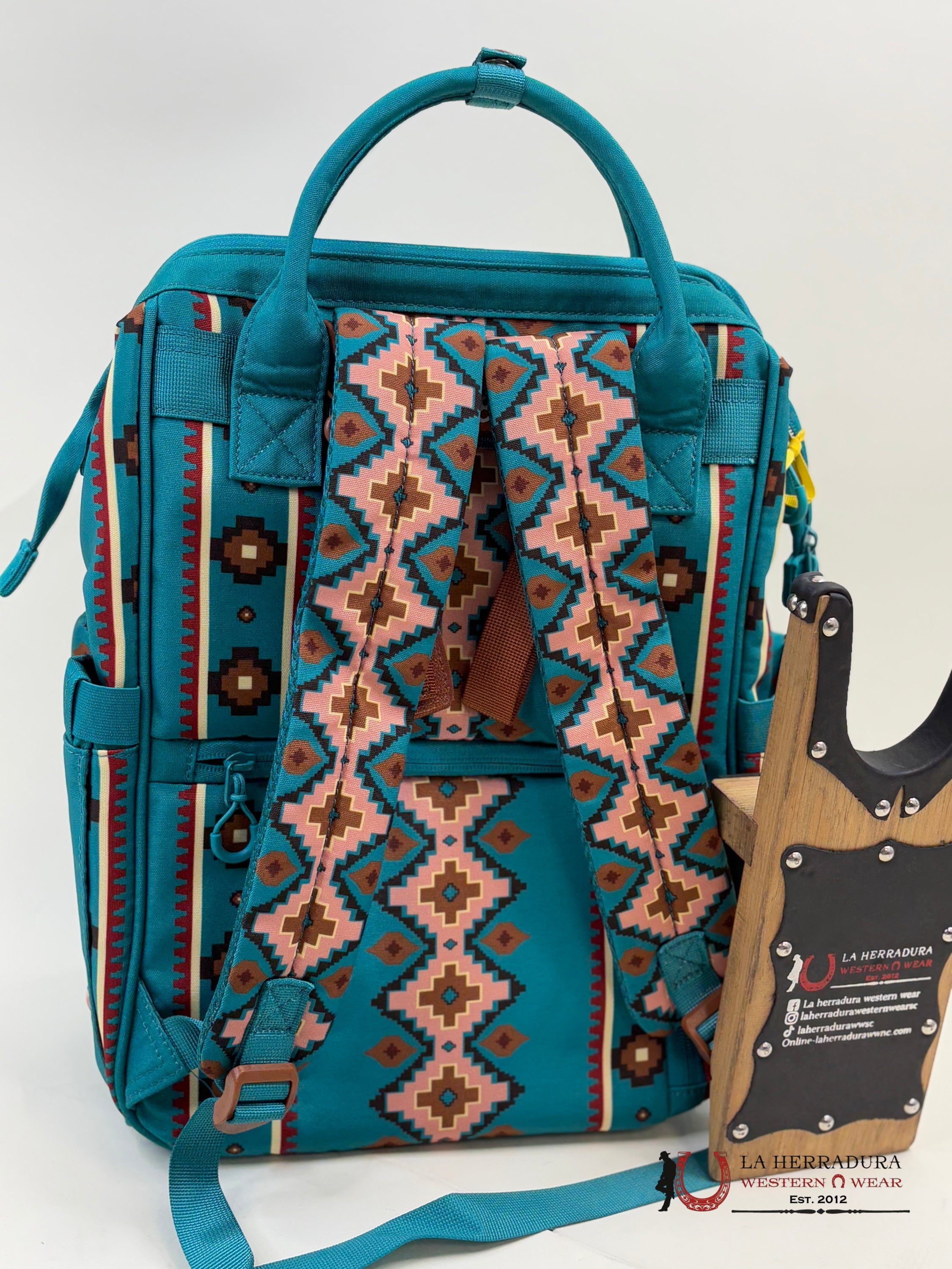Stay in style with the WRANGLER AZTEC TIEL GREEN BOOKBAG. This casual, everyday bookbag is perfect for those on-the-go. Keep all of your essentials organized and secure while looking trendy and chic. Upgrade your daily routine with this must-have accessory!