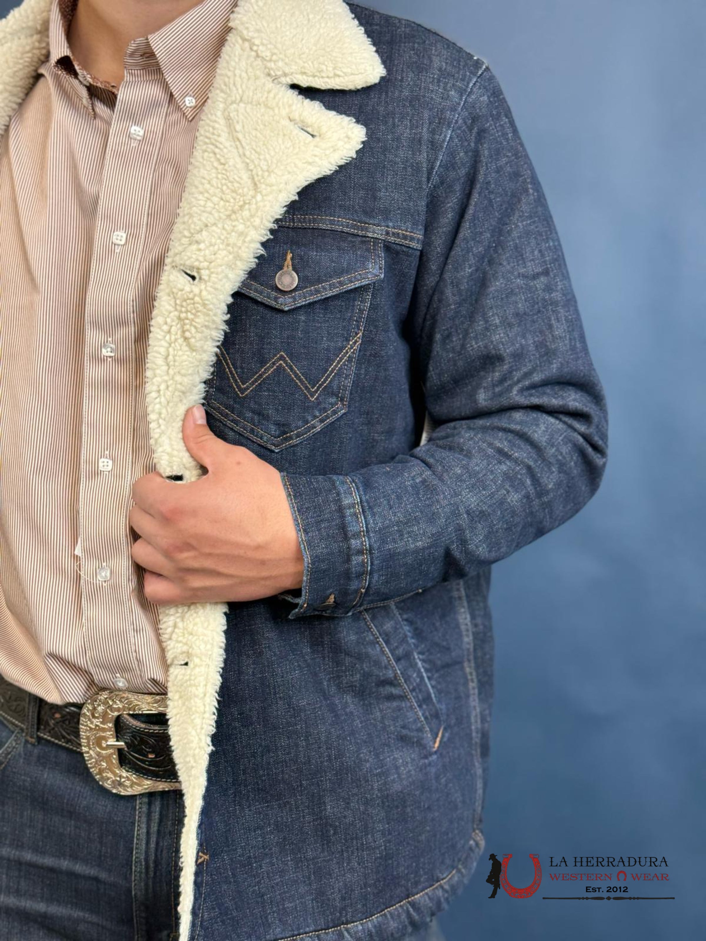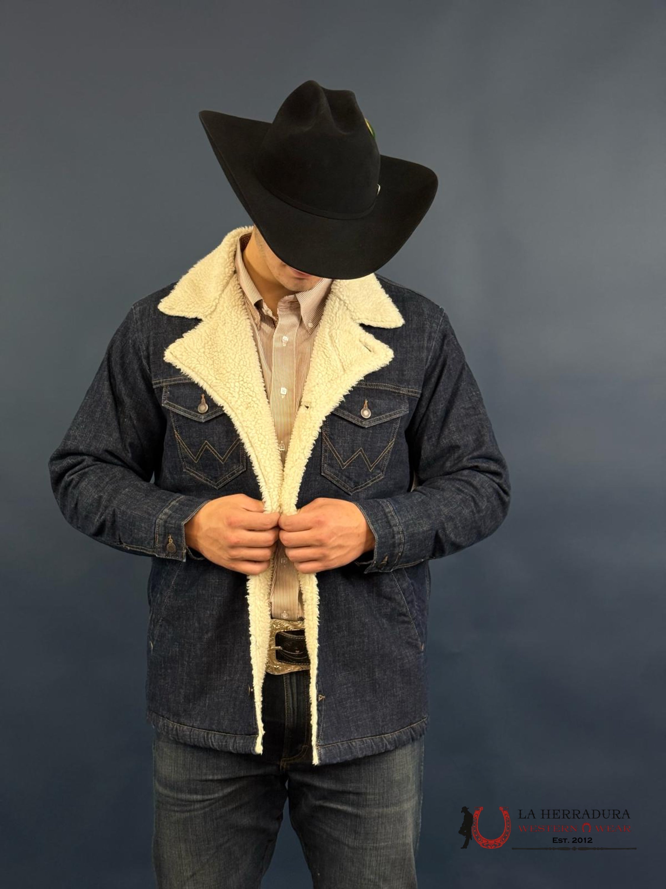 Wrangler Men's Western Sherpa Lined Denim Wrange Jacket in Rustic Navy-112353374