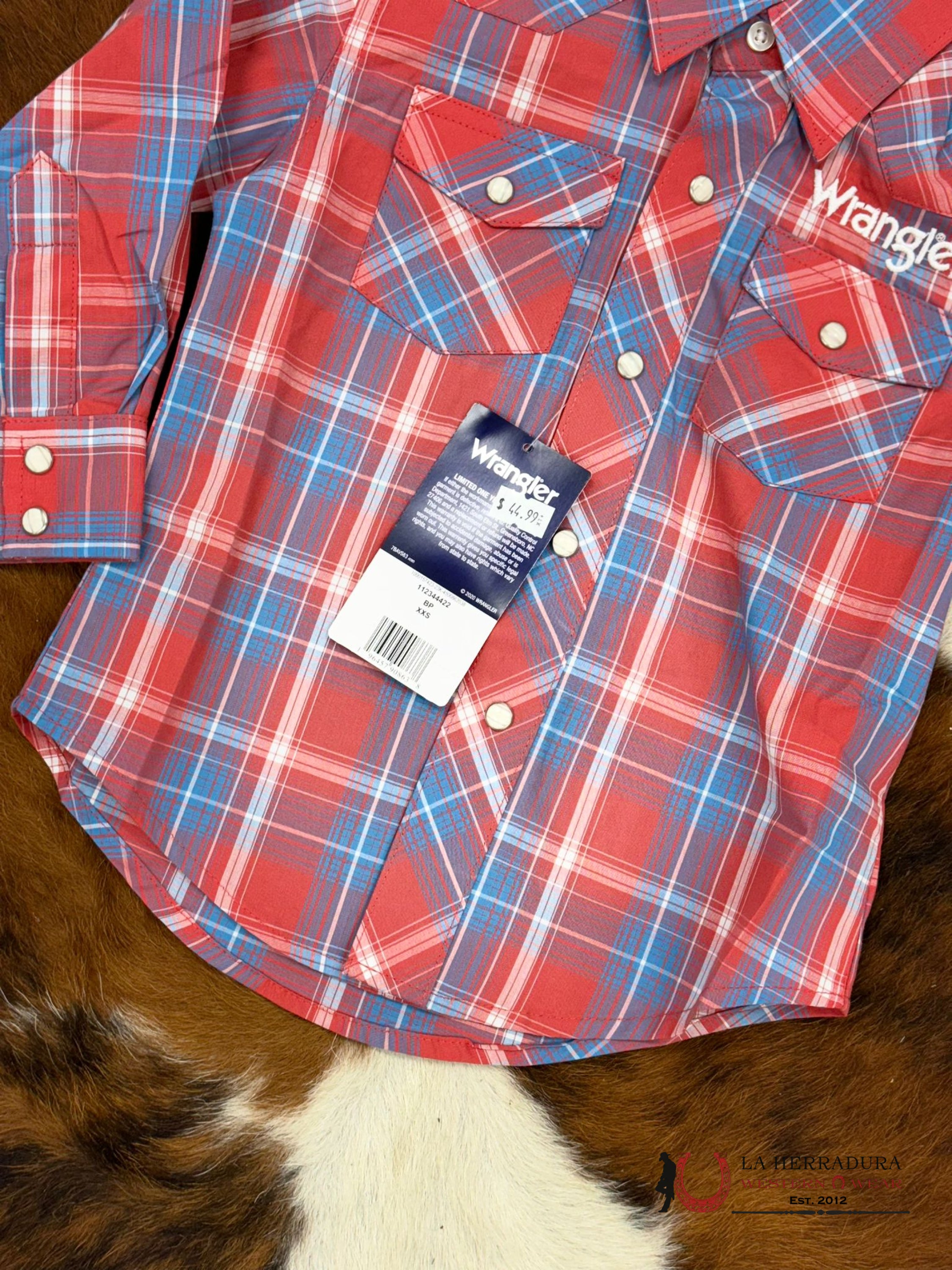 Be the star of the rodeo in this classic WRANGLER red and blue plaid pearl snap long sleeve! Your little one will always look precious in this timeless, cowboy-inspired look while being comfortable and easy to put on. Dress them up for any special occasion - they're sure to be the cutest baby in town!