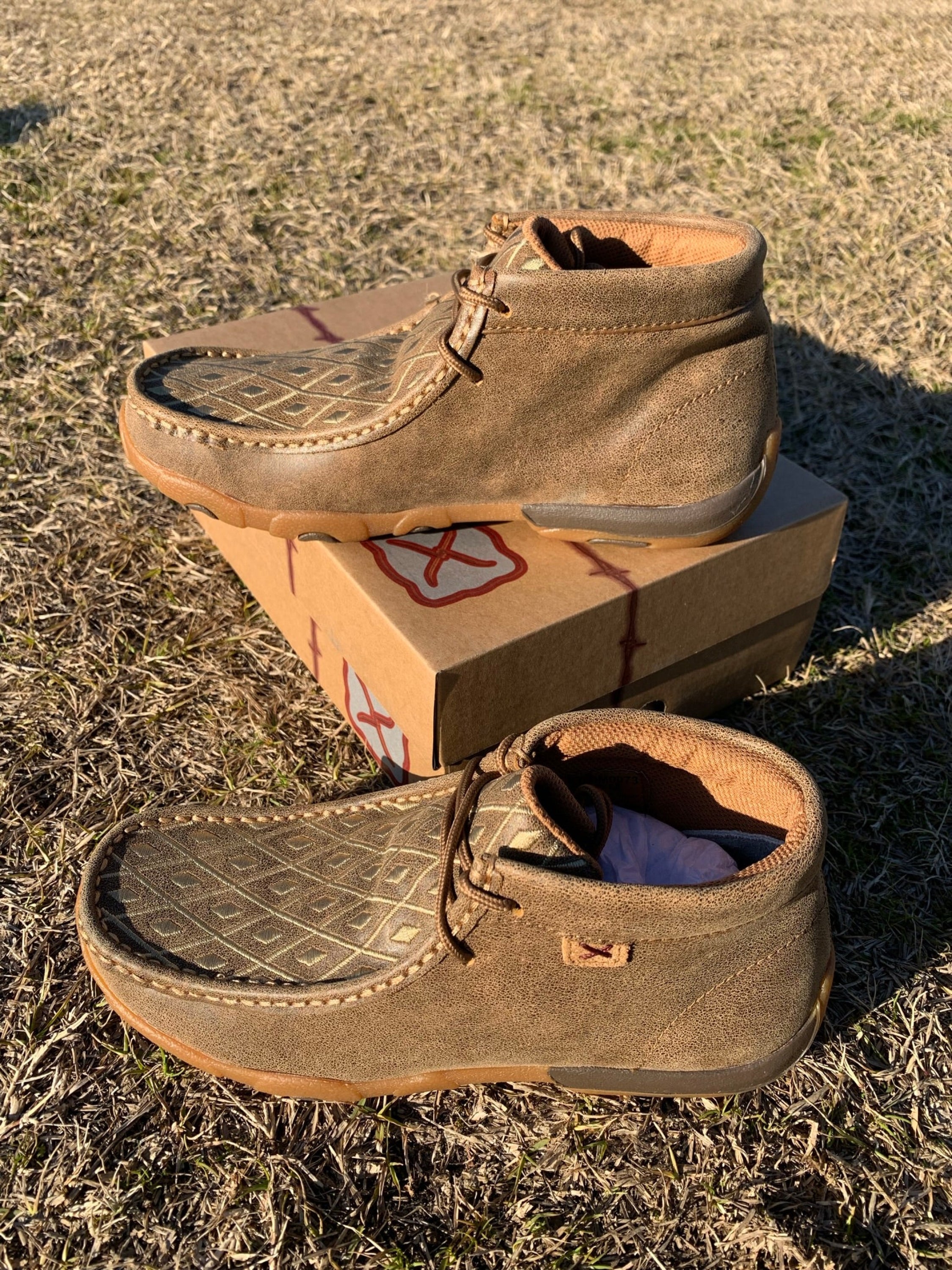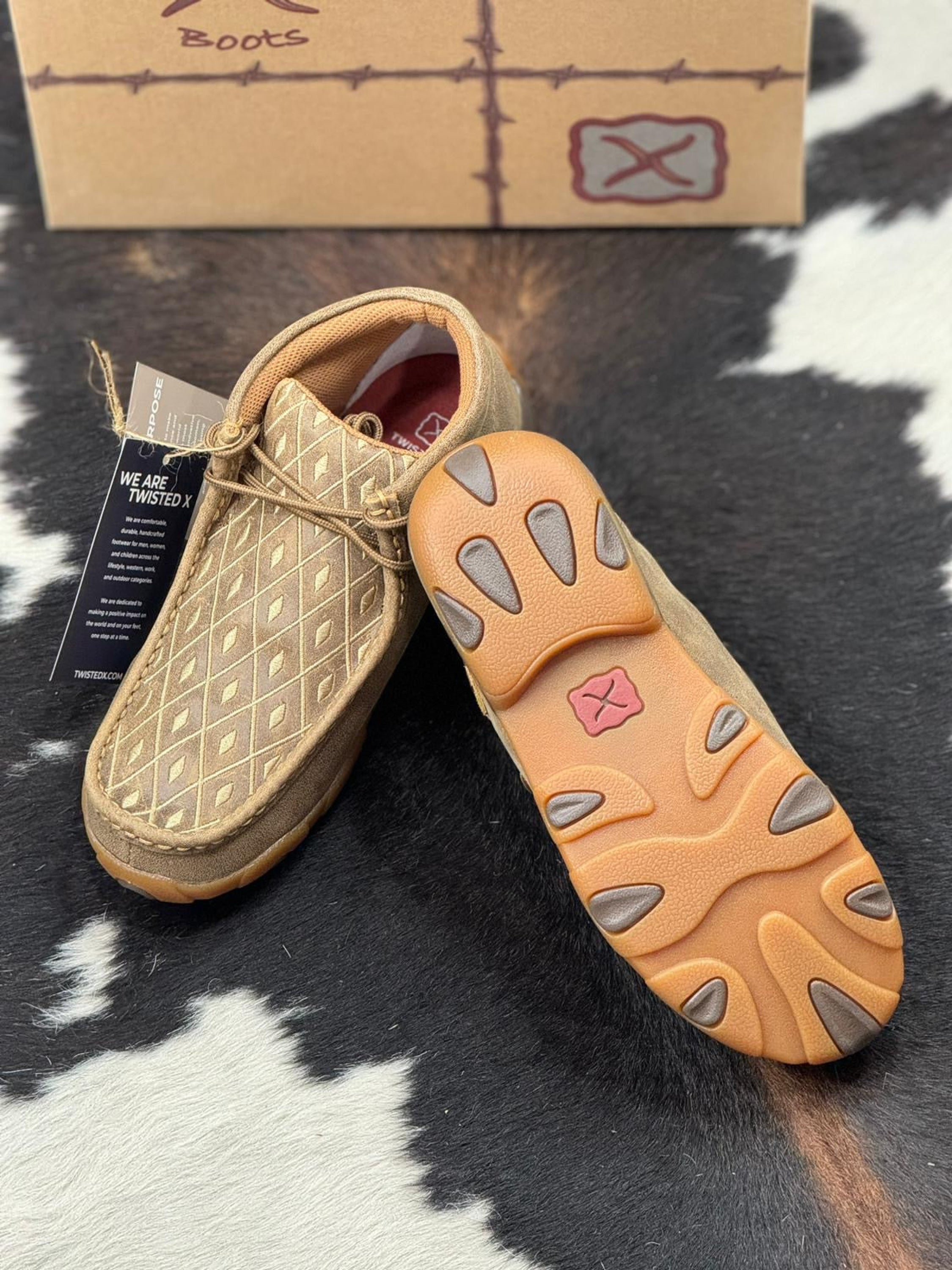 TWISTED X WOMENS DRIVING MOC BOMBER TAN STITCHING CASUAL SHOE
